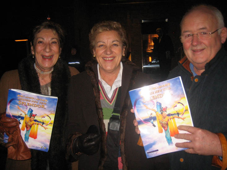 【明慧网二零零八年二月二日】(明慧记者周容、李慧容纽约报导)远从苏格兰来纽约度假的退休眼科医生Jack Brown和太太及姐姐表示,今天刚到纽约就有人向他们推荐这场「全球华人新年晚会」,他们说,能及时买票观赏到这场无与伦比的中华文化艺术飨宴,真是不虚此行,这是在纽约得到的最好的新年礼物。