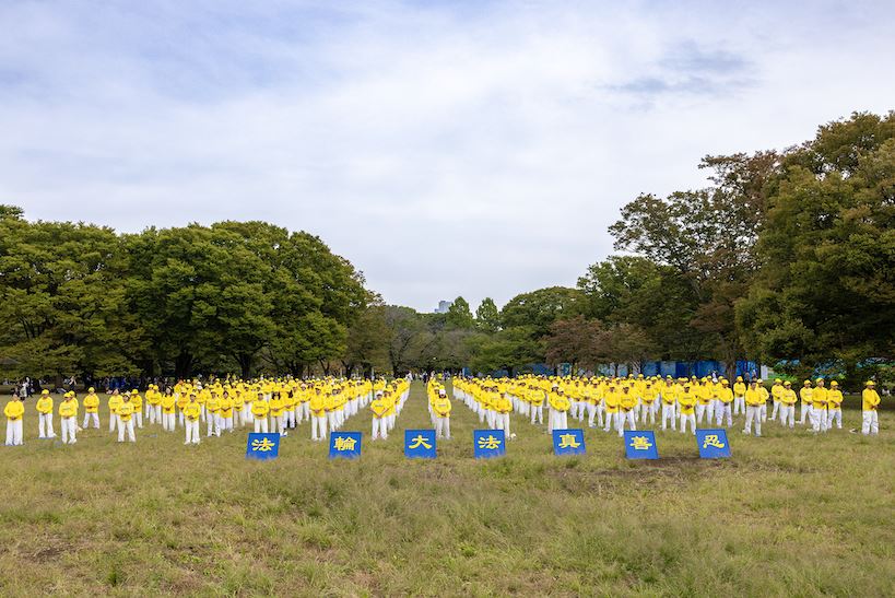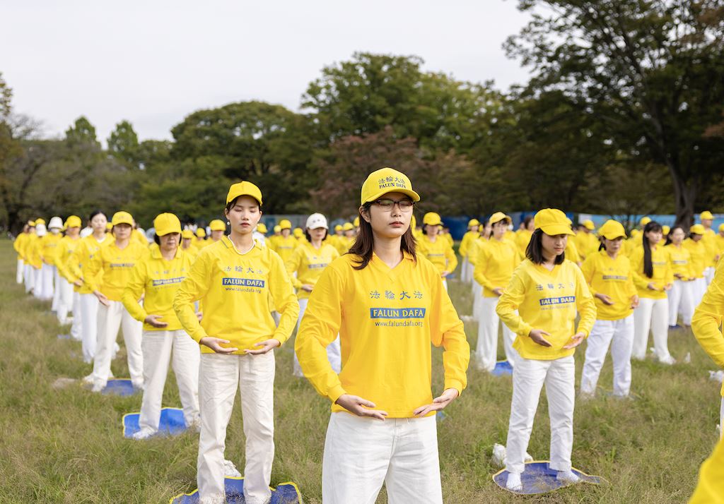 图1~4:二零二五年十月十二日,法轮功学员来到东京代代木公园大炼功