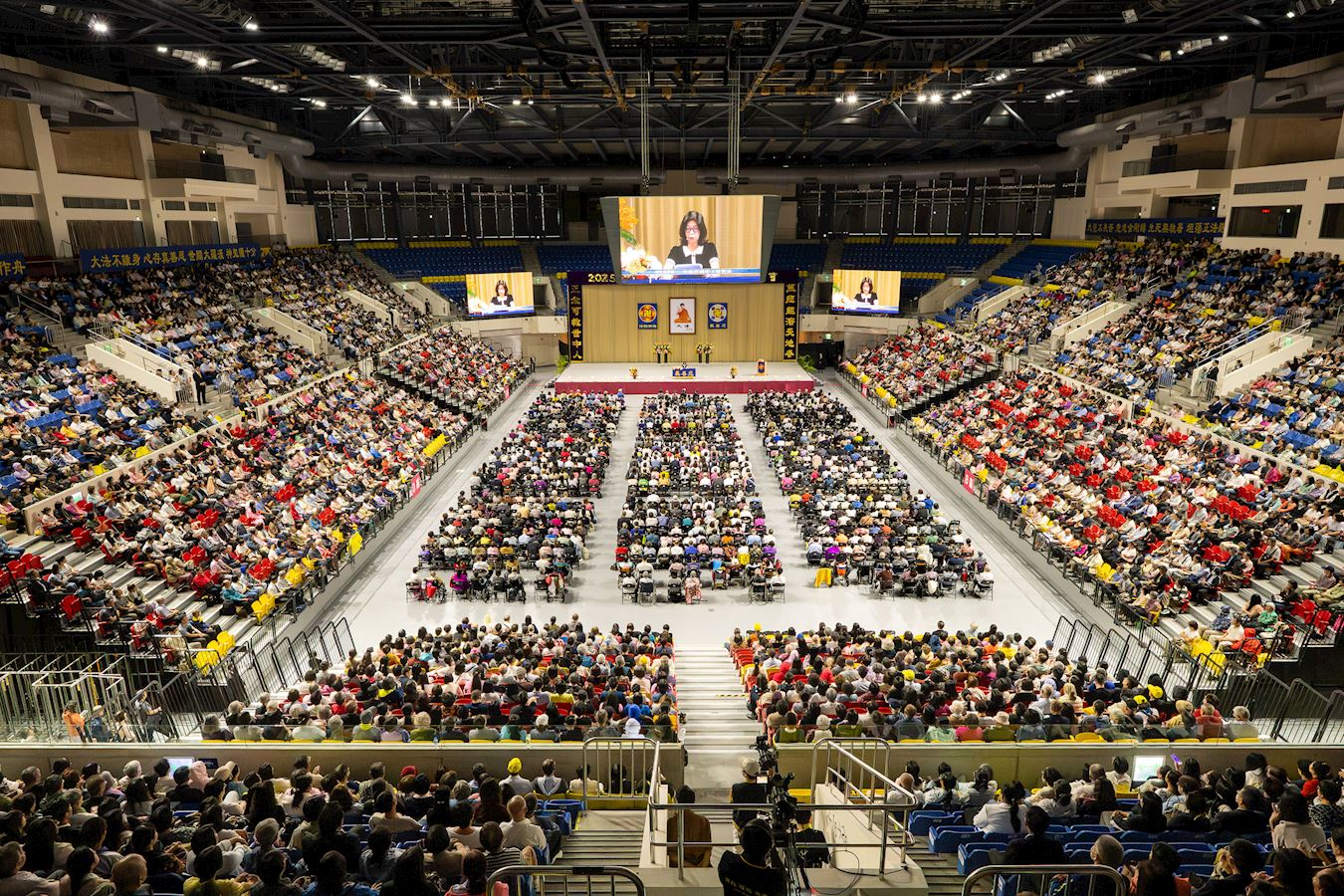 【明慧网二零二五年十月二十日】(明慧台湾记者站报导)二零二五年十月十九日,台湾法轮大法修炼心得交流会在台北和平篮球馆隆重举行,全台各县市约六千名法轮功学员参与交流,此外并有美加、日韩、港澳、印度尼西亚等地学员远道而来共襄盛举。大家比学比修,相互促进共同提升。