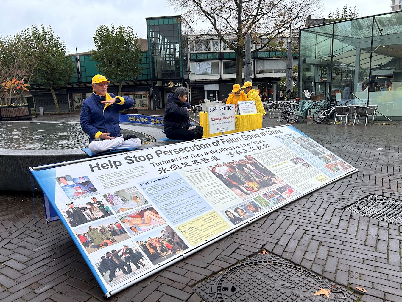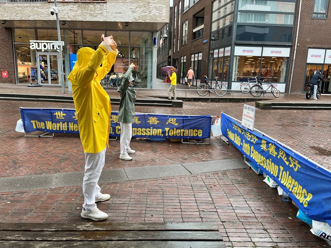 奥斯是荷兰北布拉班特(Noord Brabad)省的一个城市,位于斯海尔托亨博斯和奈梅亨之间。十月二十五日,学员们在豪威尔(Heuvel)街道布置真相展板,展示法轮功功法,向路人发放传单。虽然天空下起雨,还是吸引了许多路人驻足了解真相。