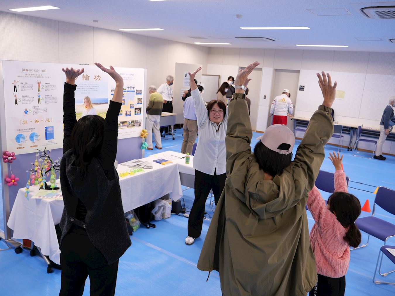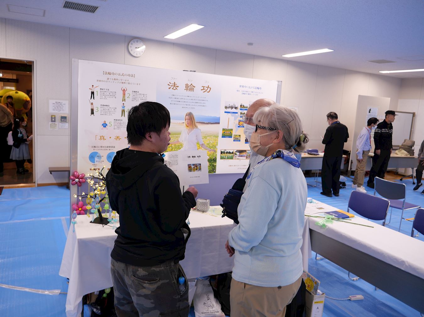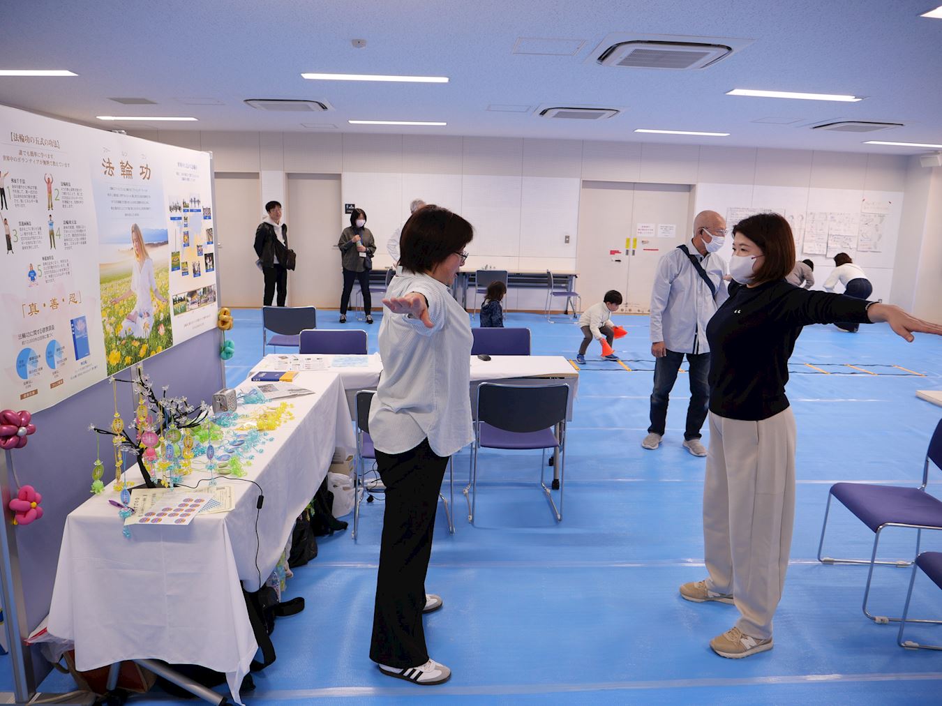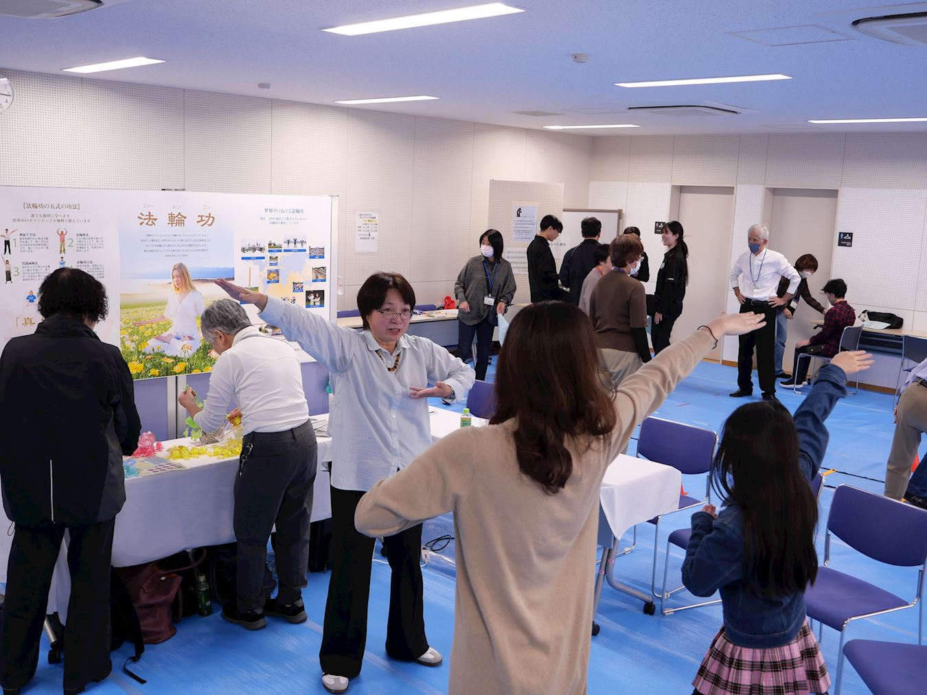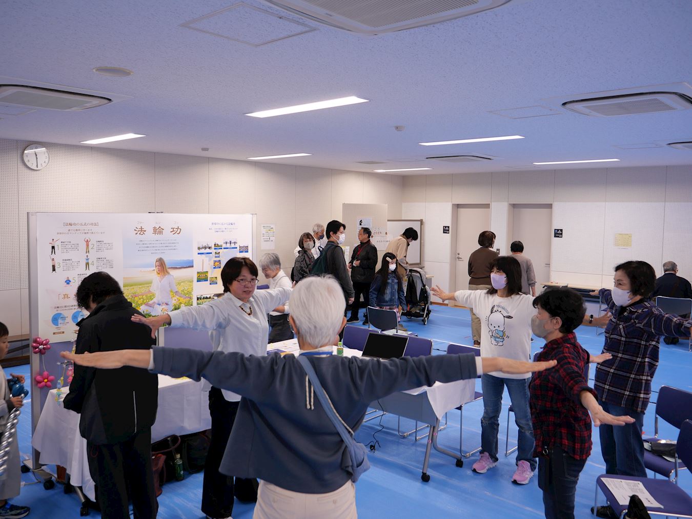 当天活动,不少日本人前来与学员互动,了解法轮功真、善、忍理念和修炼方法,并现场学功。