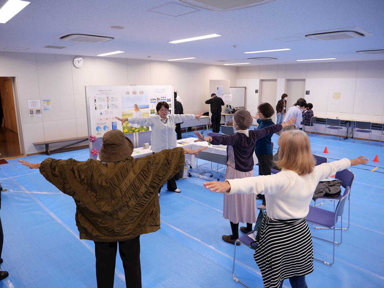 图7:涩谷女士(左一,穿蓝色背心者)表示实际尝试学炼后,发现功法节奏适度且流畅,感到非常舒服。