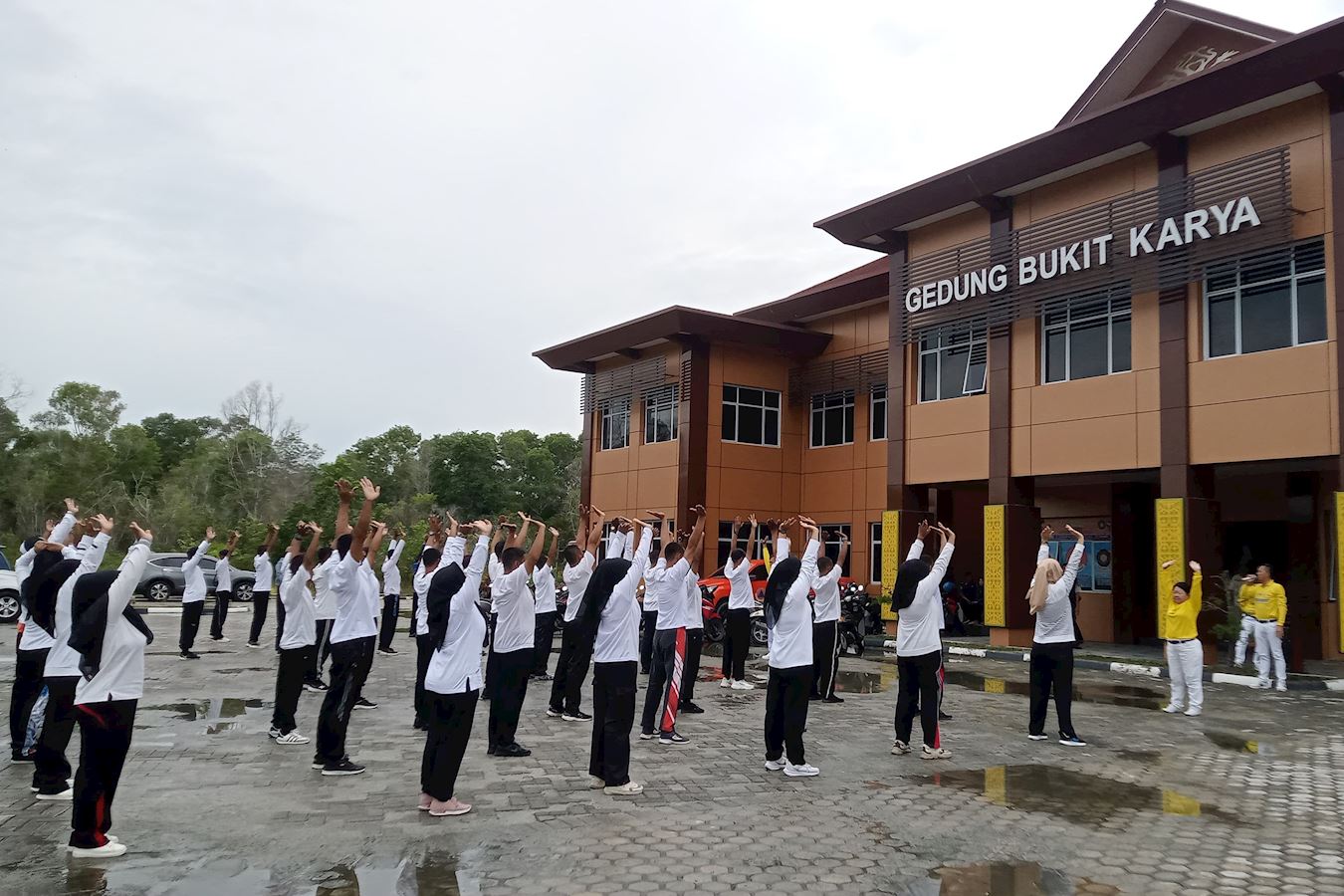 ![]() 图5~6:印尼卡里蒙县公共秩序局官员参加集体炼功 。 |