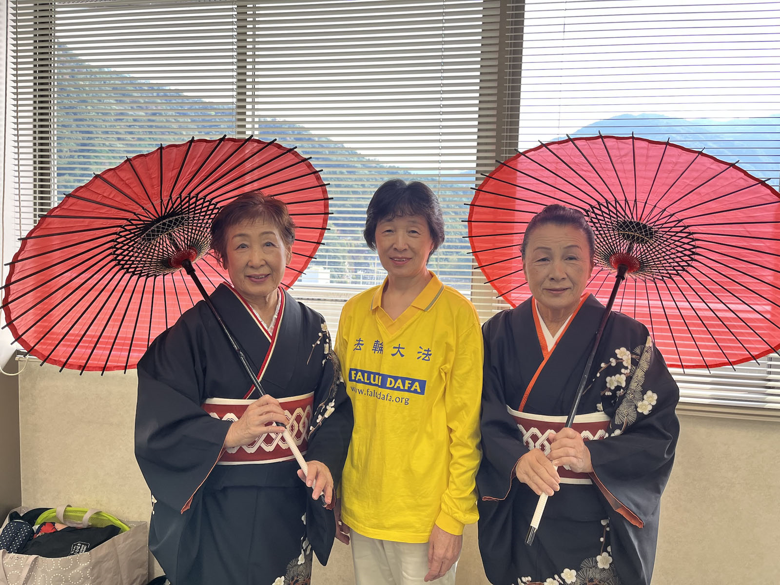 “和服美人”团体的指导教师安田女士听完法轮功学员的介绍后,很赞同真善忍的理念,表示如果赶上休息日,会到可部公民馆的教功教室学功,并和学员交换了联系方式。