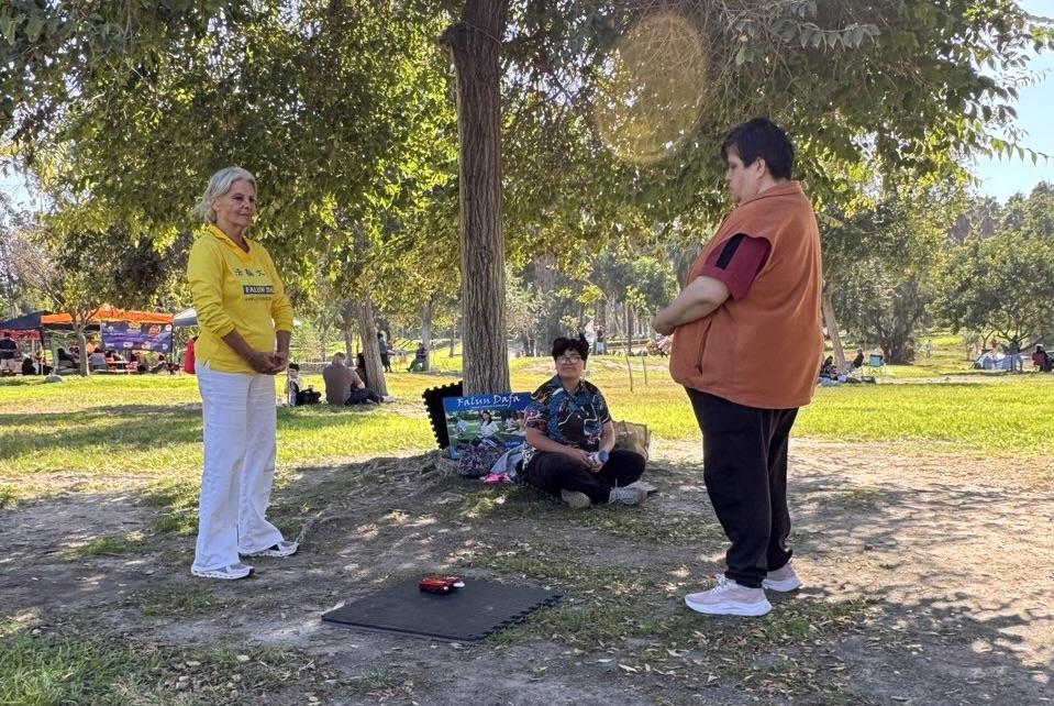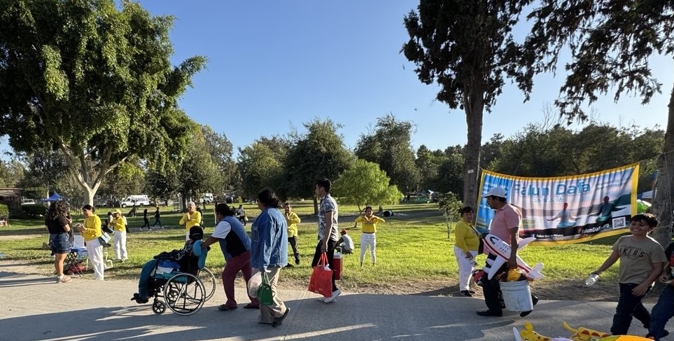 活动的第一天上午,学员们来到蒂华纳最古老的公共公园之一特涅恩特·格雷罗公园(Teniente Guerrero Park)。他们在公园里演示法轮大法功法,并向当地民众讲述中共对法轮功学员的持续迫害。