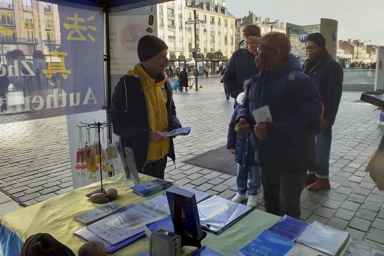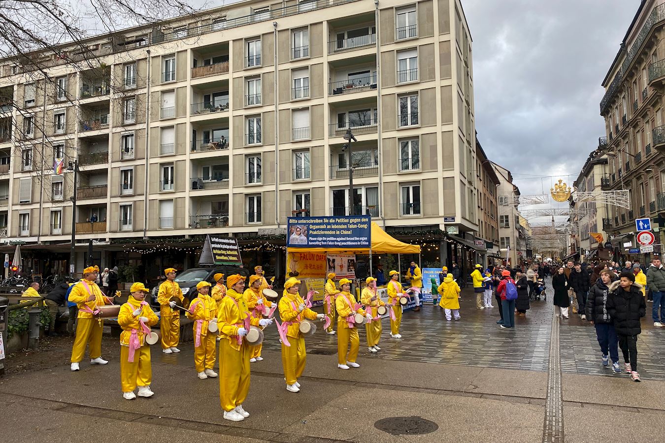 从十二月五日到十二月七日,法轮功学员来到斯特拉斯堡的火车站广场、奥斯特里茨广场(Place d’Austerlitz)和科尔博广场(Place du Corbeau),向人们介绍法轮功及真相。斯特拉斯堡的圣诞市场吸引了欧洲各地的游人,人们在观光游览的同时遇见了法轮功,了解法轮功真相,同时签名支持法轮功学员的反迫害行动。