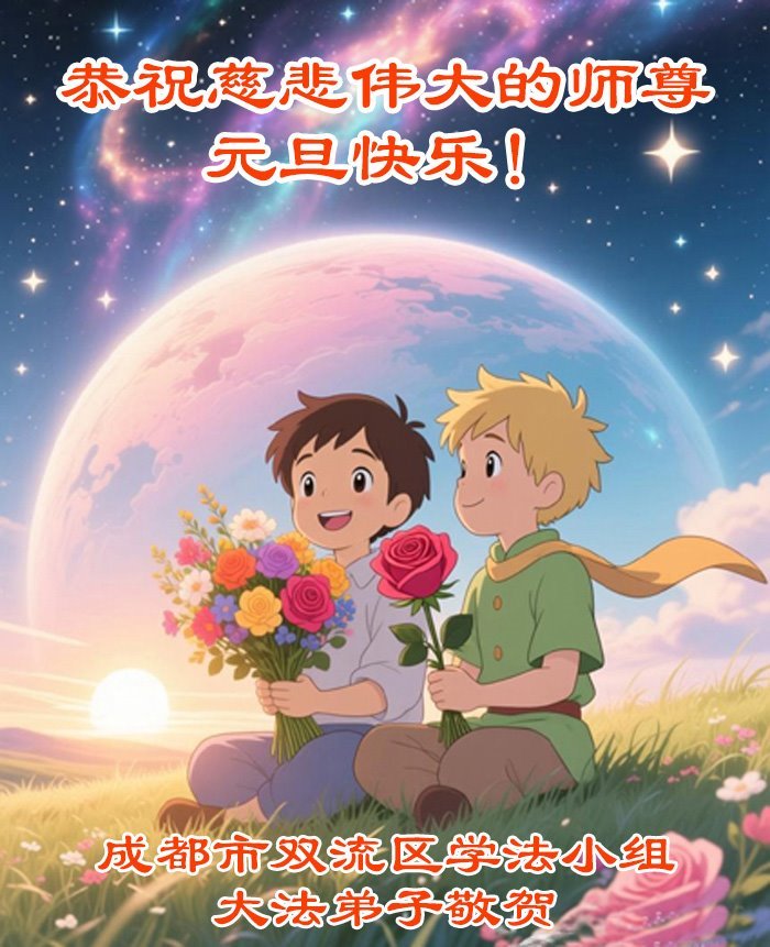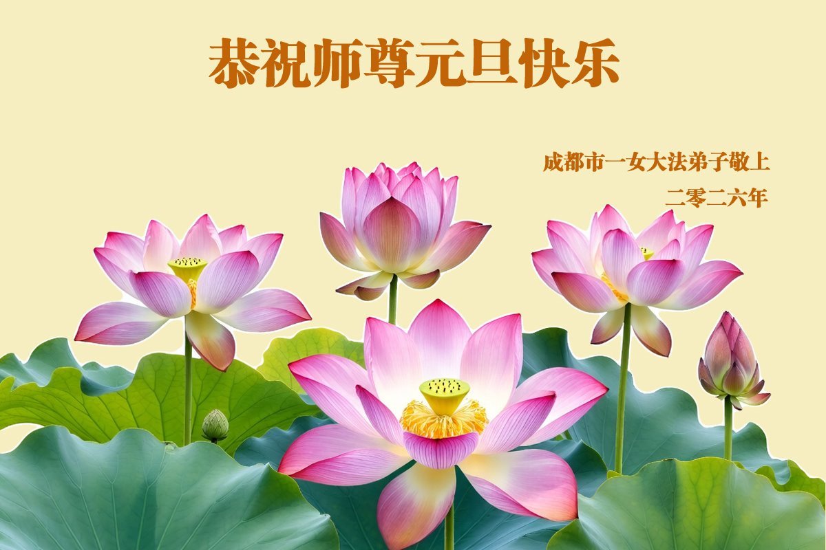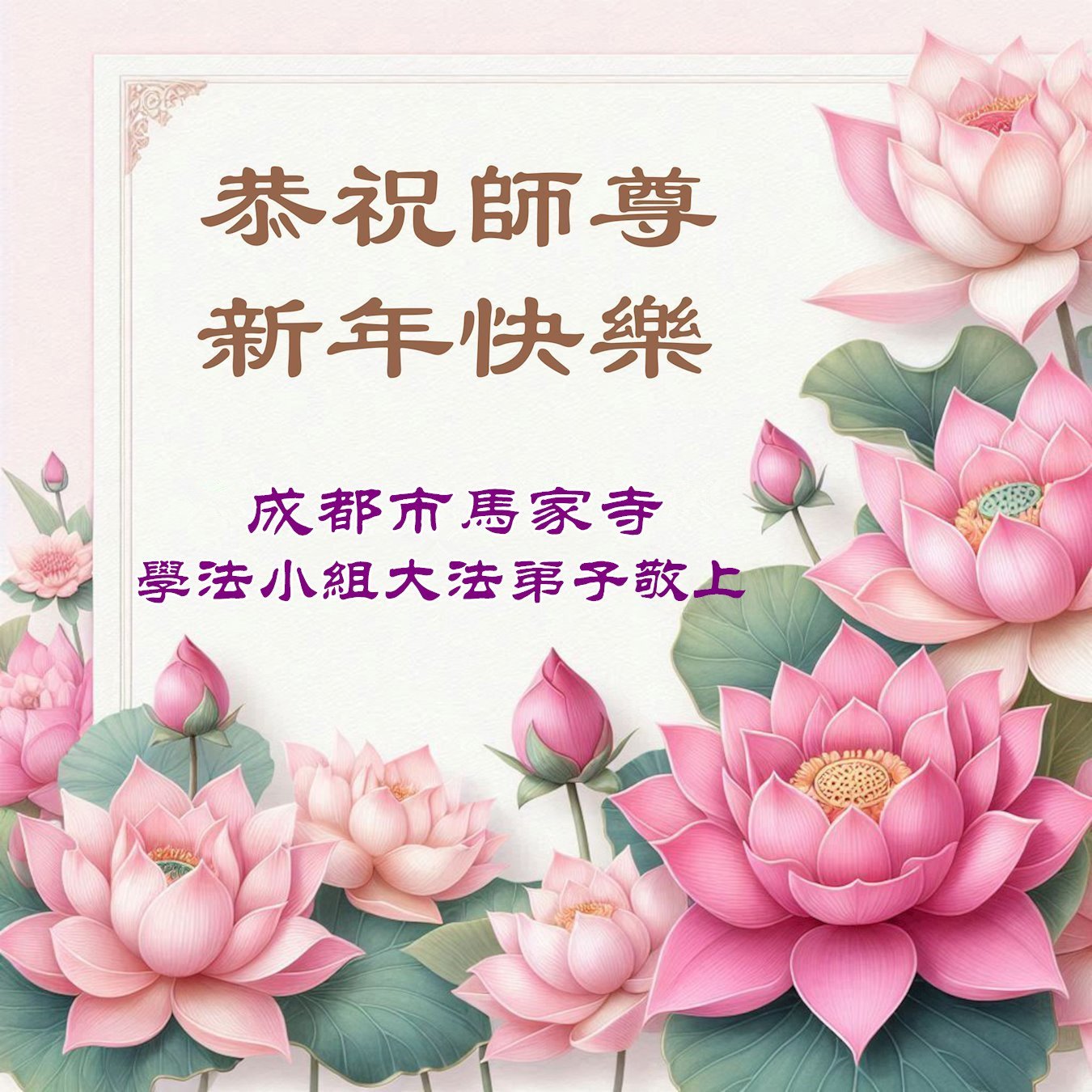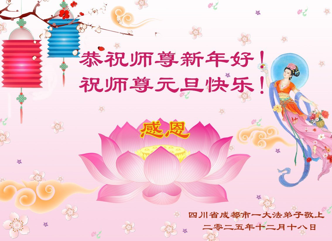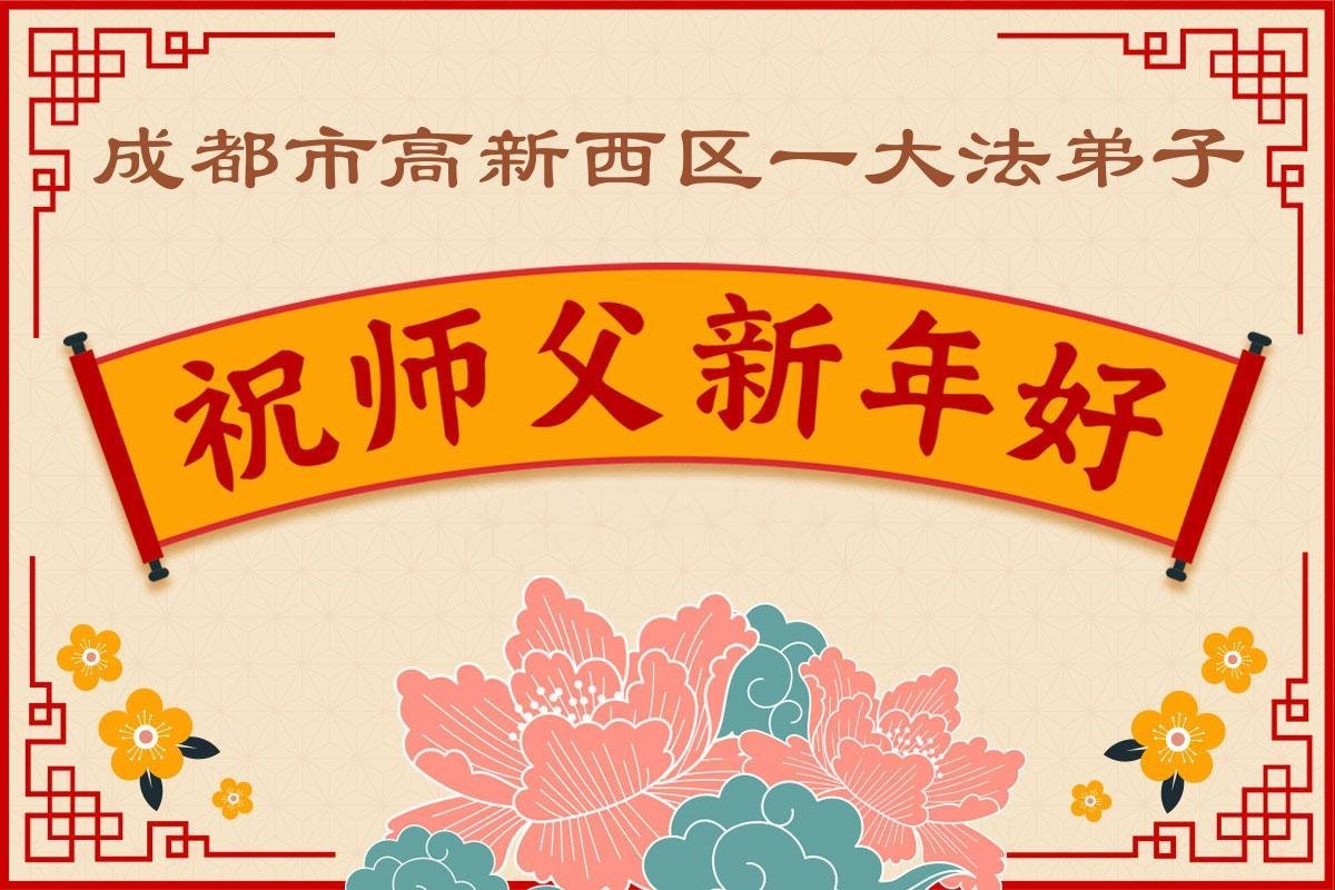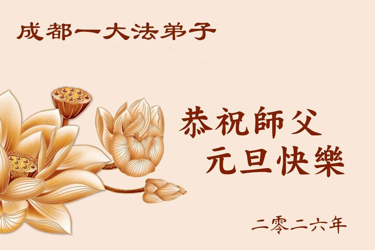 尊敬的师父好,师父您辛苦了!成都工商界大法弟子向师父问好,恭祝师父2026年元旦快乐!每学法深入一点,就更加能体会到师父为救众生的巨大付出。世间一切皆为法而来,一切幻相皆为人心而设。愿我们不为人心所动,走好最后的路,不负师父期望。弟子叩谢师父!
