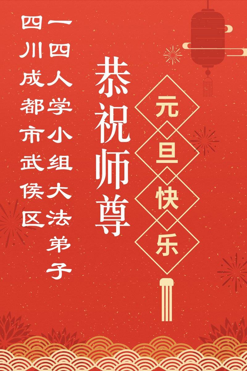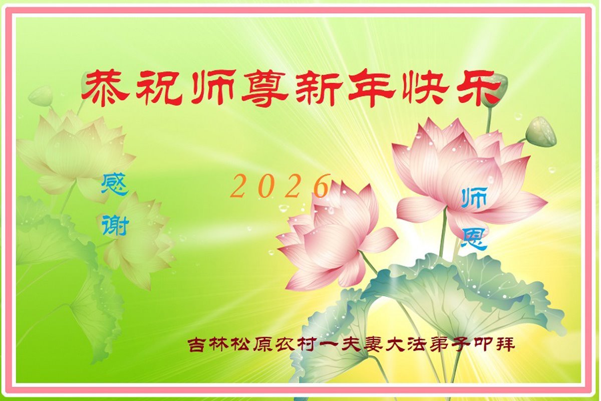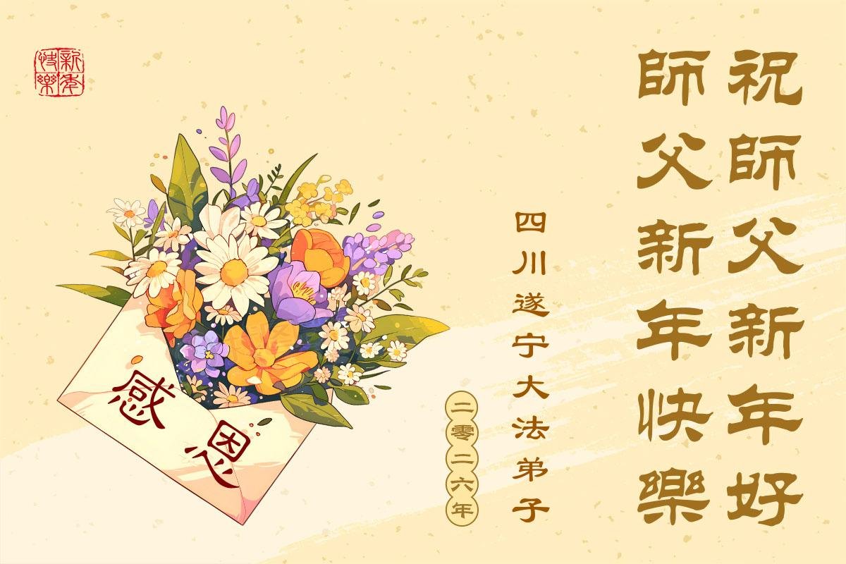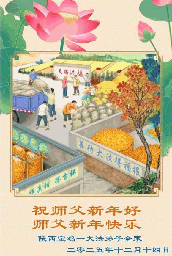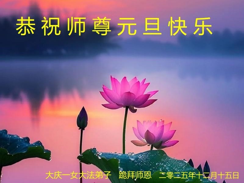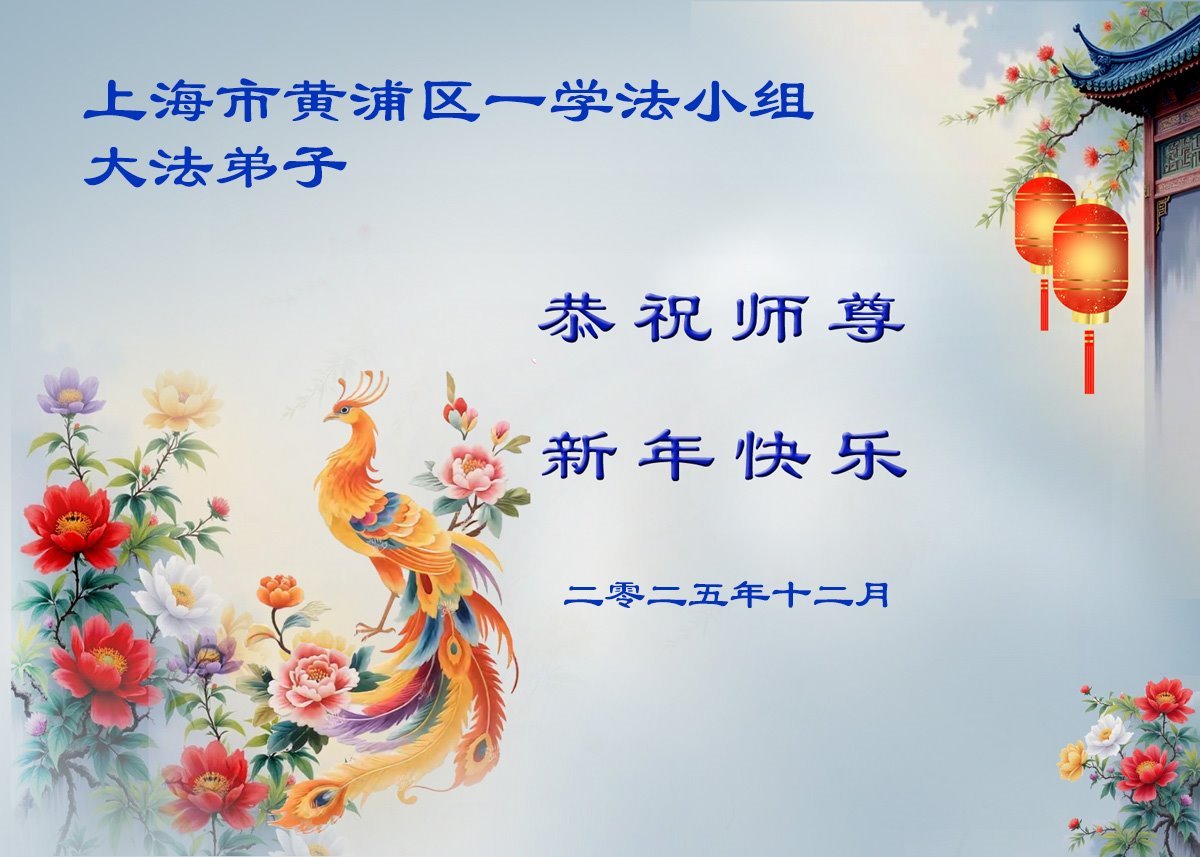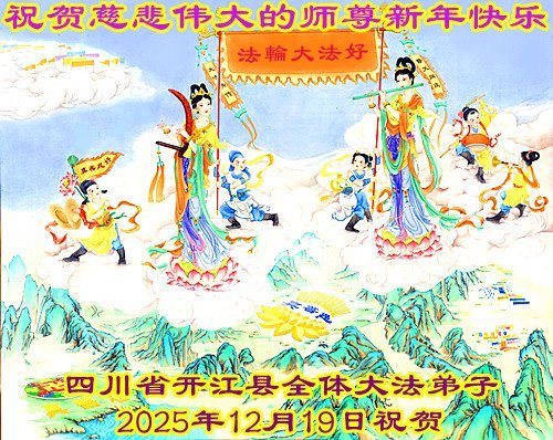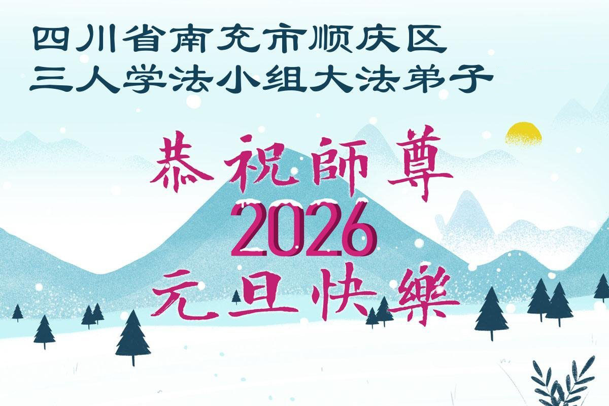 尊敬的师父好,师父您辛苦了!成都工商界大法弟子向师父问好,恭祝师父2026年元旦快乐!每学法深入一点,就更加能体会到师父为救众生的巨大付出。世间一切皆为法而来,一切幻相皆为人心而设。愿我们不为人心所动,走好最后的路,不负师父期望。弟子叩谢师父!