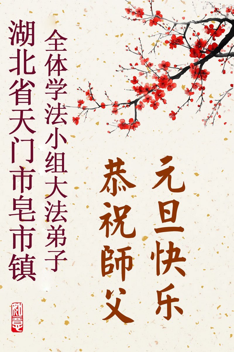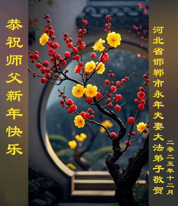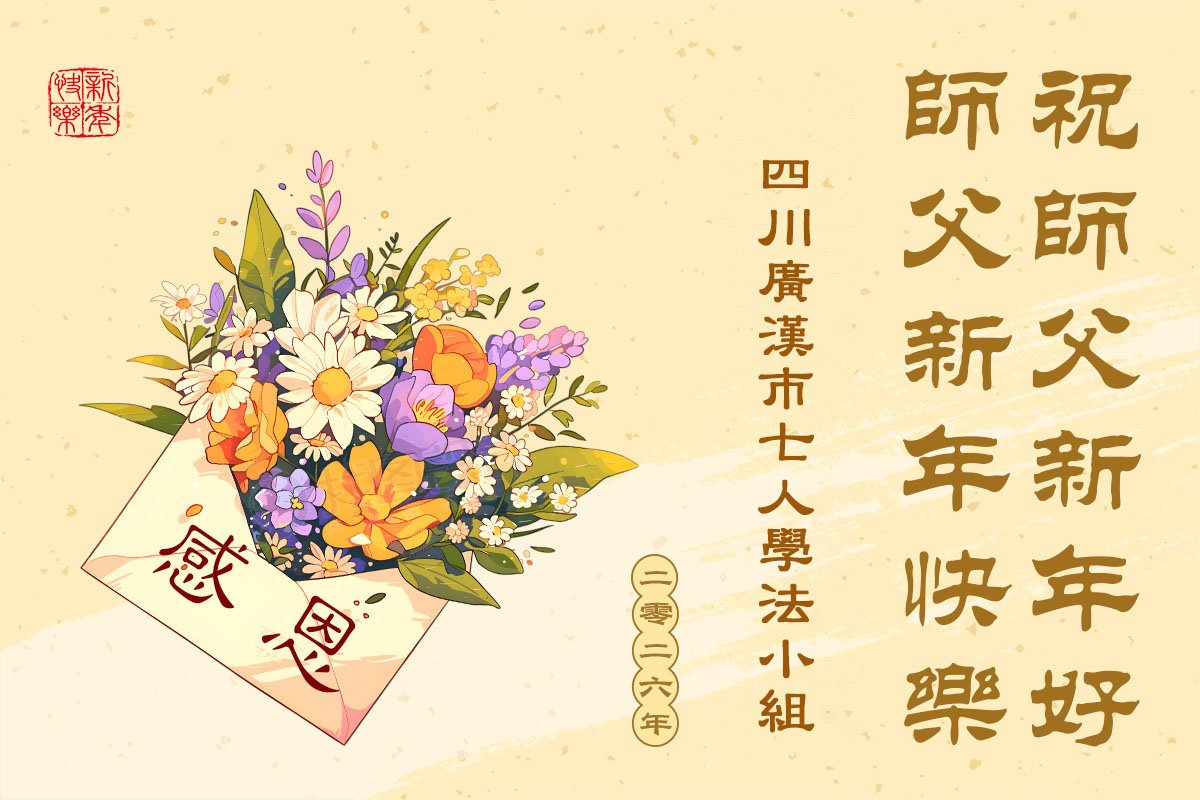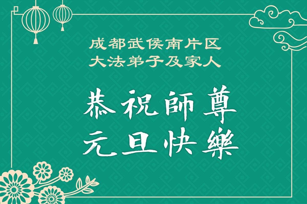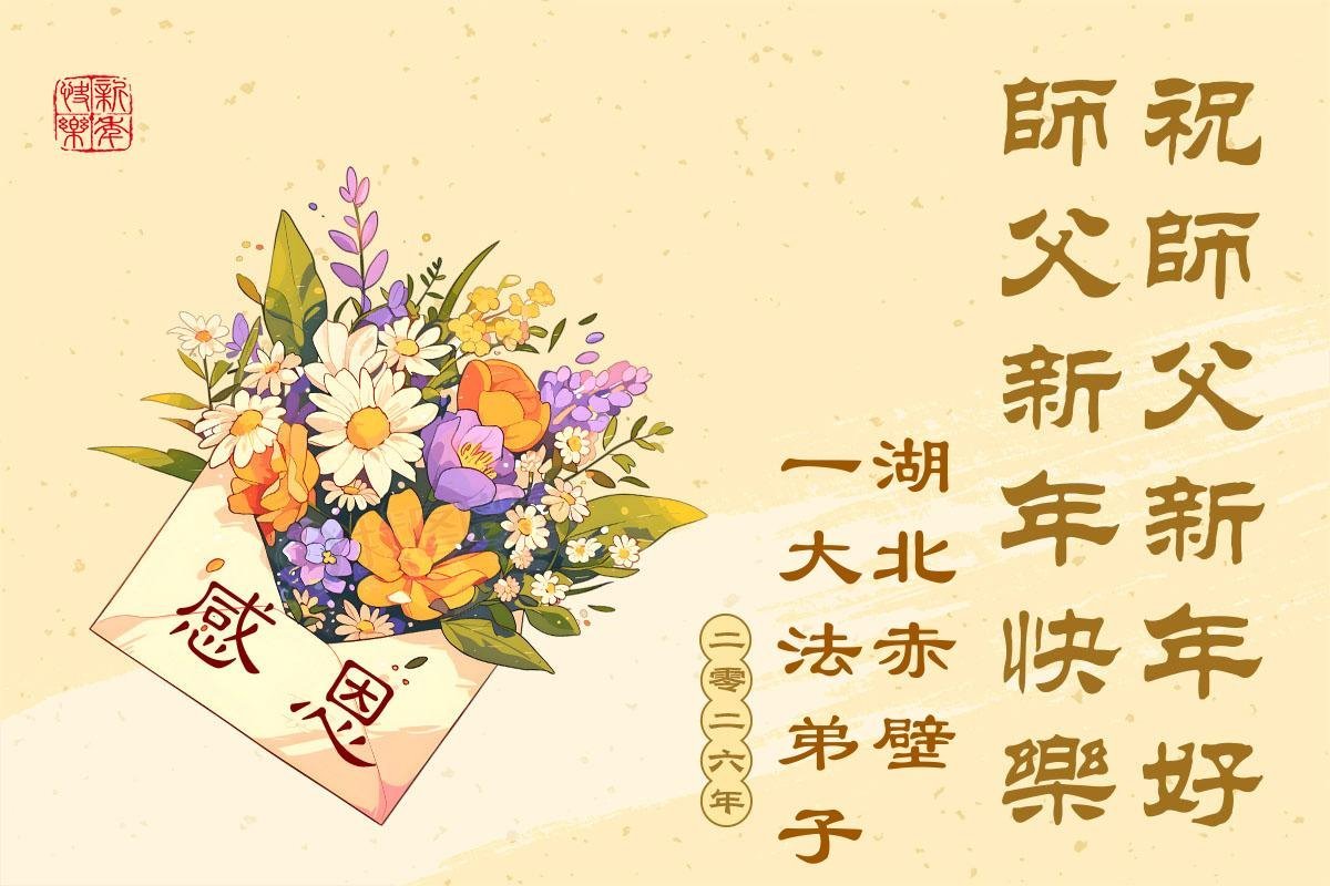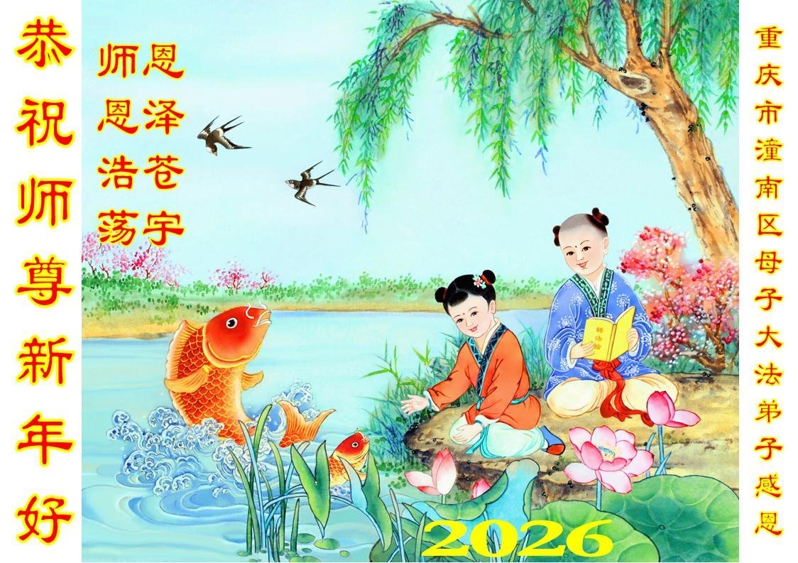 尊敬的师父好,师父您辛苦了!成都工商界大法弟子向师父问好,恭祝师父2026年元旦快乐!每学法深入一点,就更加能体会到师父为救众生的巨大付出。世间一切皆为法而来,一切幻相皆为人心而设。愿我们不为人心所动,走好最后的路,不负师父期望。弟子叩谢师父!