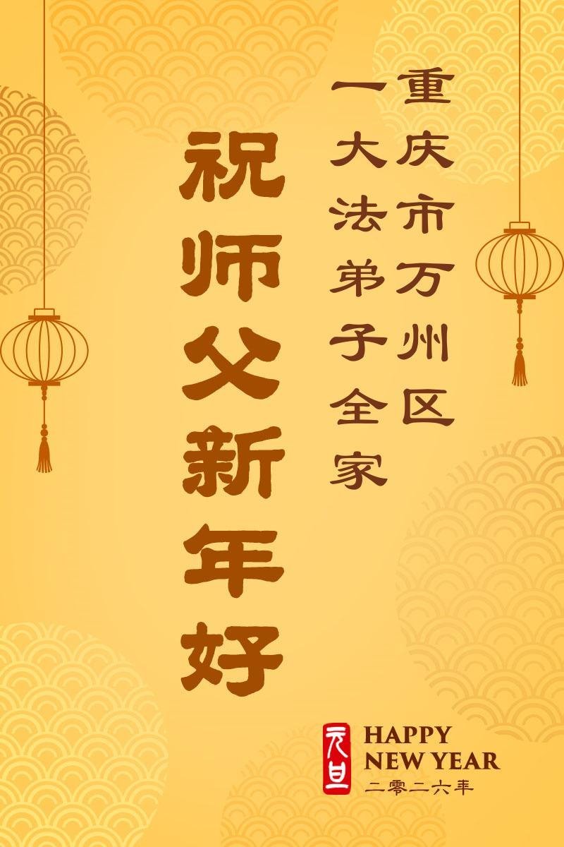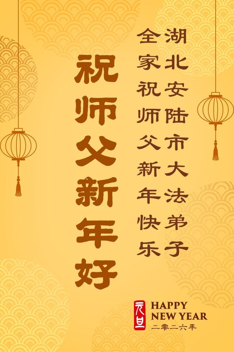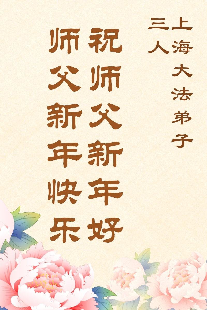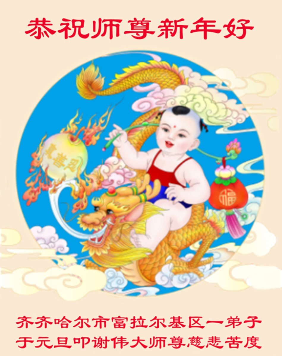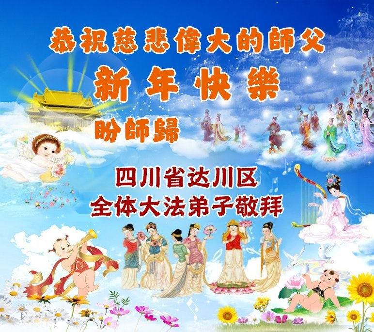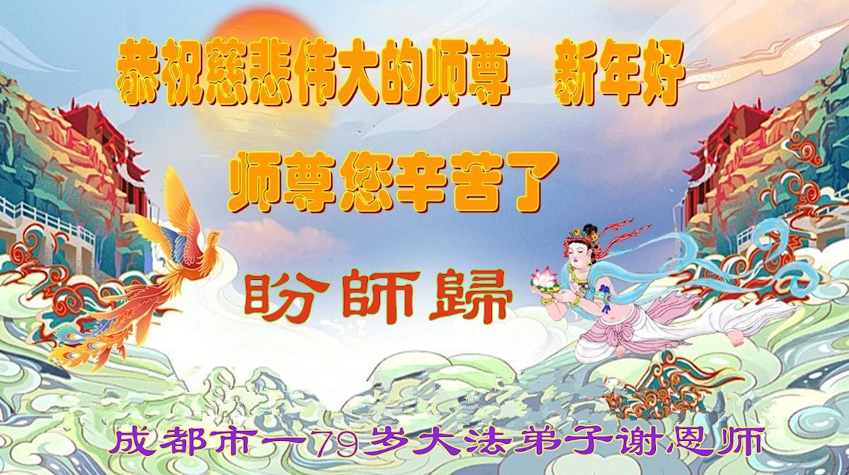 师尊您几十年传法至今,始终肩负着宇宙正法的艰难,承载着各界众生的困苦、压力和巨大的业力,在这末后救人的重大时刻,您为人类操尽了心!我们想念着您!我们就做好自己应该做的三件事,请师尊放心!在此恭祝师尊新年快乐!