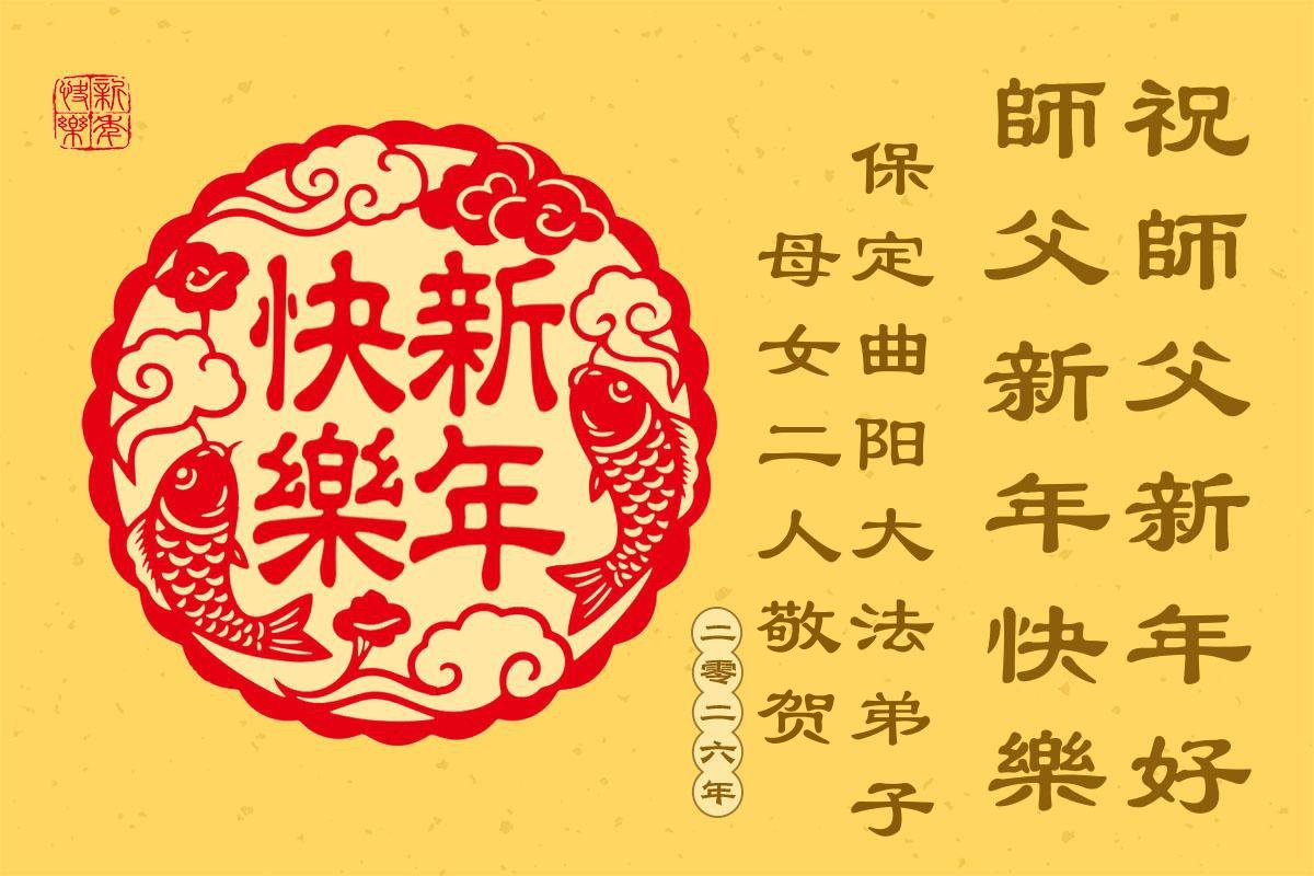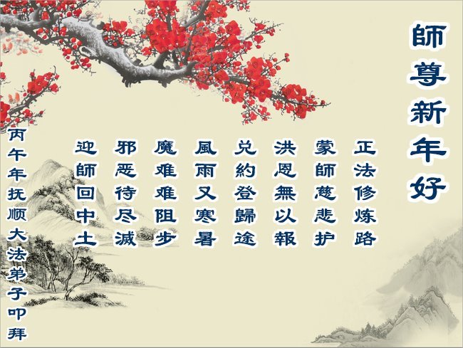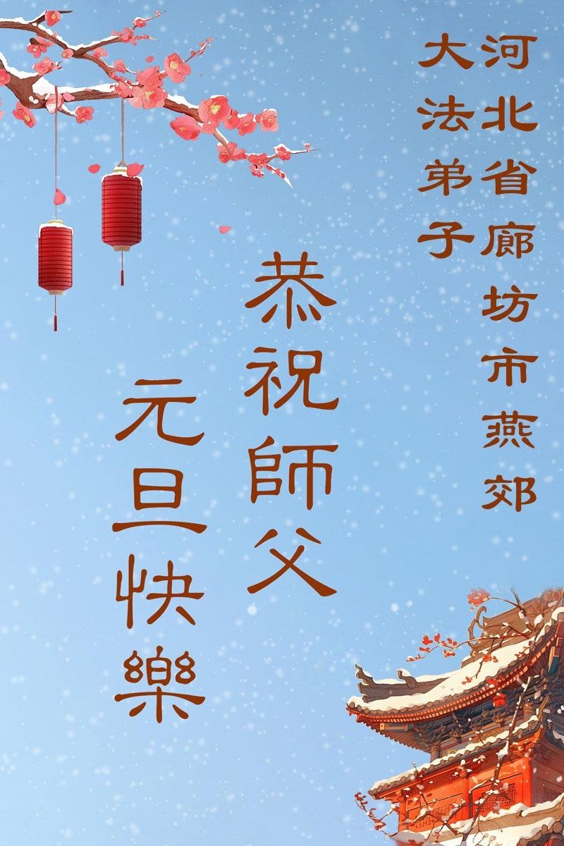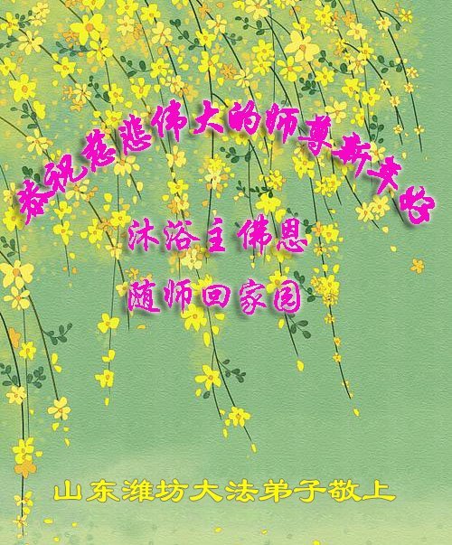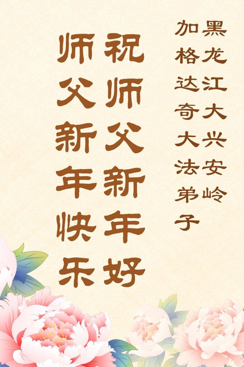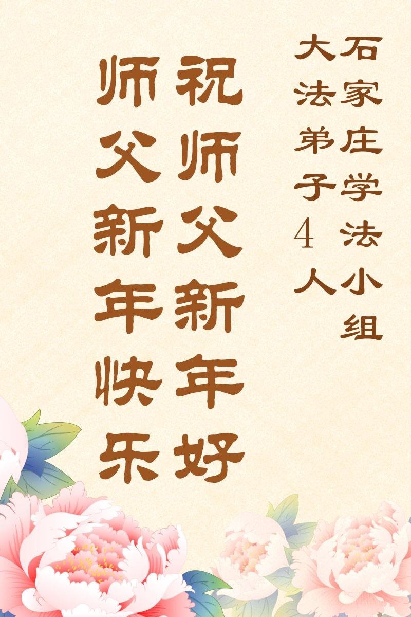 师尊您几十年传法至今,始终肩负着宇宙正法的艰难,承载着各界众生的困苦、压力和巨大的业力,在这末后救人的重大时刻,您为人类操尽了心!我们想念着您!我们就做好自己应该做的三件事,请师尊放心!在此恭祝师尊新年快乐!