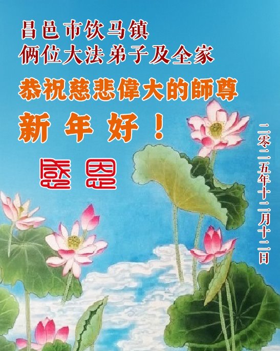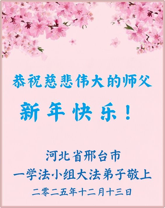 【明慧网二零二五年十二月二十九日】(明慧网通讯员综合报道)二零二六年新年的钟声即将敲响,在中国大陆从事各行业工作的大法弟子们敬祝慈悲伟大的师尊新年好!在师尊的看护下,大法弟子们又走过了在工作和生活中随时随处讲真相、证实法的一年。在辉煌的新纪元正在开启的历史时刻,弟子们会珍惜每一天、每一时刻,谨遵师命,修好自己,多救众生!