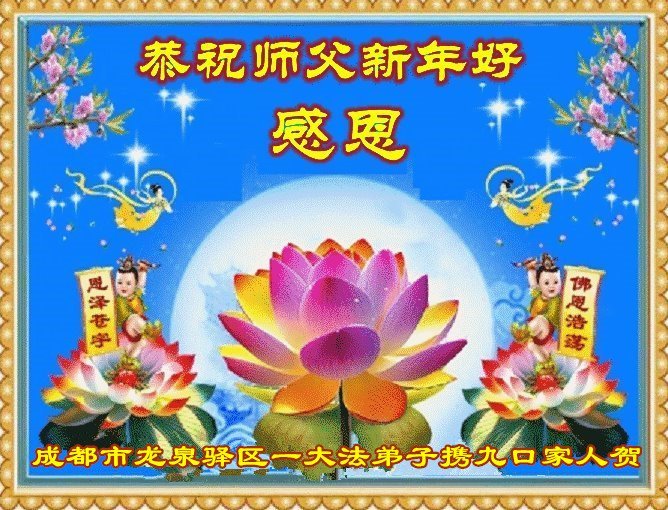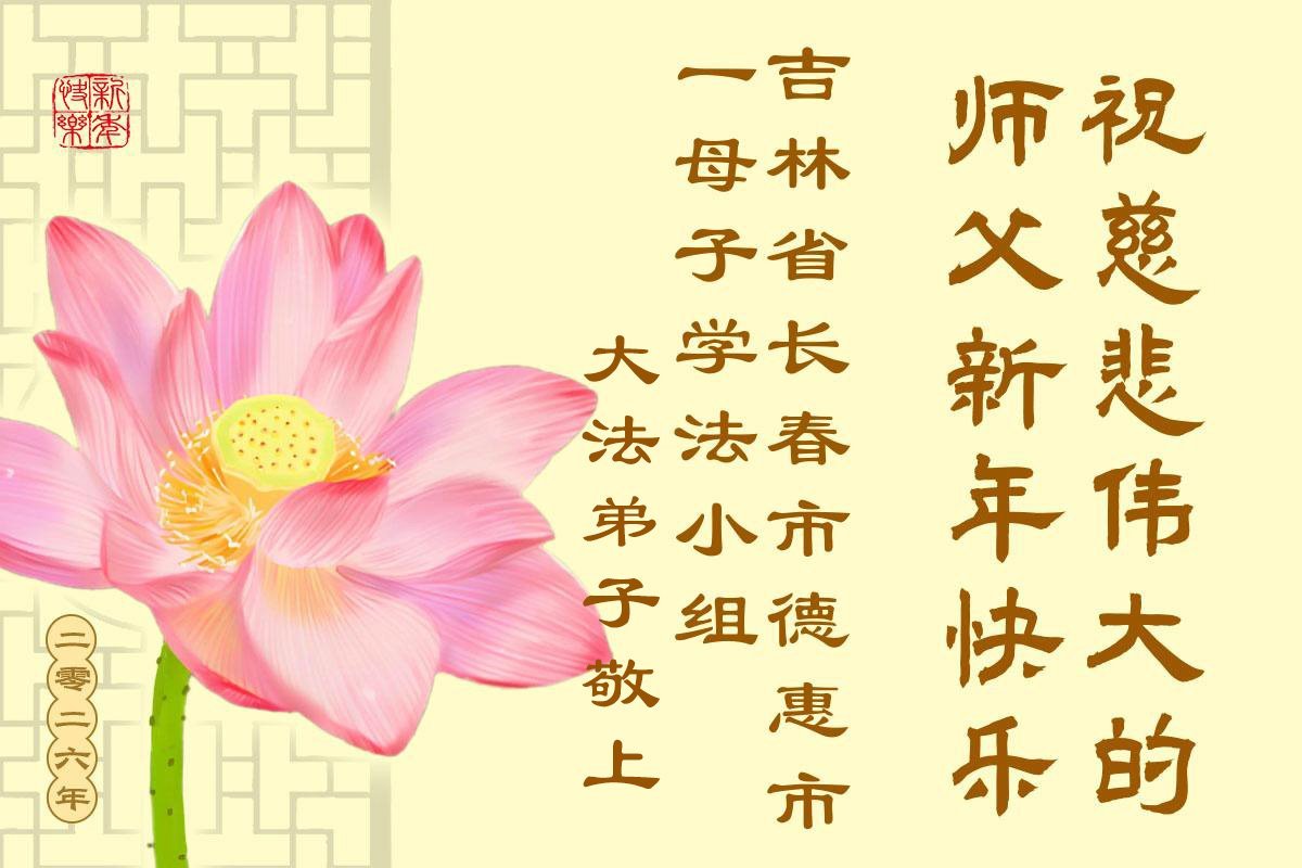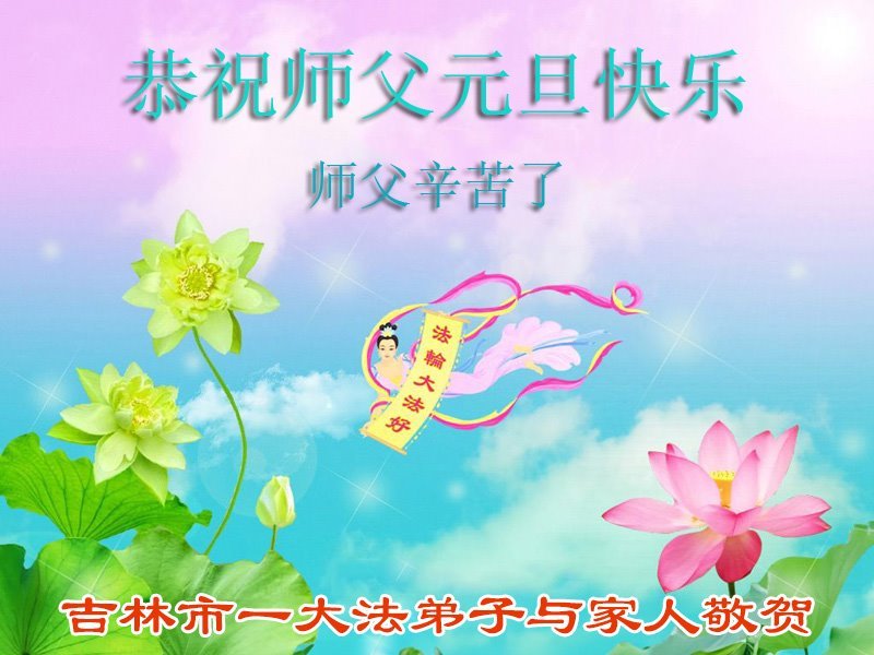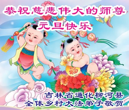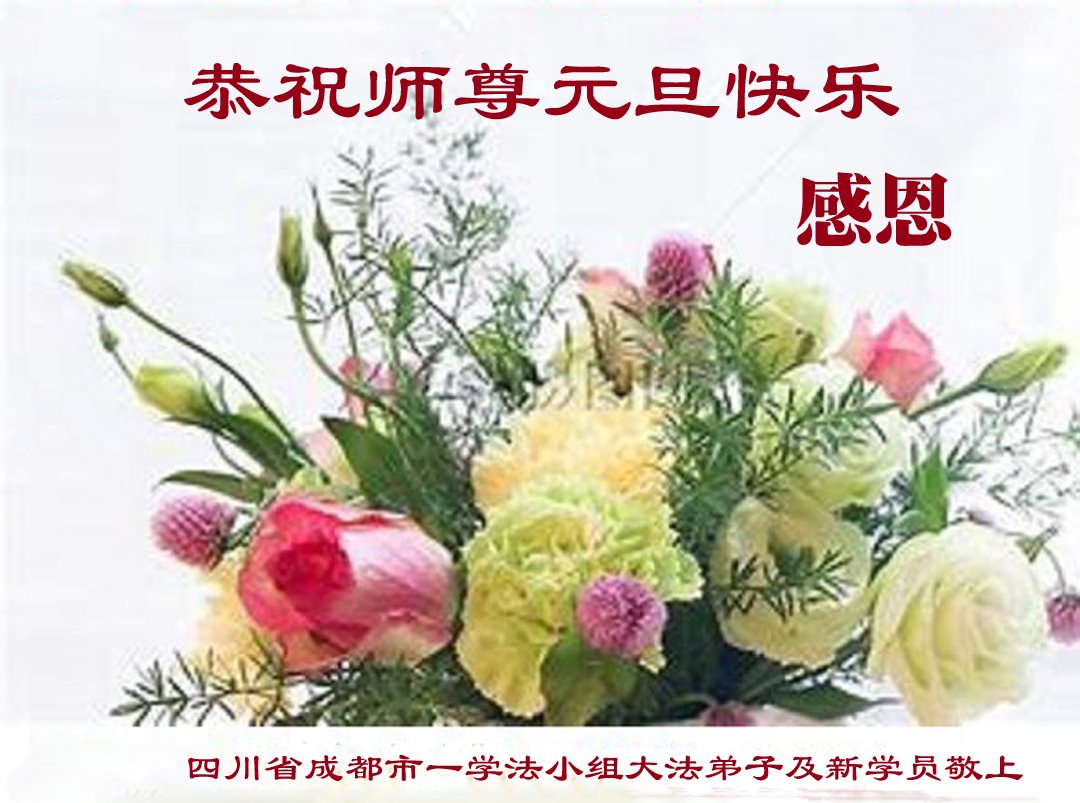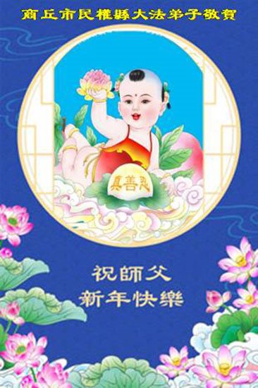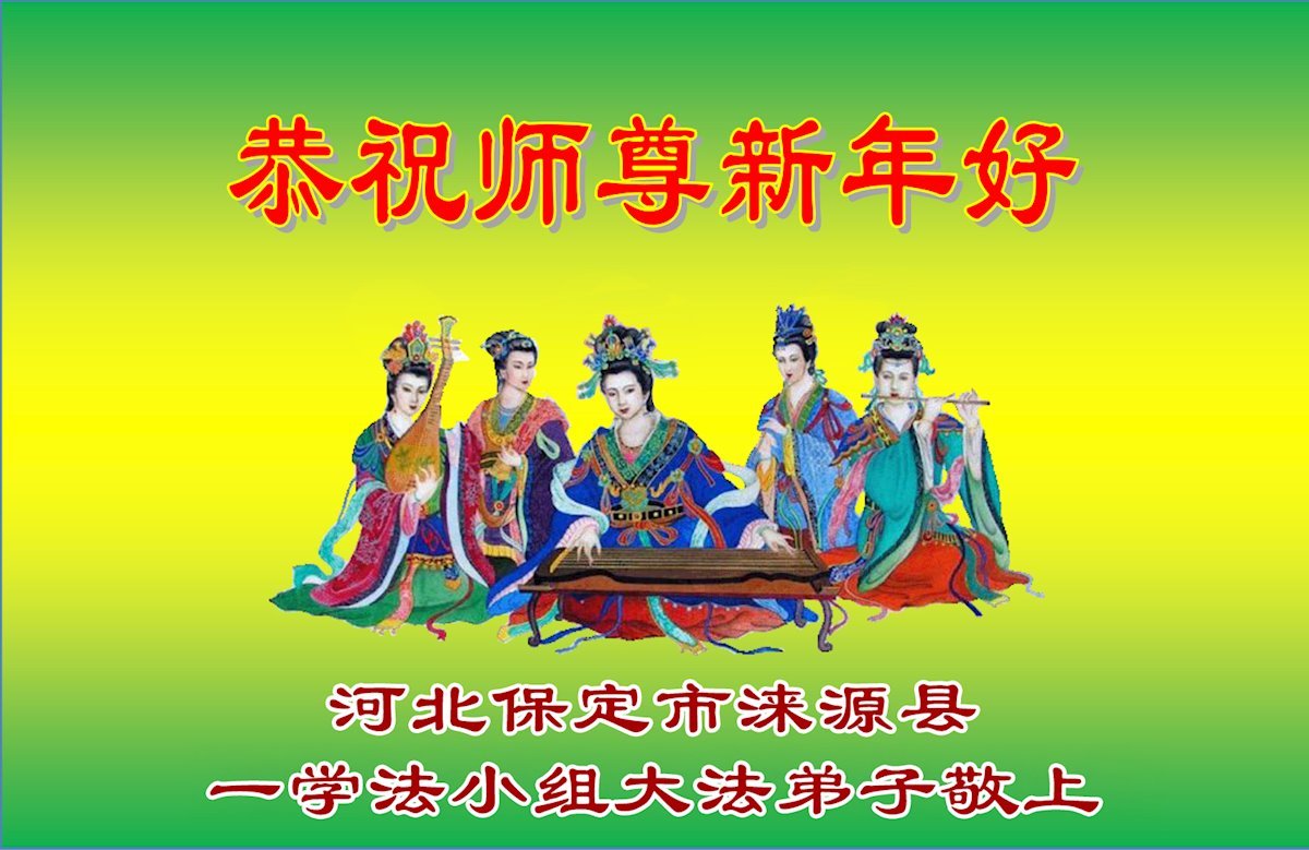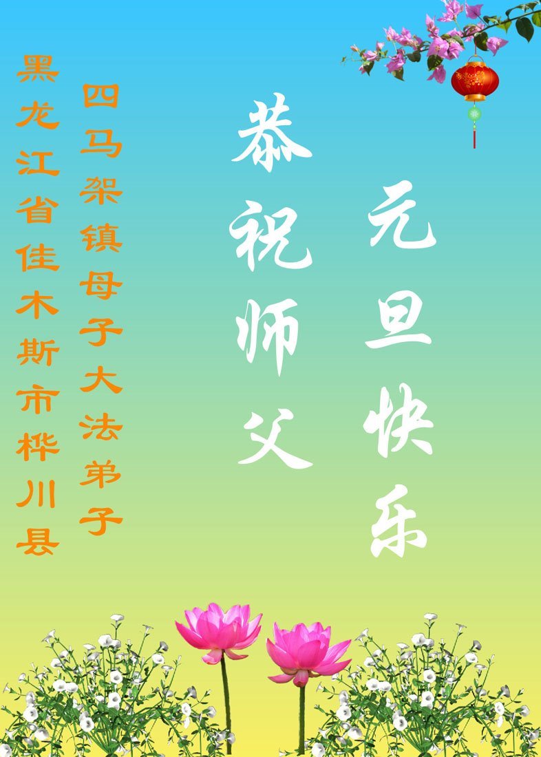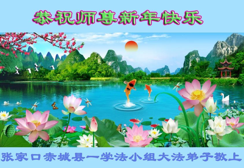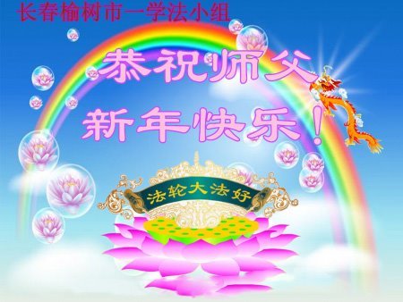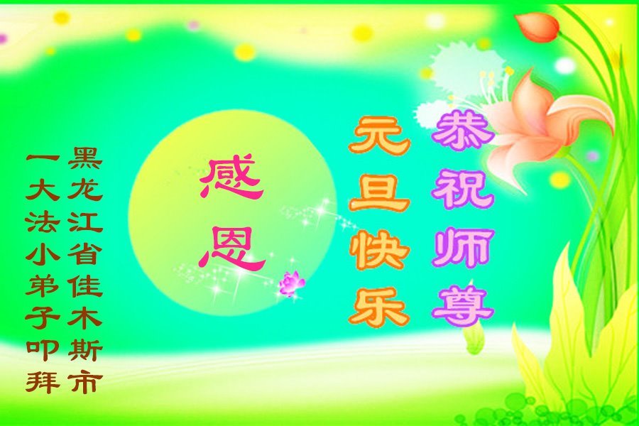 以下是部份来自中国各省、市、地区的学法炼功小组、讲真相小组、资料点大法弟子们敬致师尊的新年贺词贺卡: