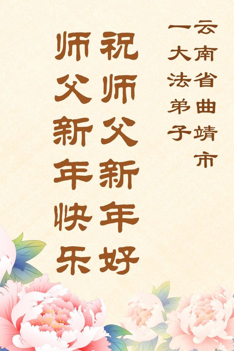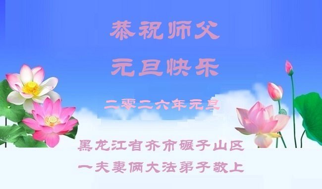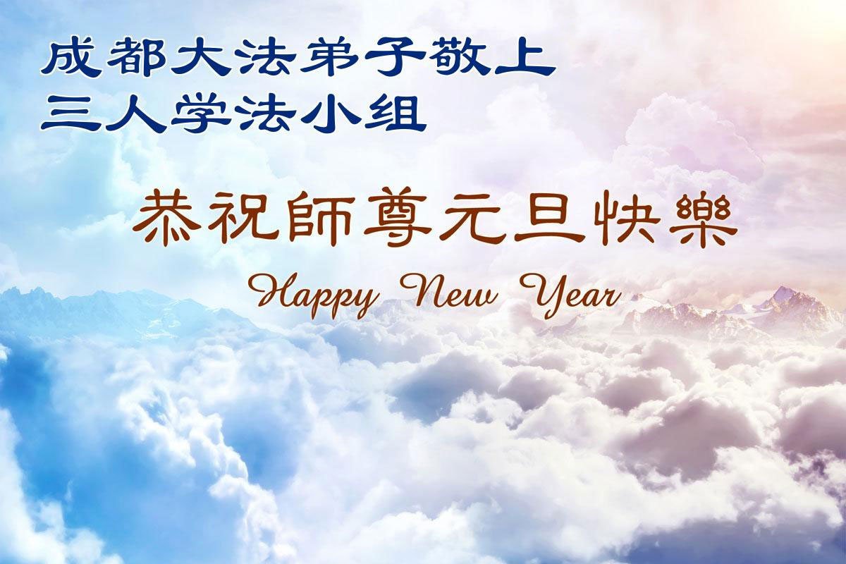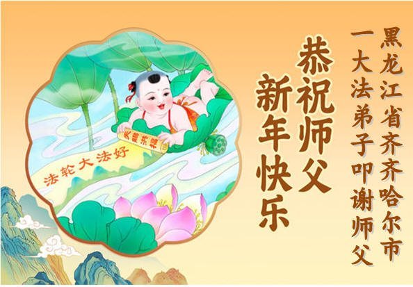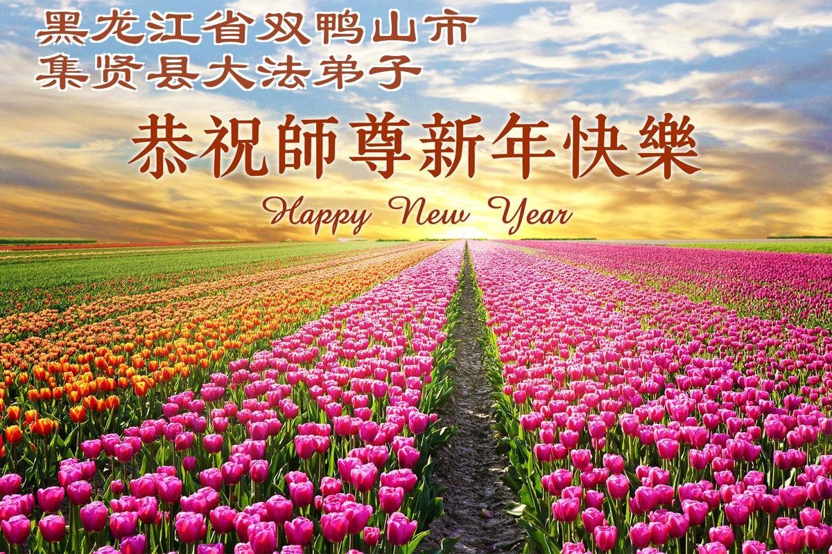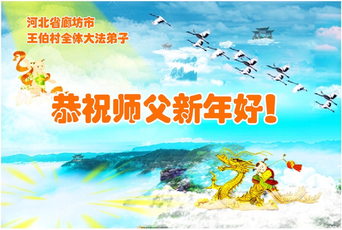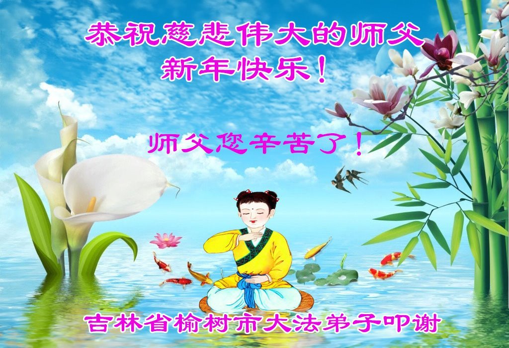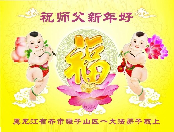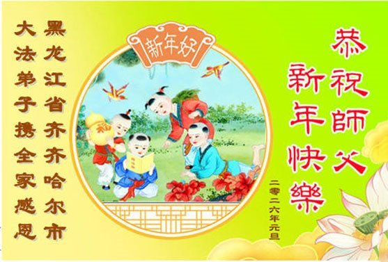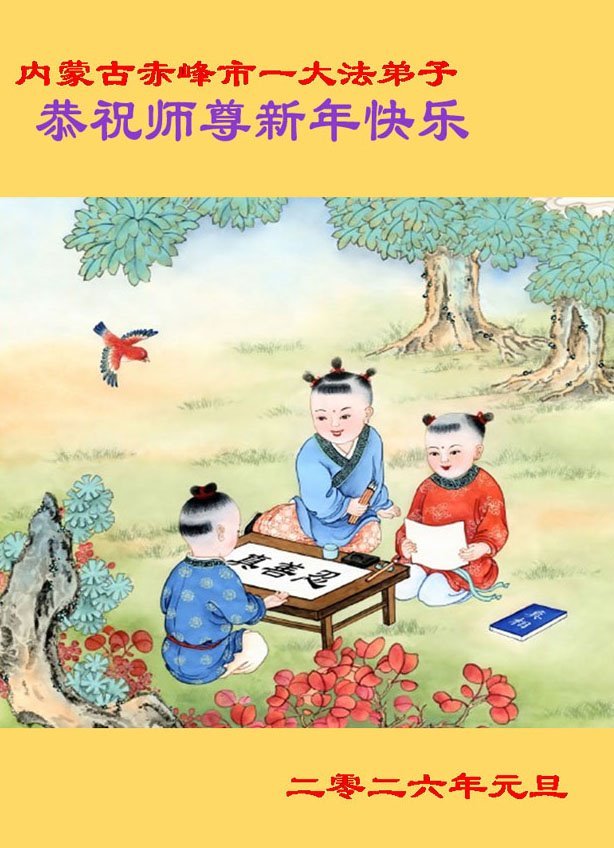 以下是部份来自中国各省、市、地区的学法炼功小组、讲真相小组、资料点大法弟子们敬致师尊的新年贺词贺卡: