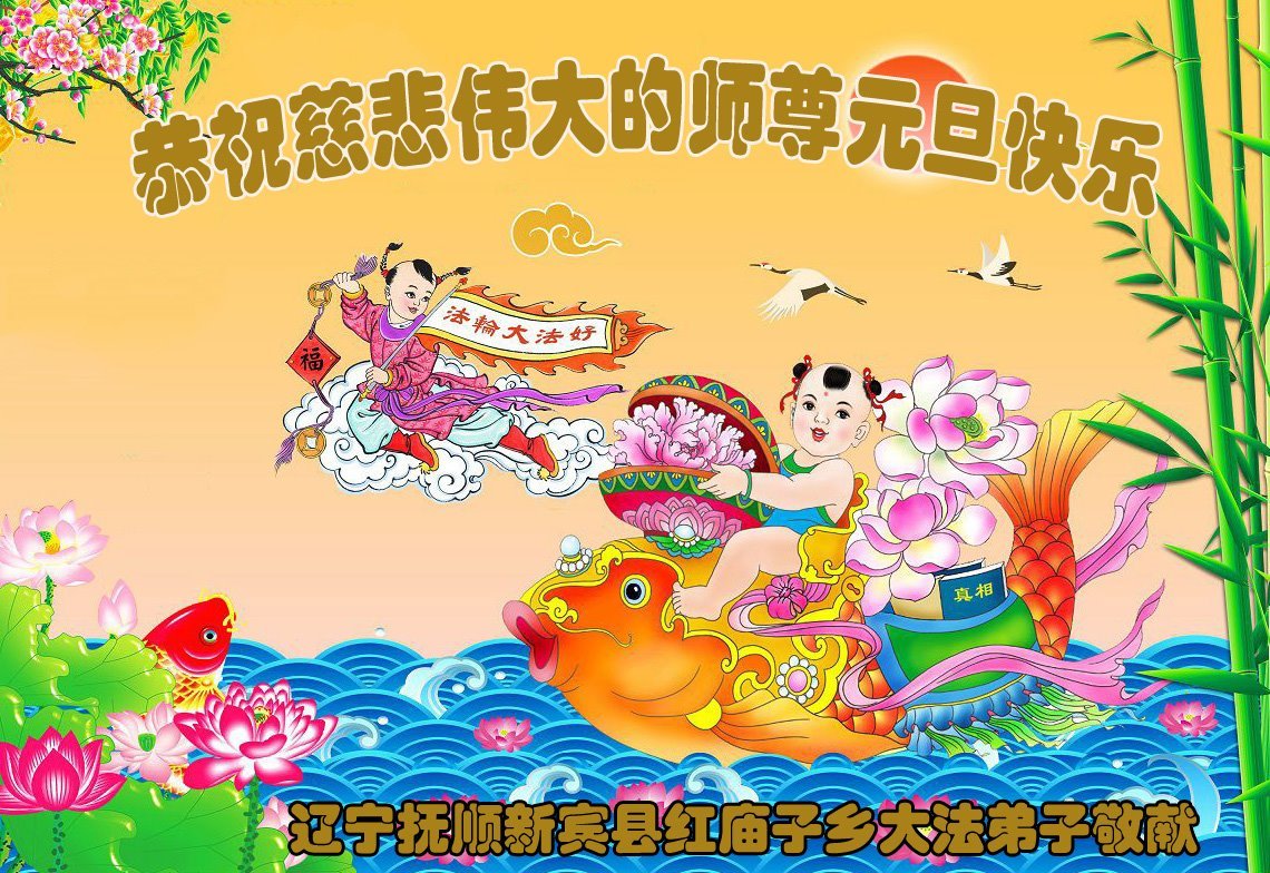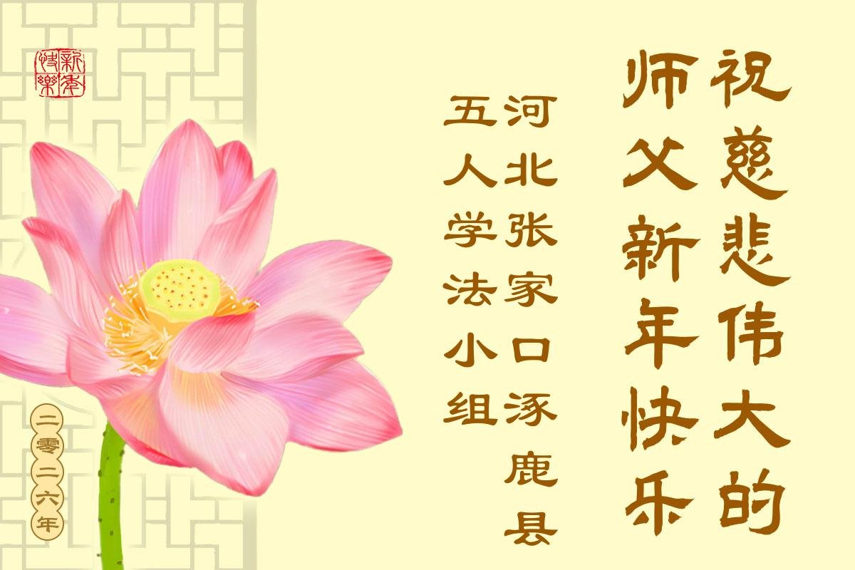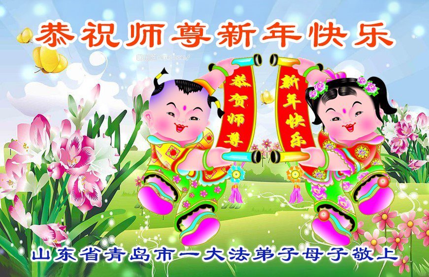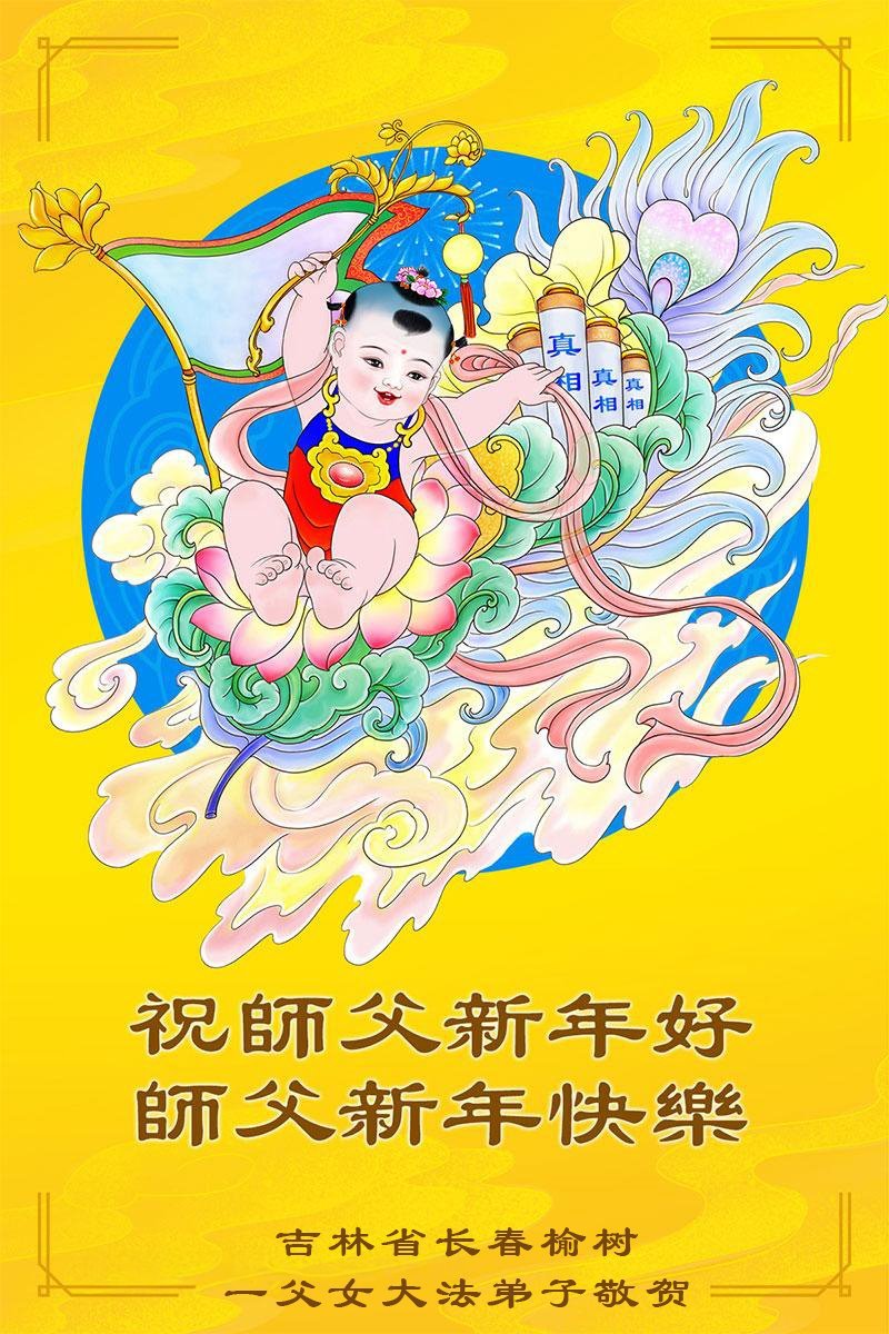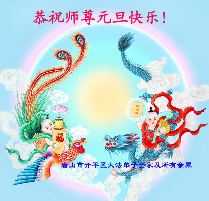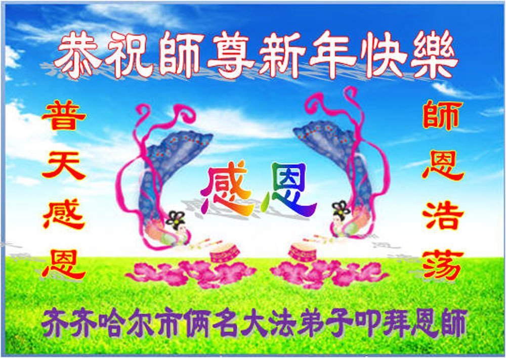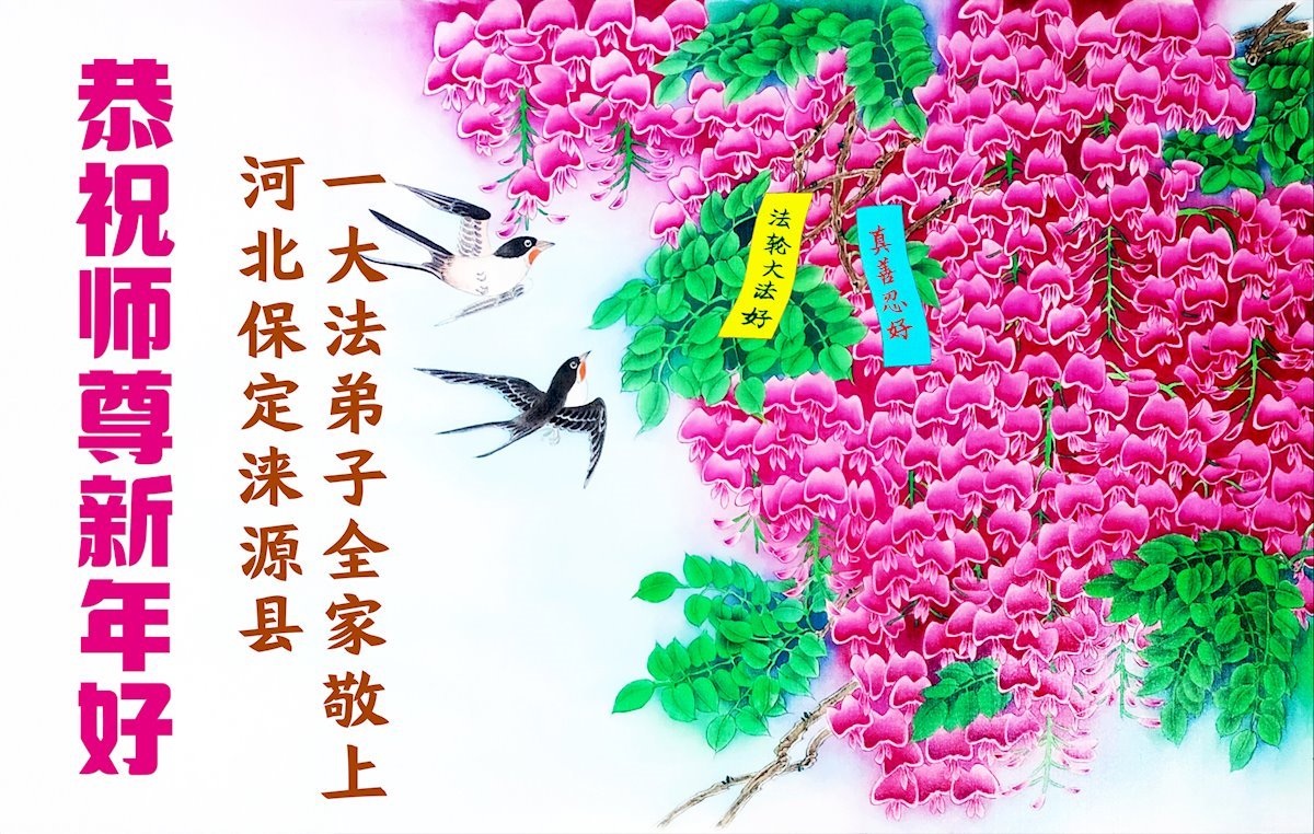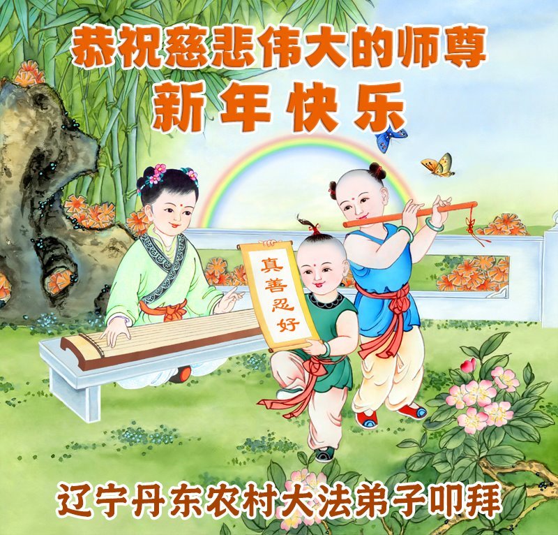 以下是部份来自中国各省、市、地区的学法炼功小组、讲真相小组、资料点大法弟子们敬致师尊的新年贺词贺卡: