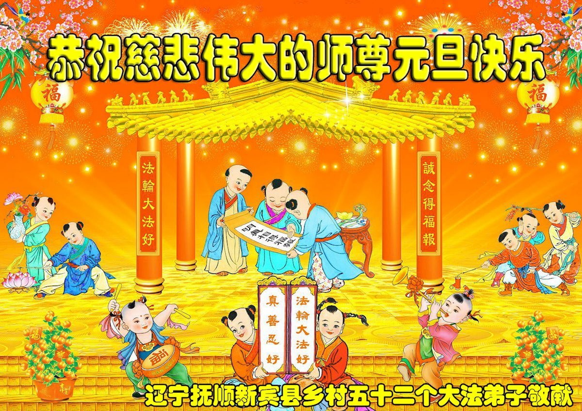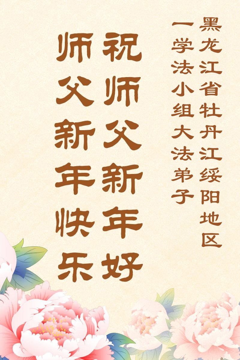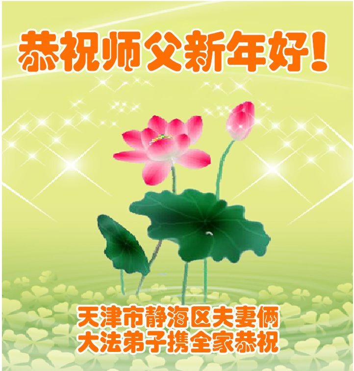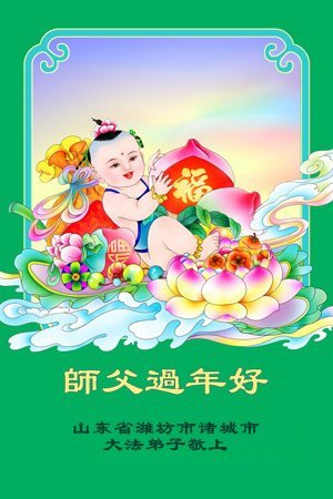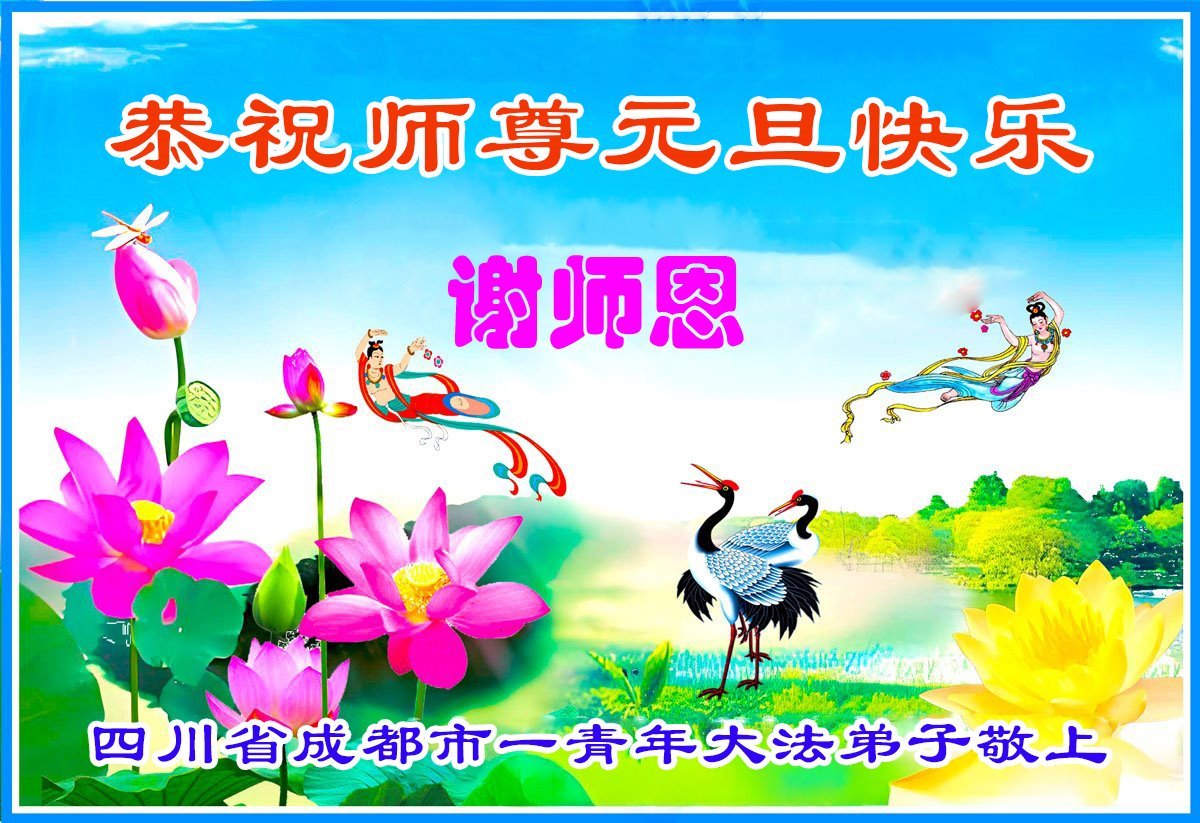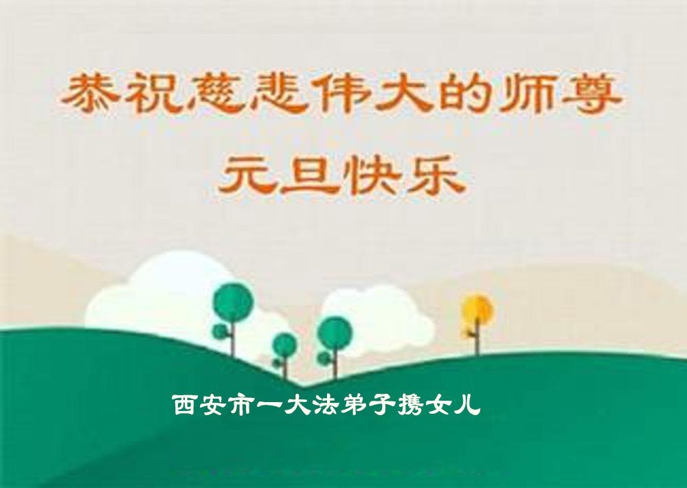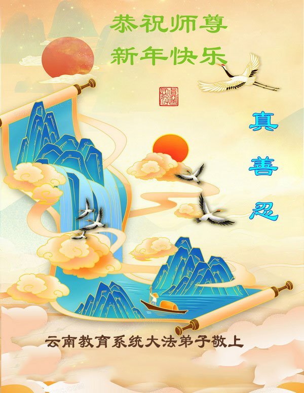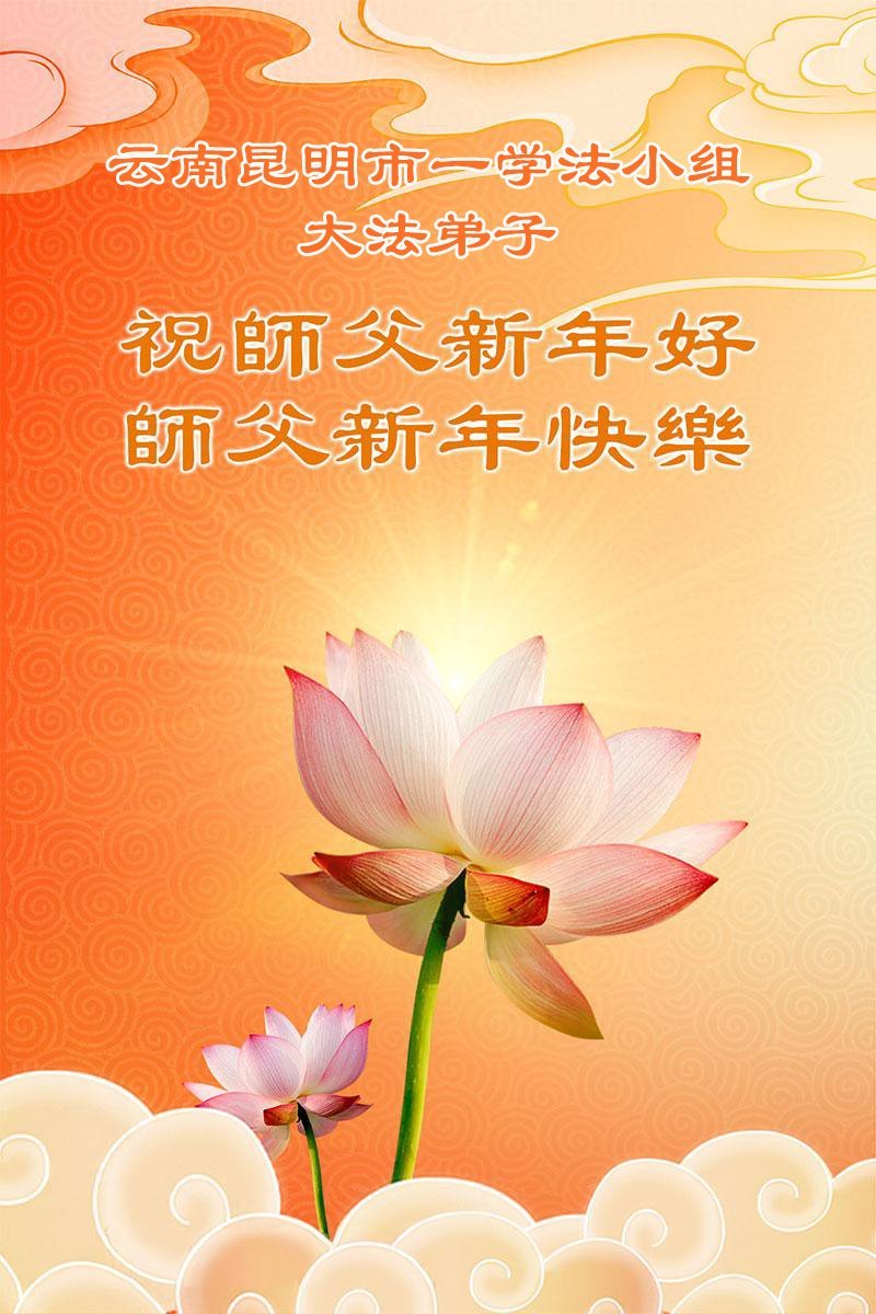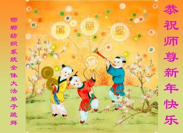 以下是部份来自中国各省、市、地区的学法炼功小组、讲真相小组、资料点大法弟子们敬致师尊的新年贺词贺卡: