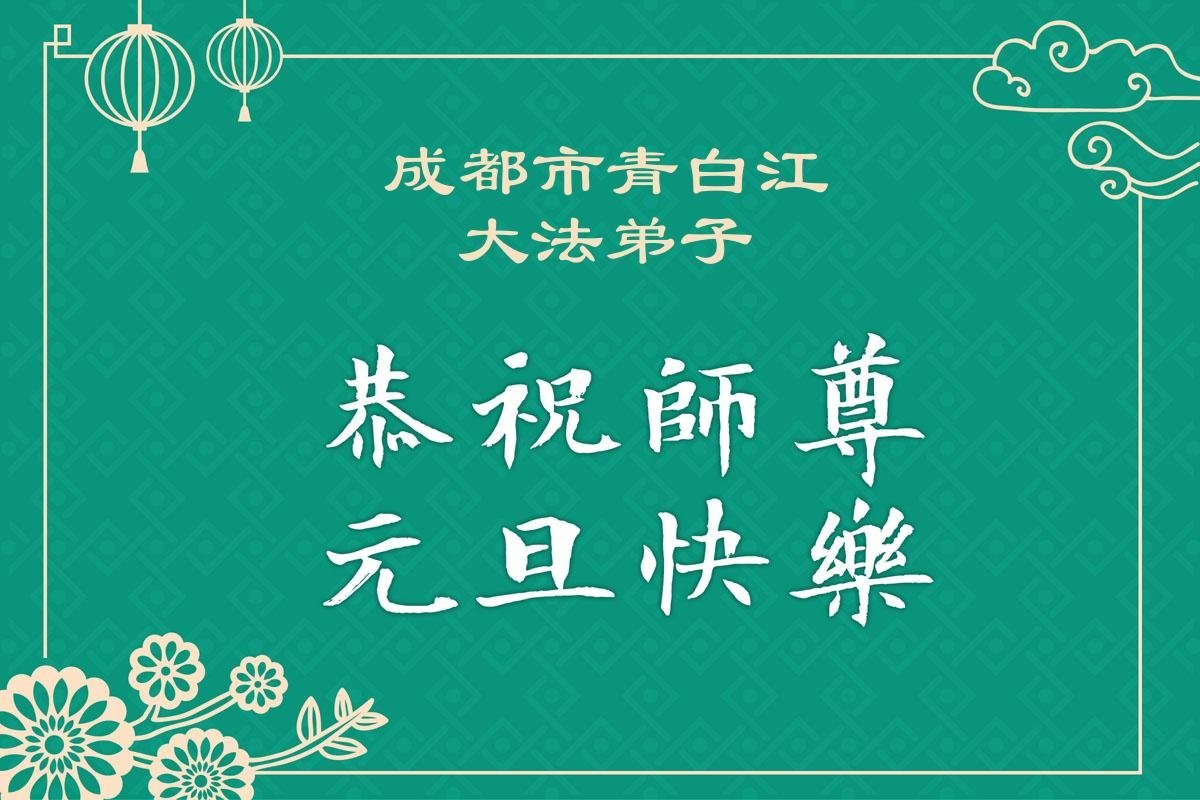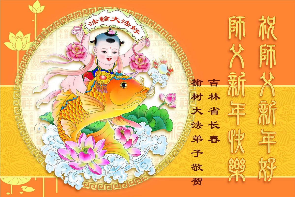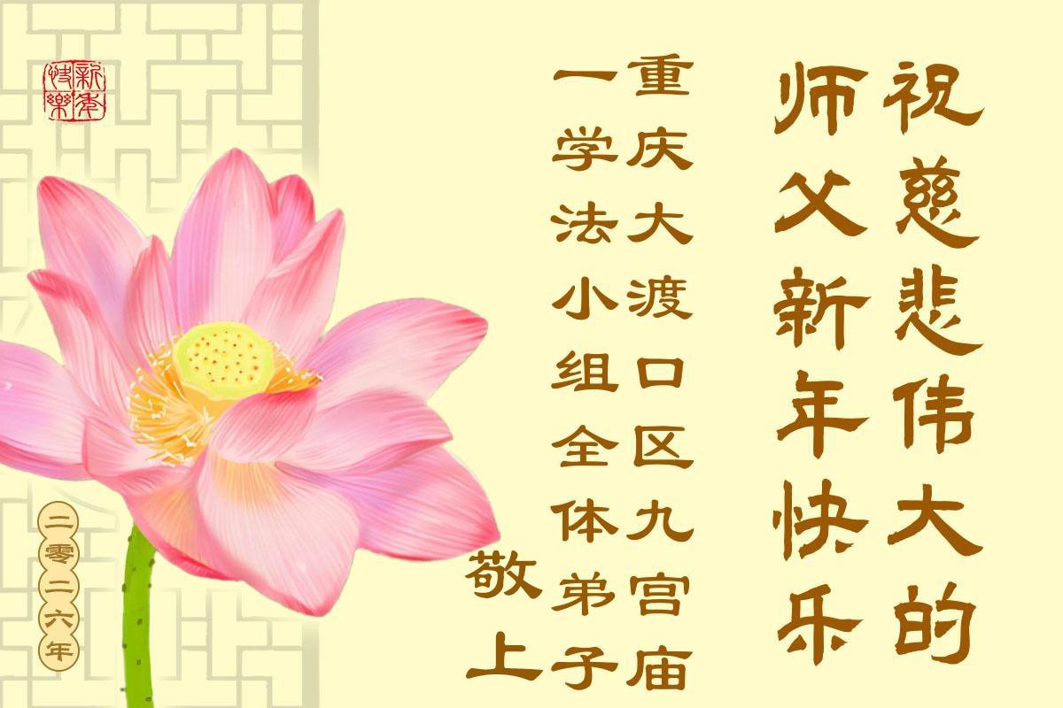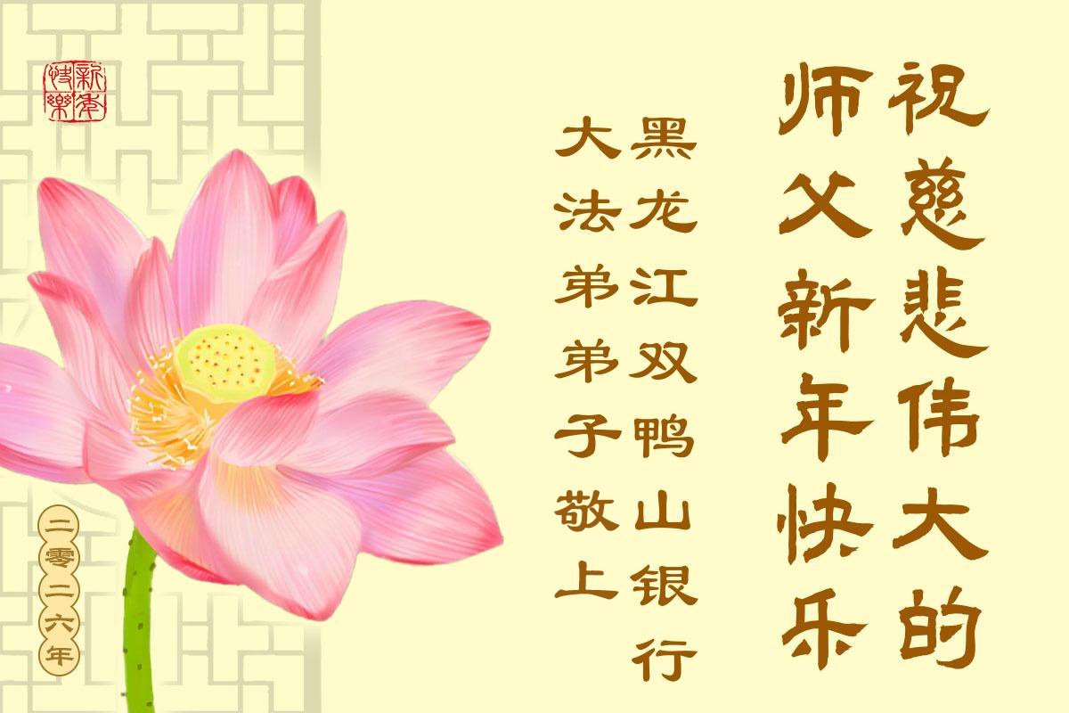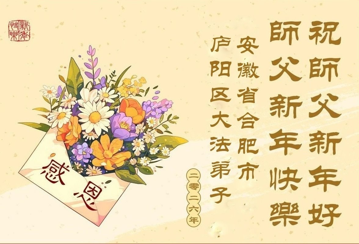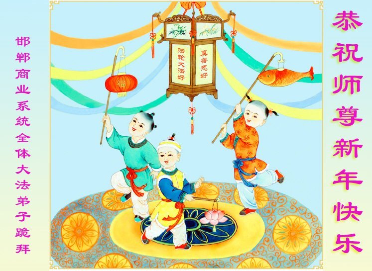 以下是部份来自中国各省、市、地区的学法炼功小组、讲真相小组、资料点大法弟子们敬致师尊的新年贺词贺卡: