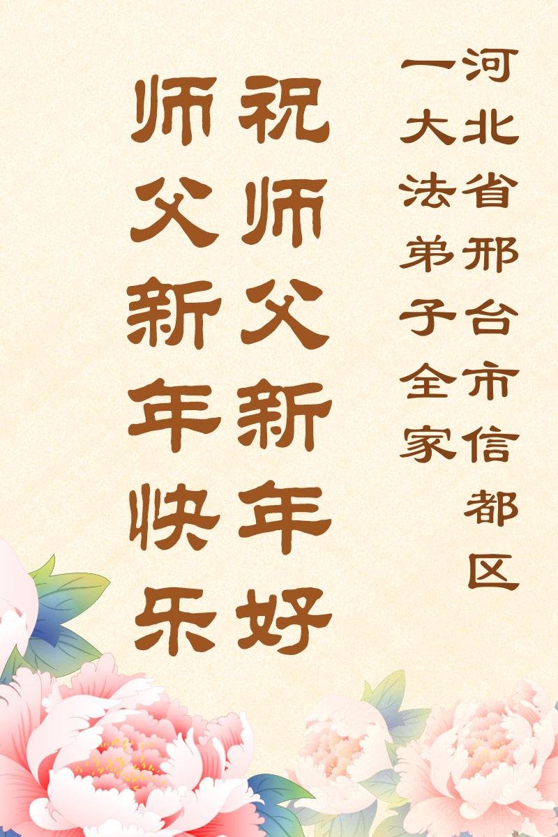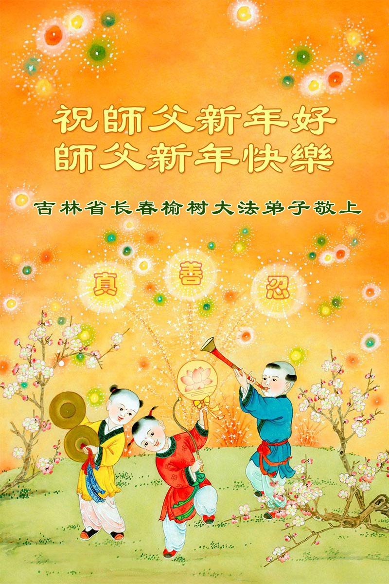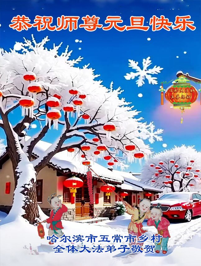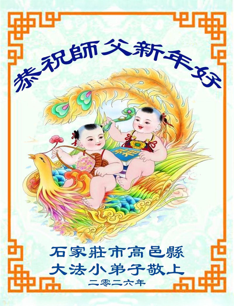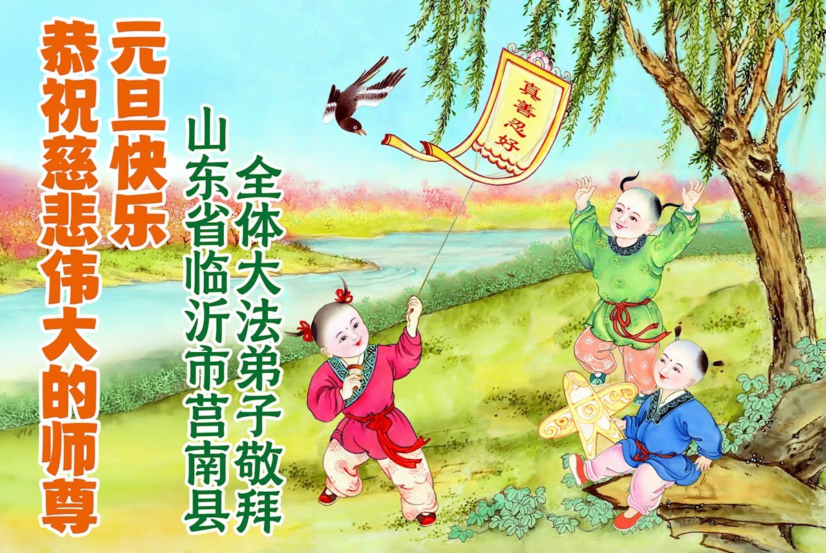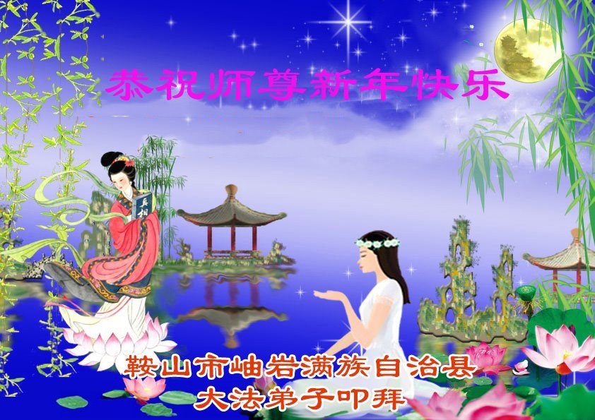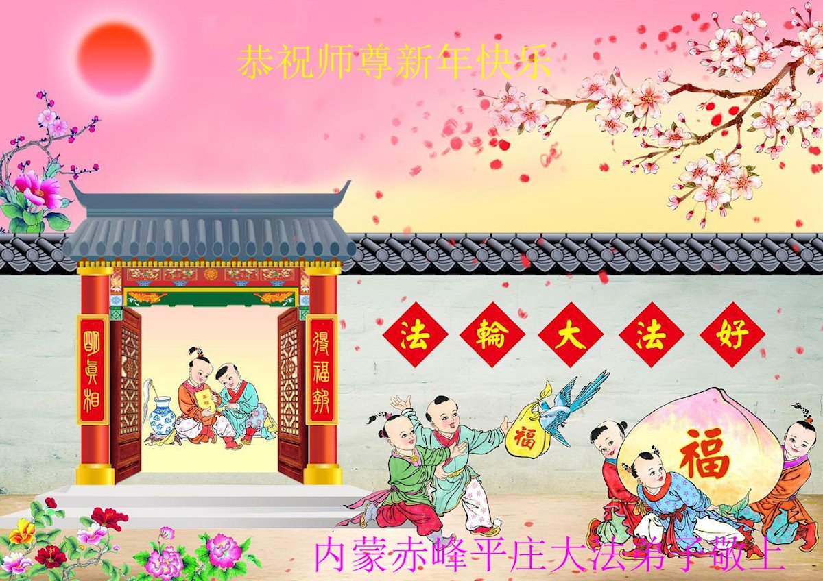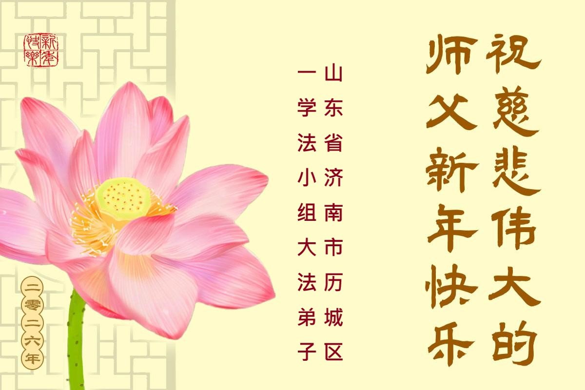 以下是部份来自中国各省、市、地区的学法炼功小组、讲真相小组、资料点大法弟子们敬致师尊的新年贺词贺卡: