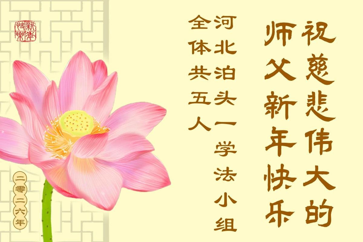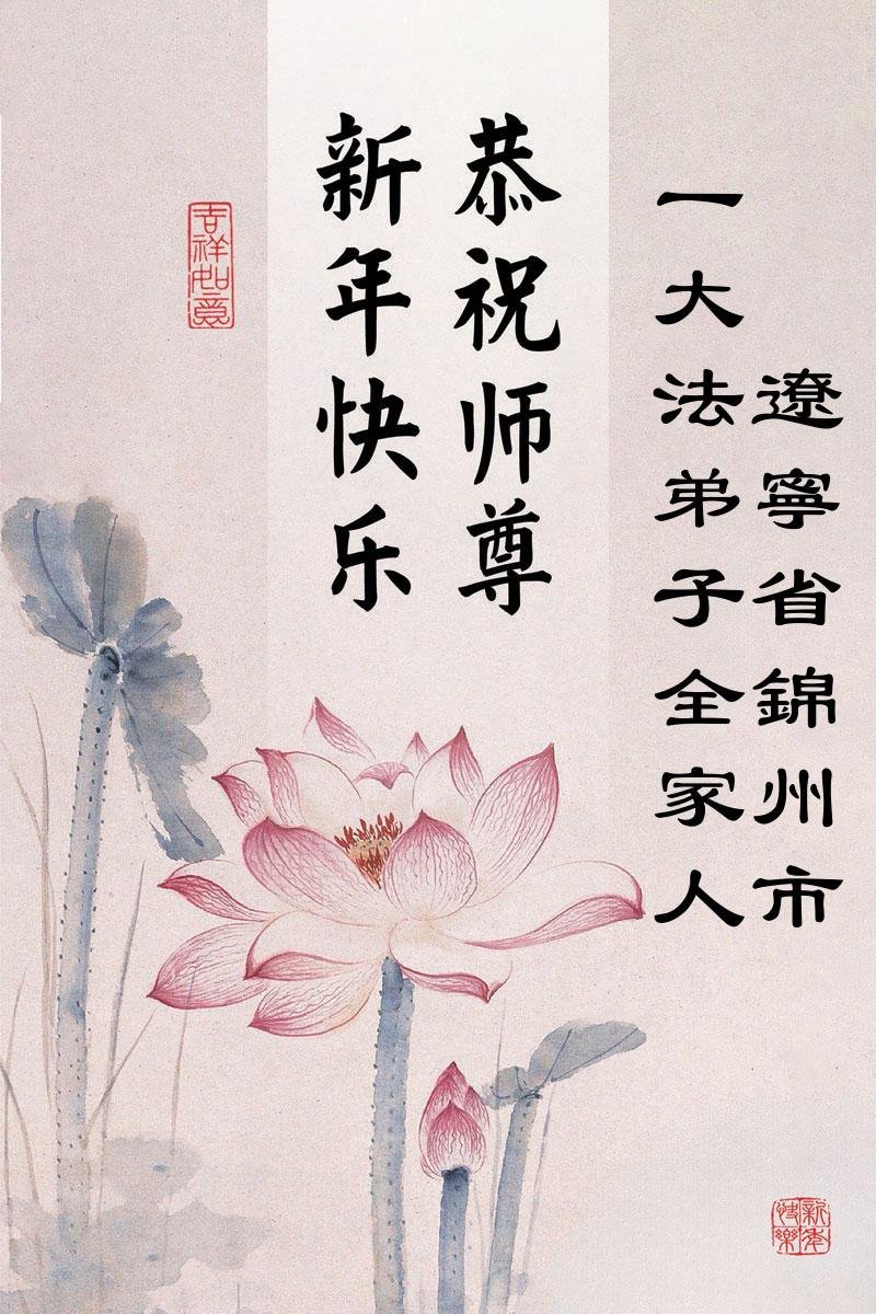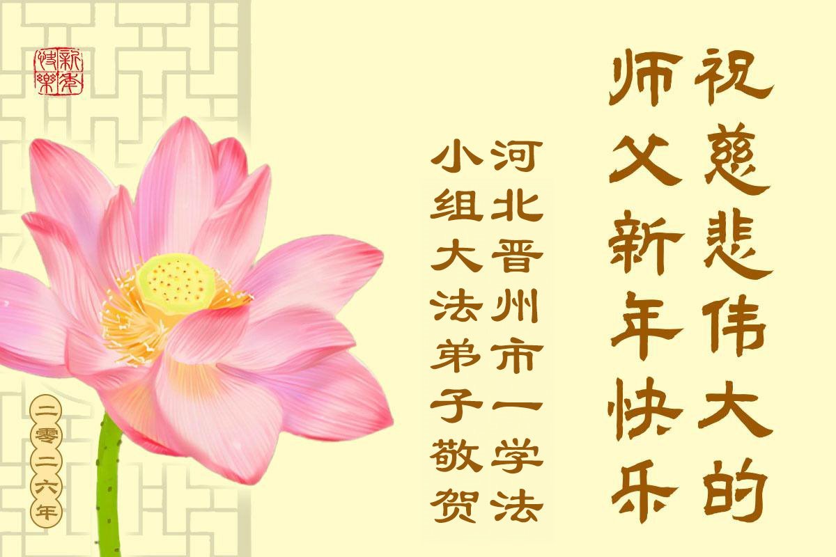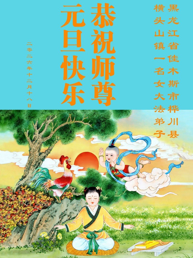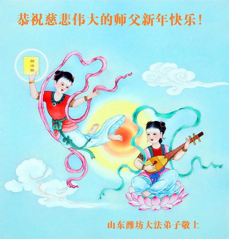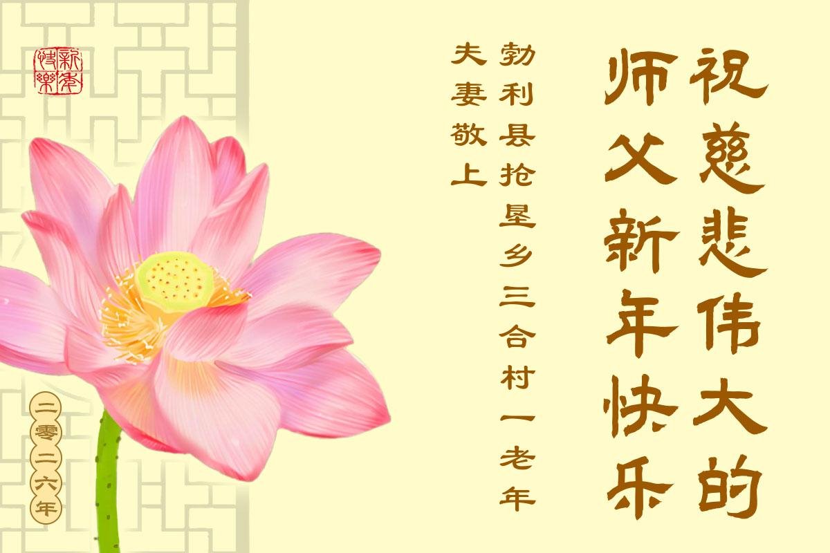 以下是部份来自中国各省、市、地区的学法炼功小组、讲真相小组、资料点大法弟子们敬致师尊的新年贺词贺卡: