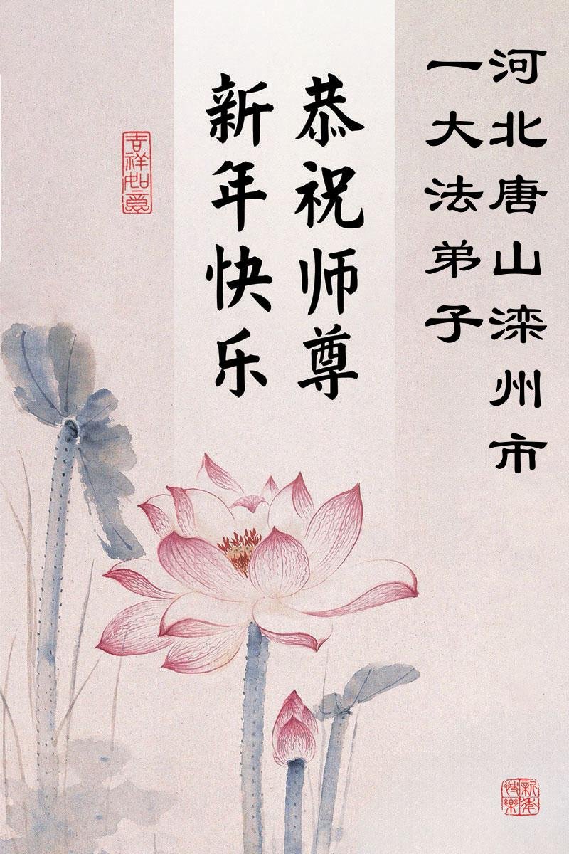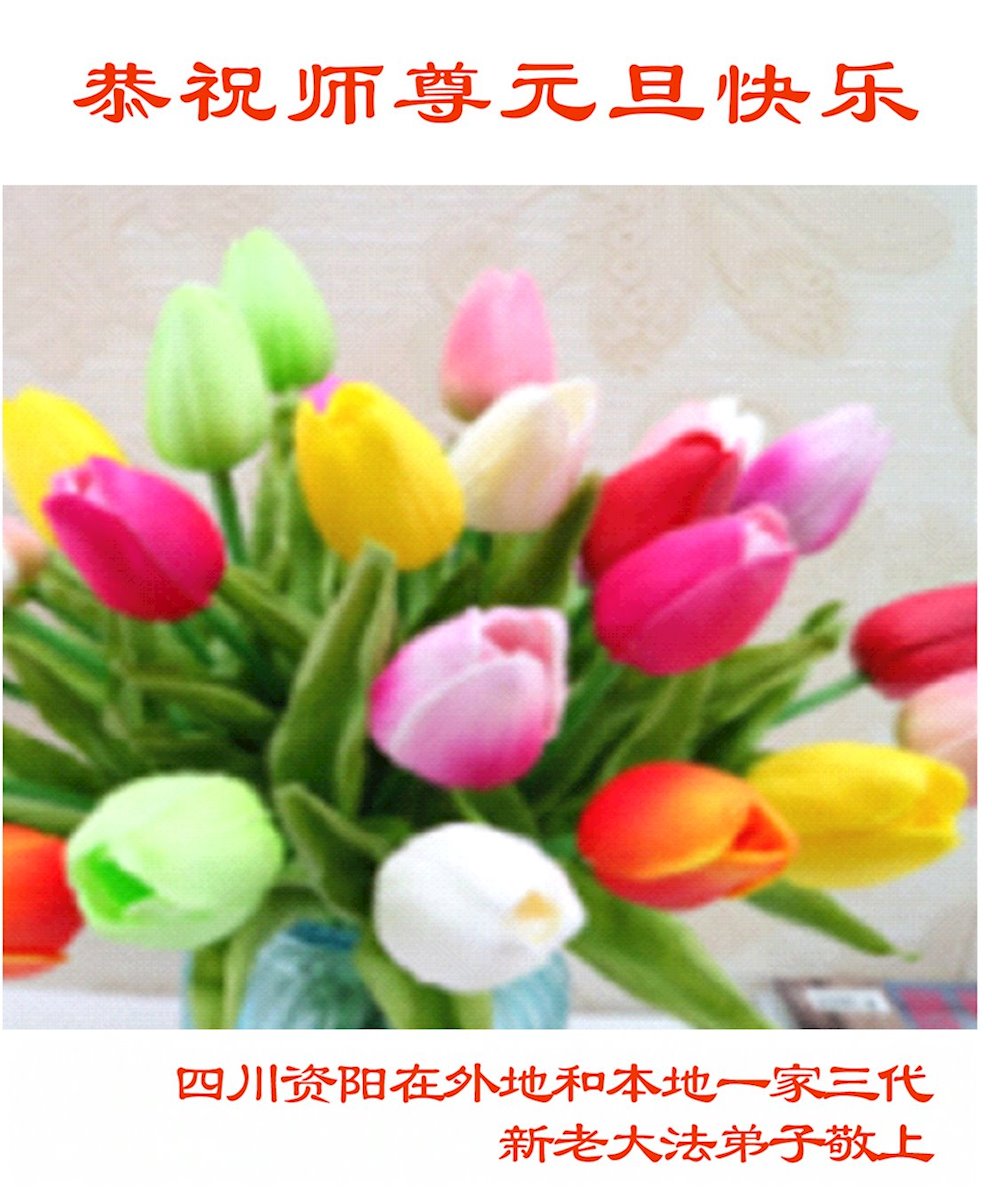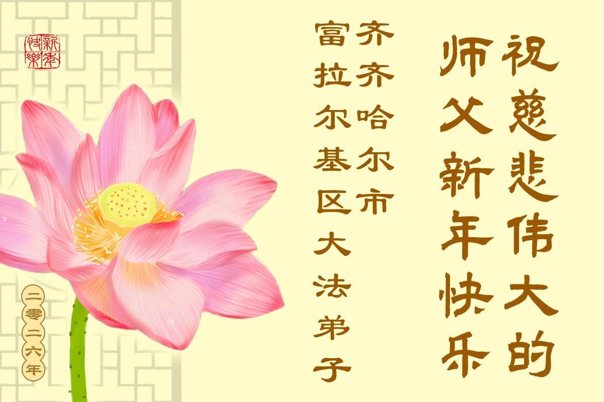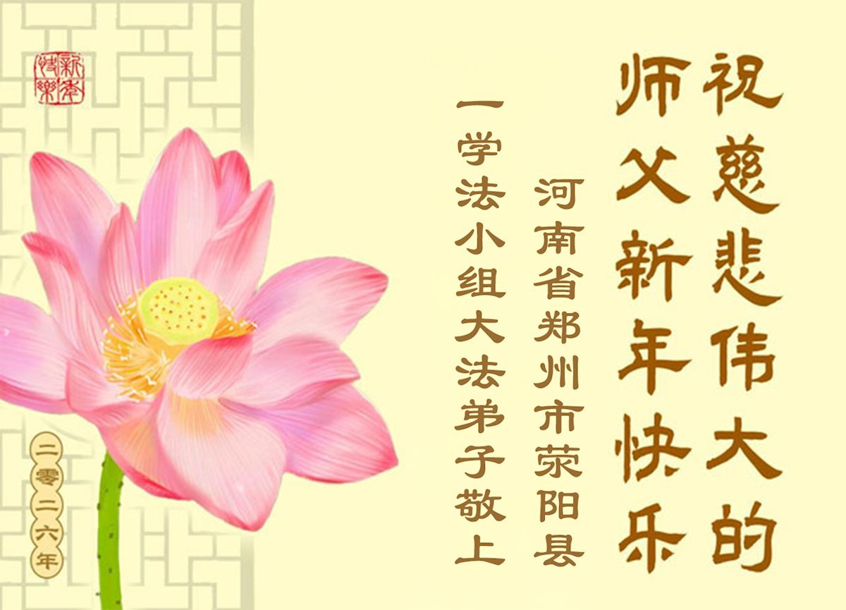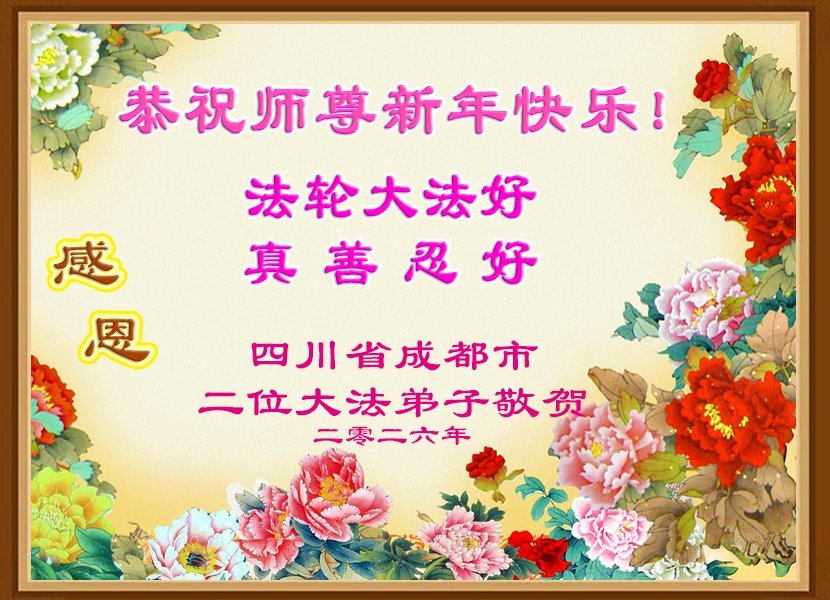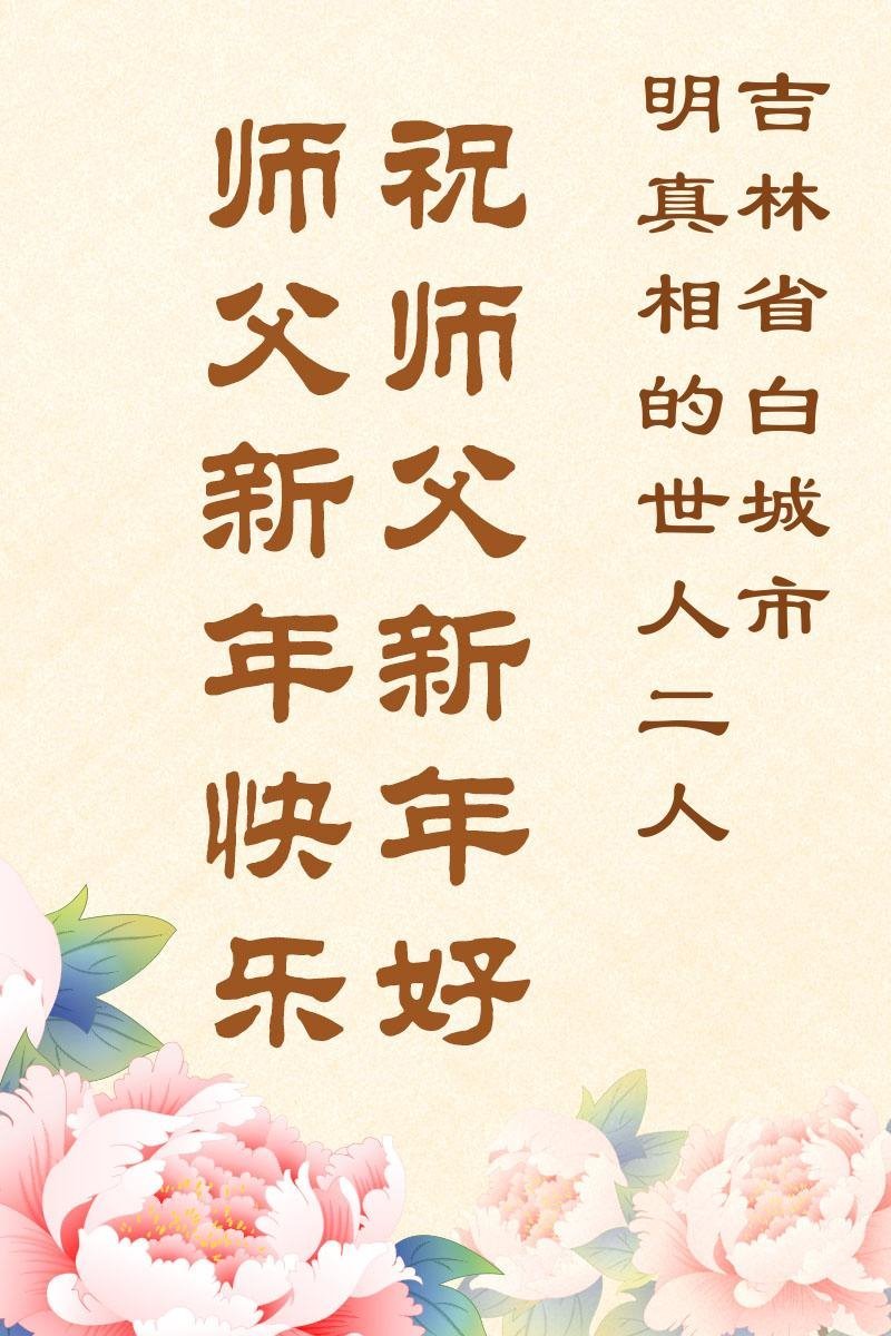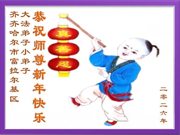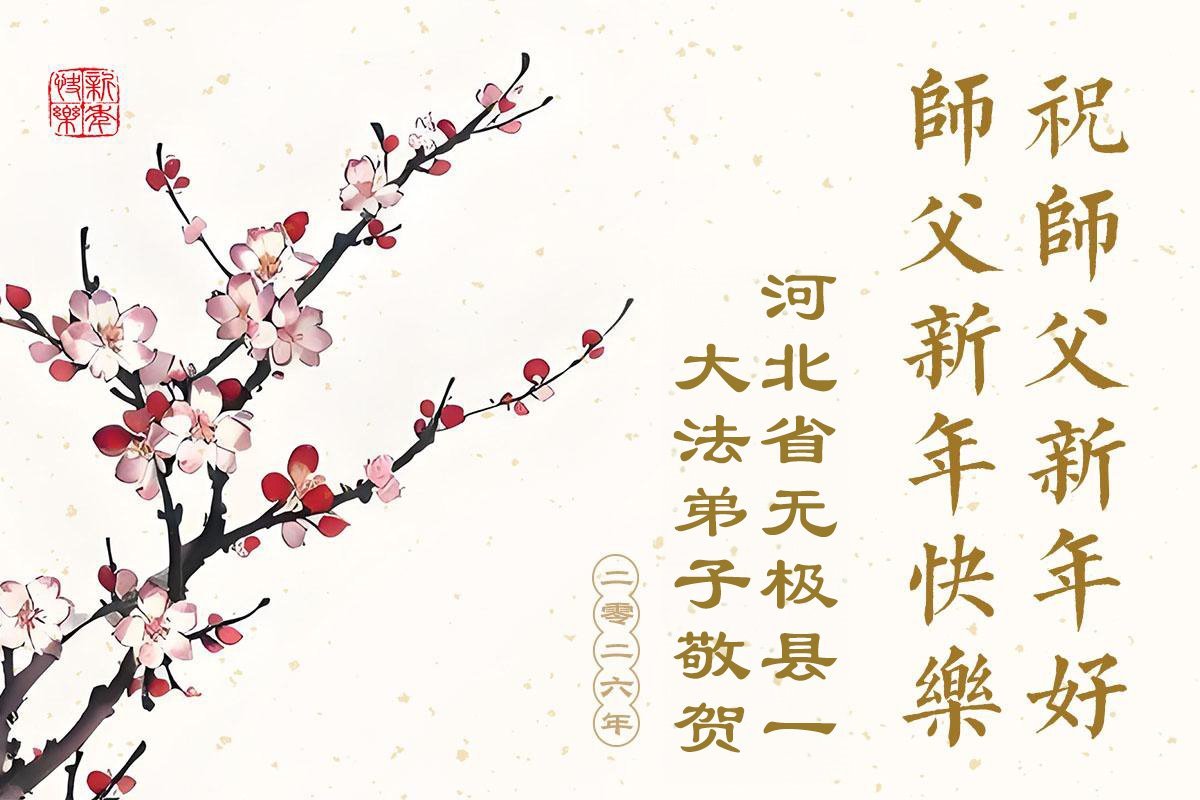 以下是部份来自中国各省、市、地区的学法炼功小组、讲真相小组、资料点大法弟子们敬致师尊的新年贺词贺卡: