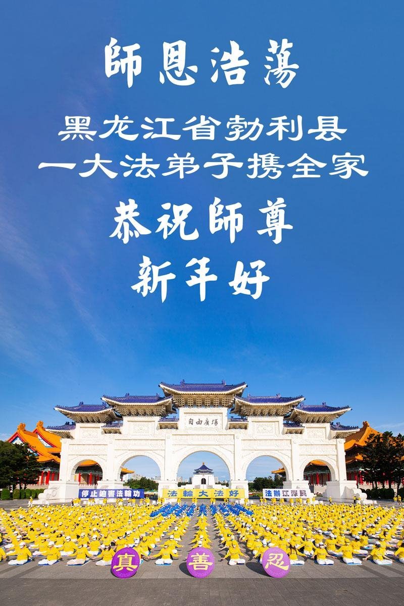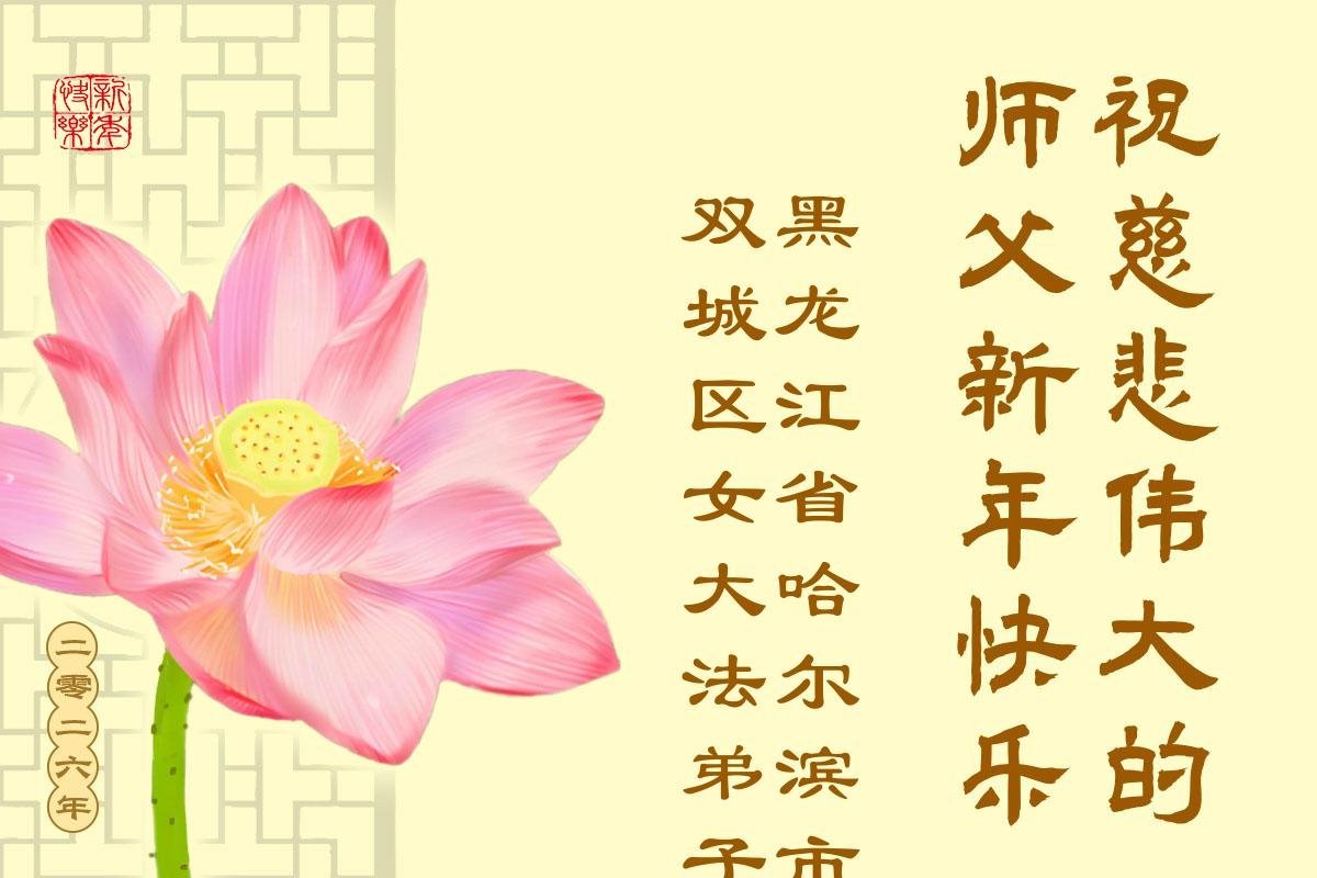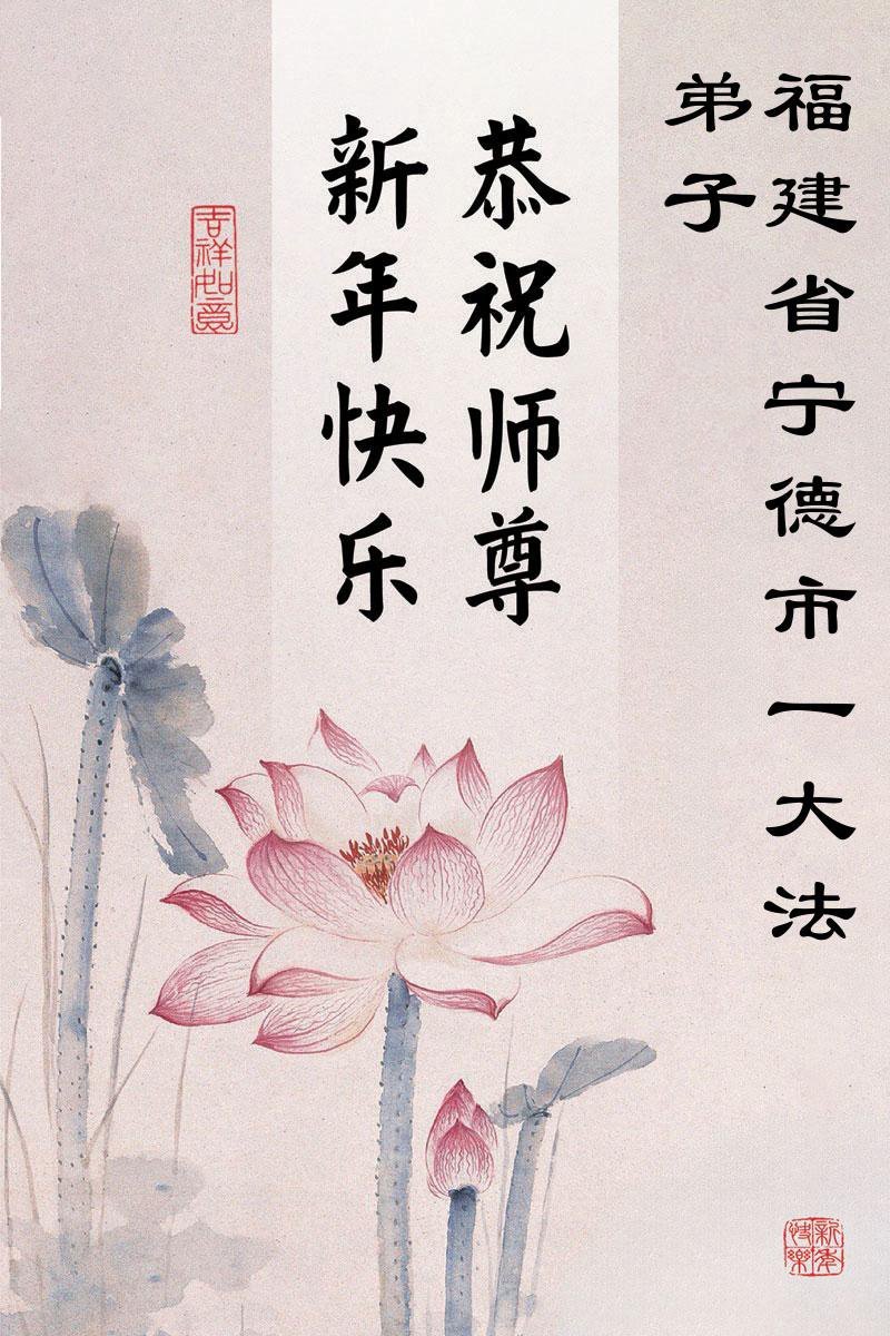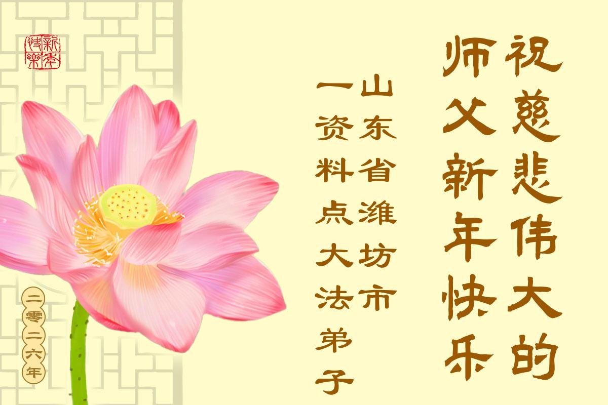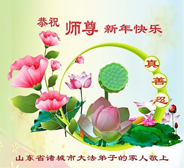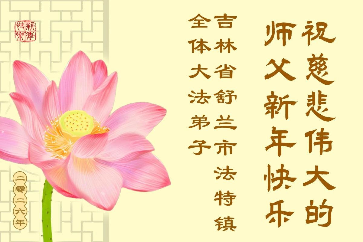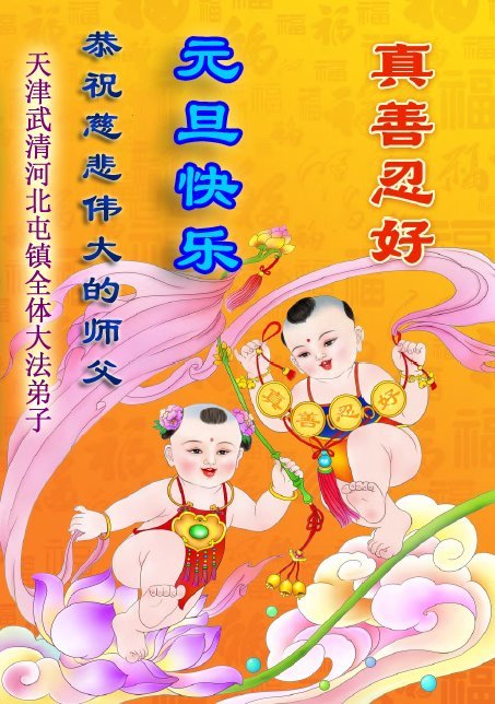 以下是部份来自中国各省、市、地区的学法炼功小组、讲真相小组、资料点大法弟子们敬致师尊的新年贺词贺卡: