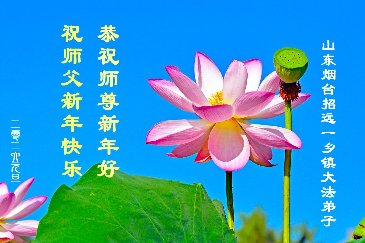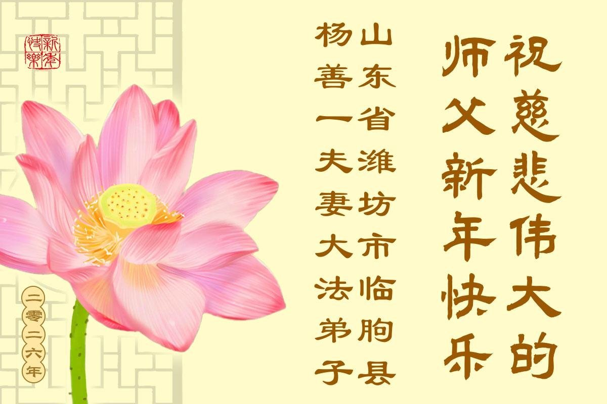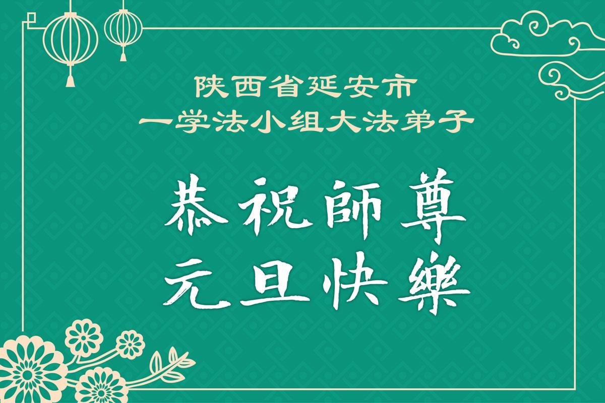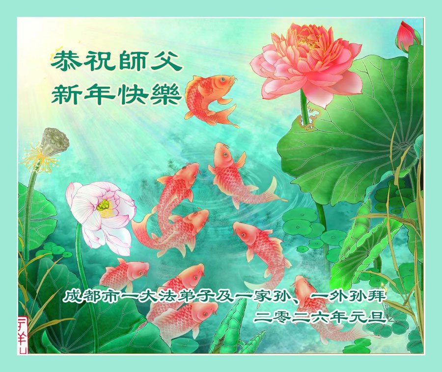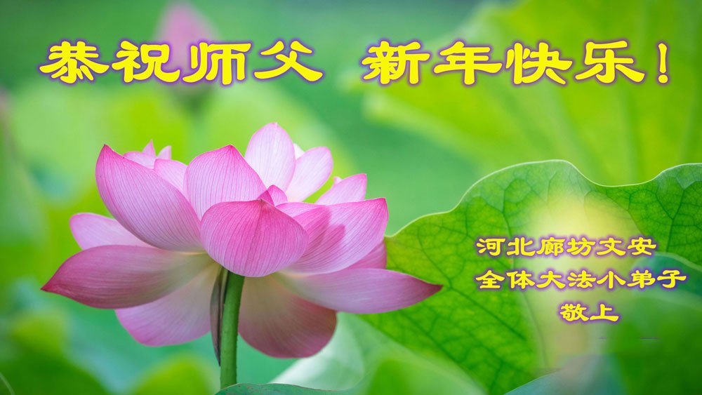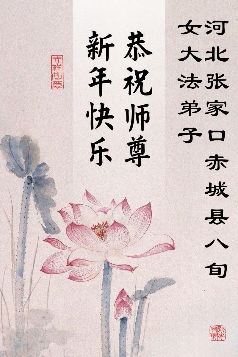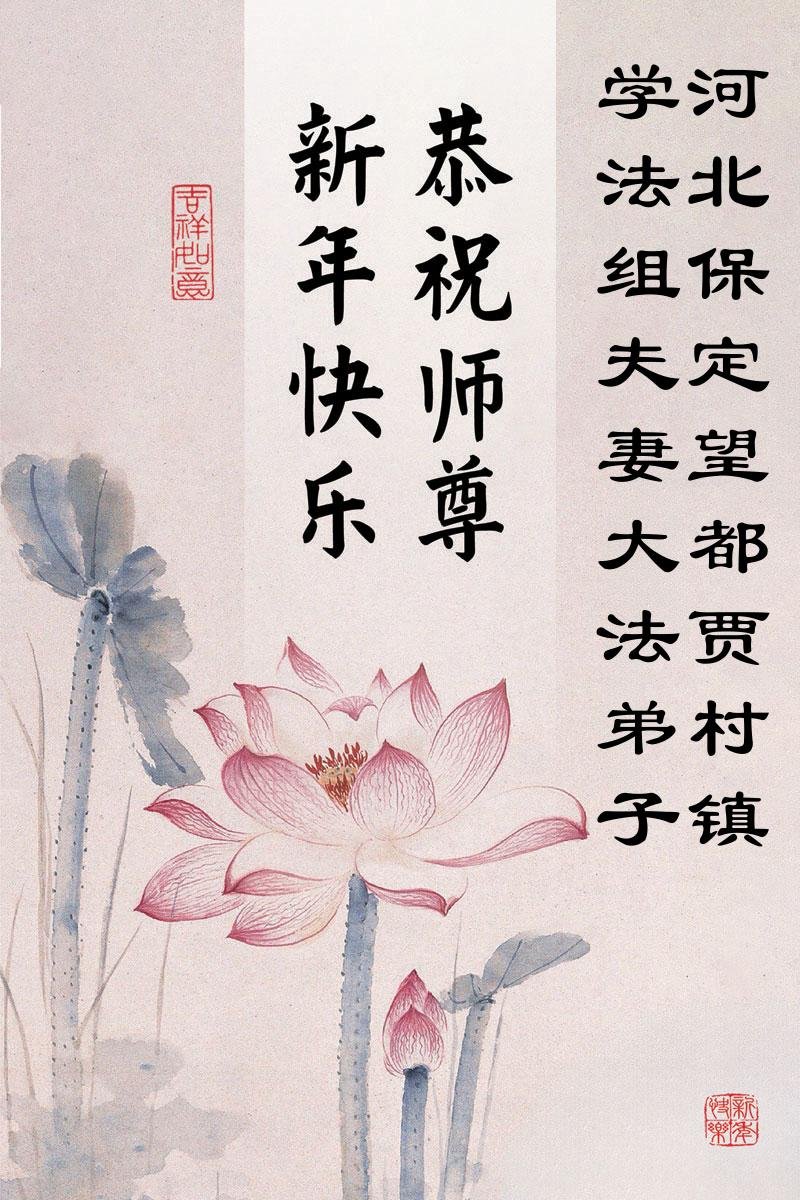 以下是部份来自中国各省、市、地区的学法炼功小组、讲真相小组、资料点大法弟子们敬致师尊的新年贺词贺卡: