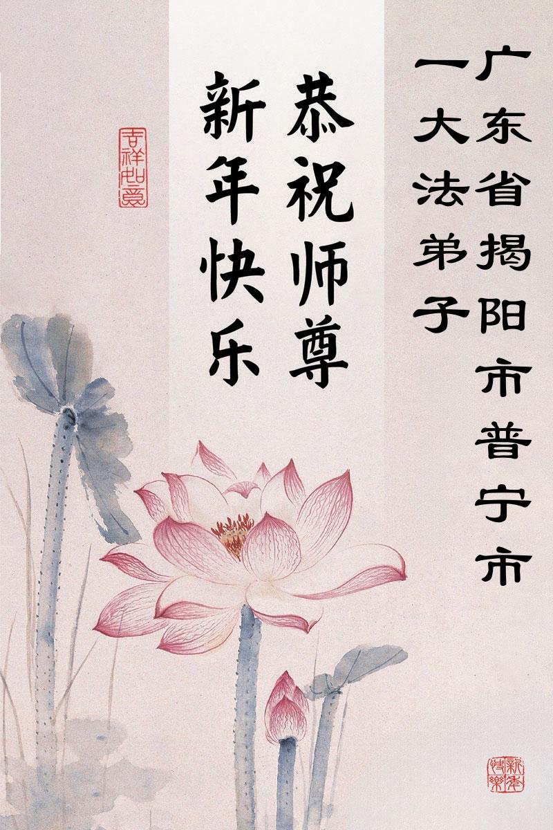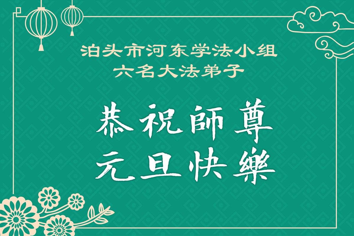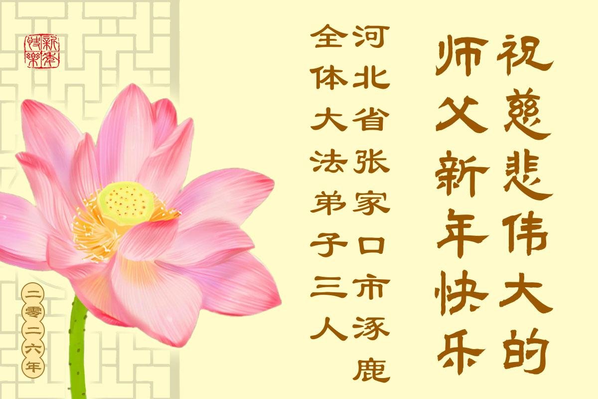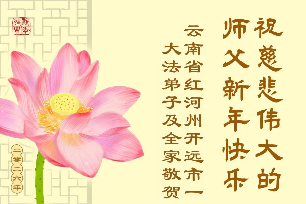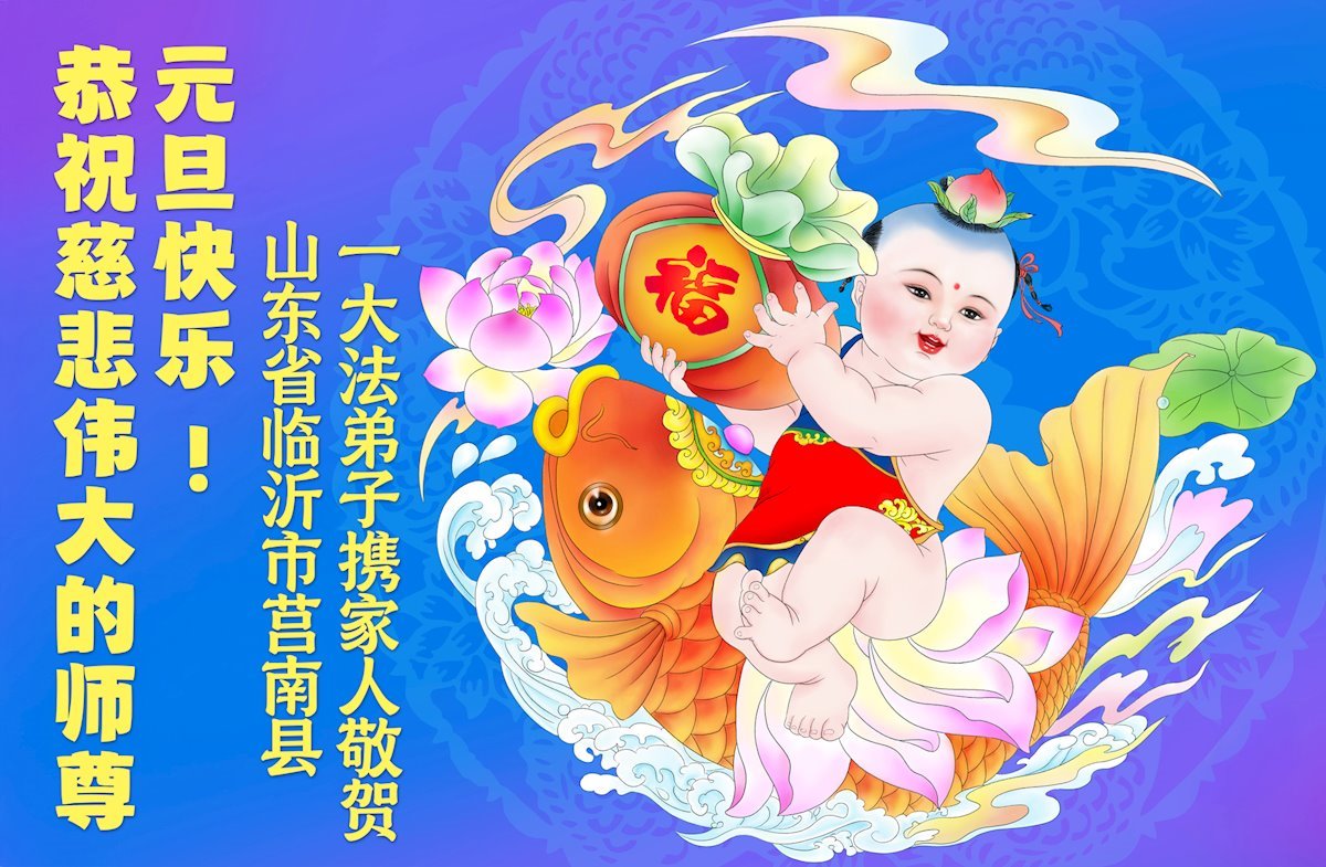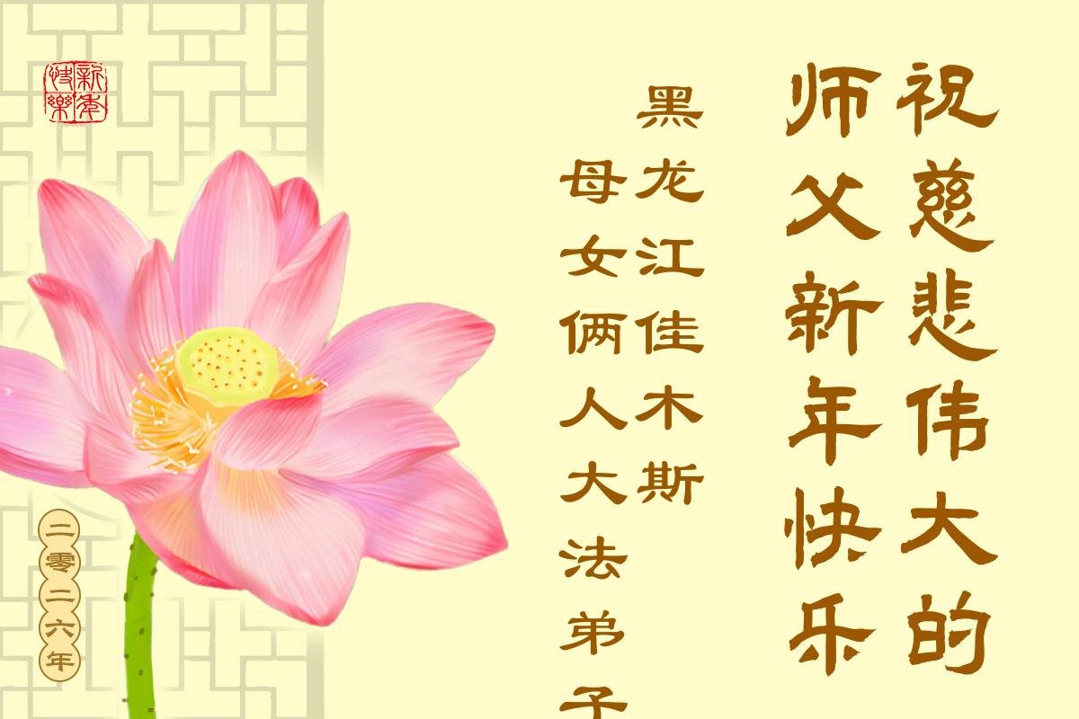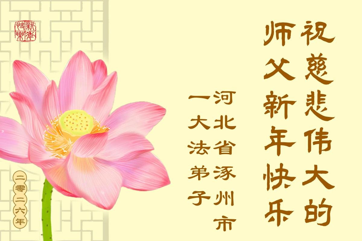 以下是部份来自中国各省、市、地区的学法炼功小组、讲真相小组、资料点大法弟子们敬致师尊的新年贺词贺卡: