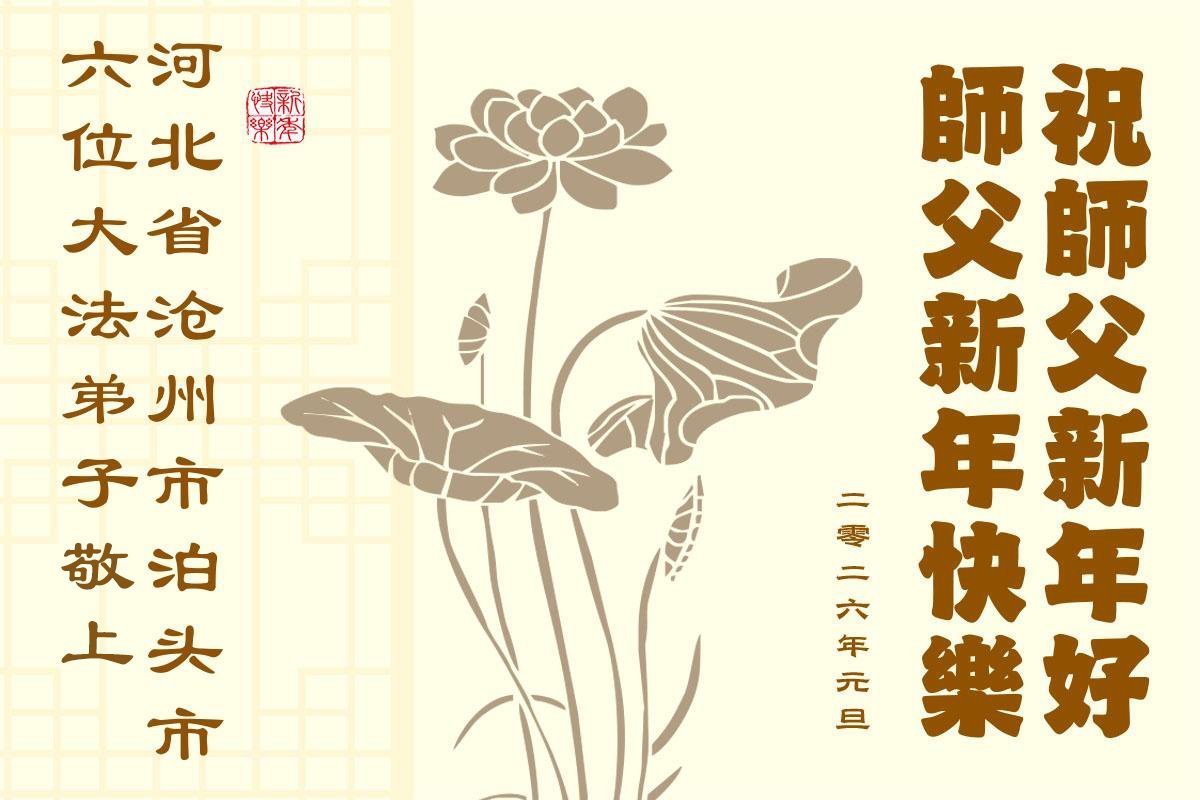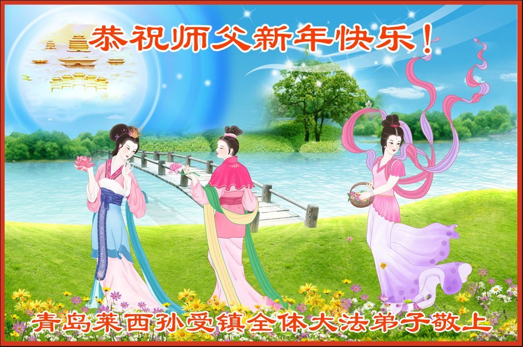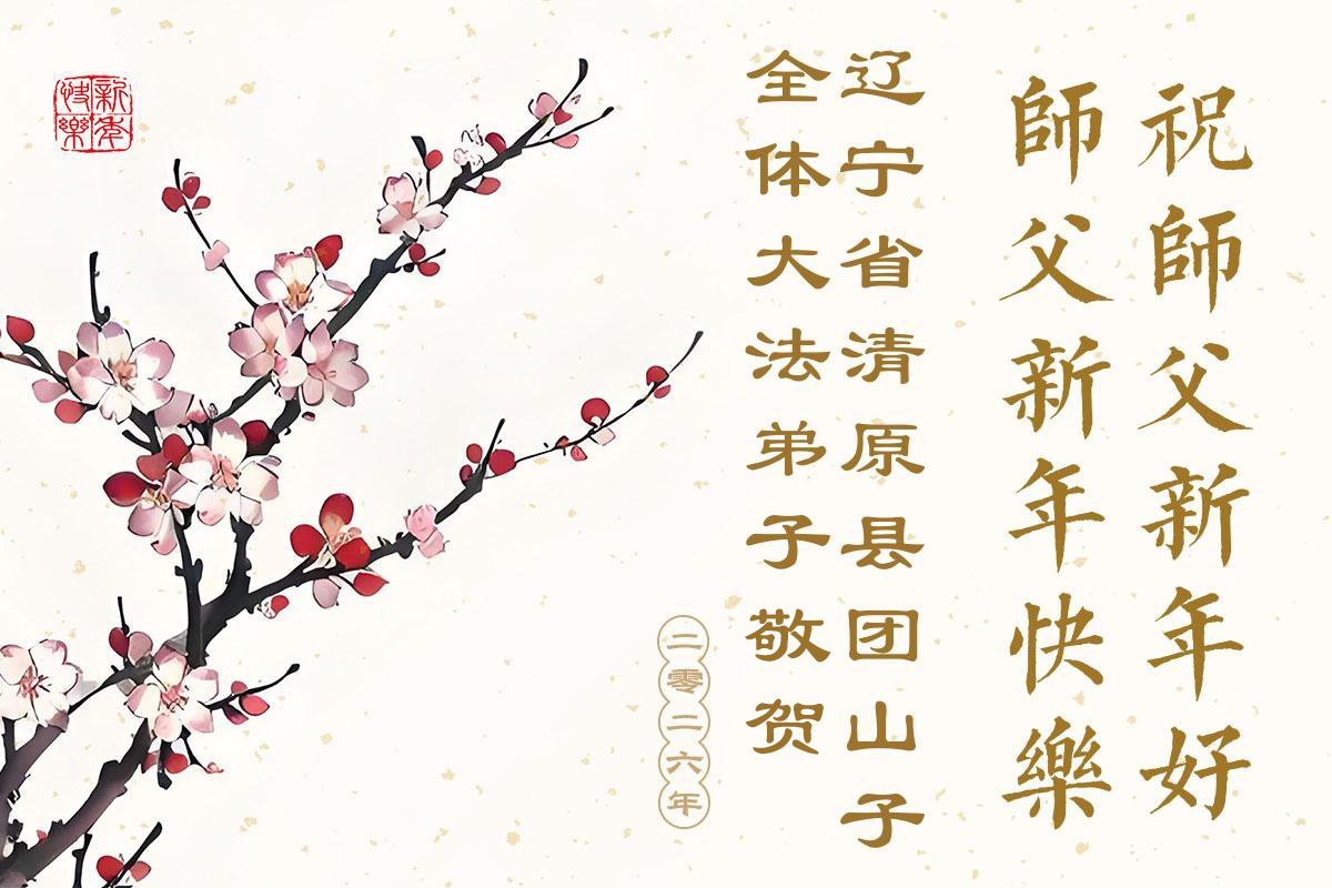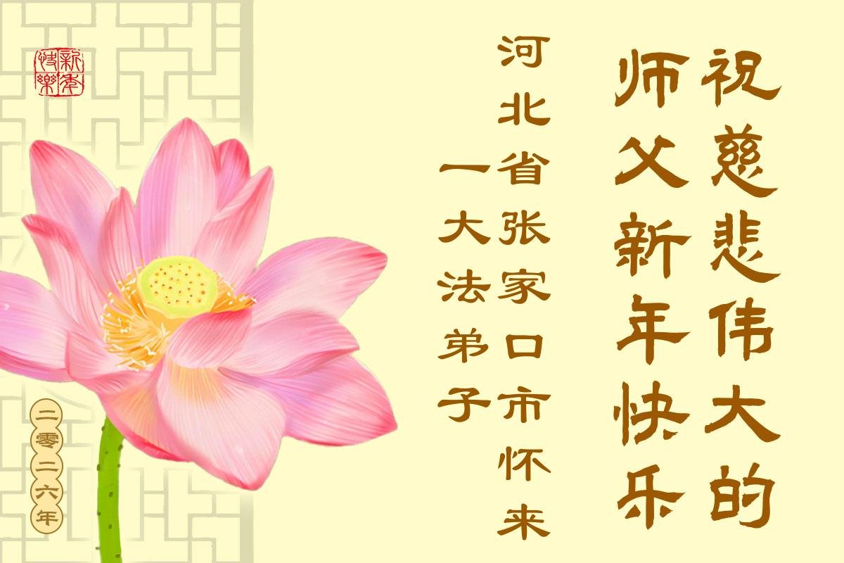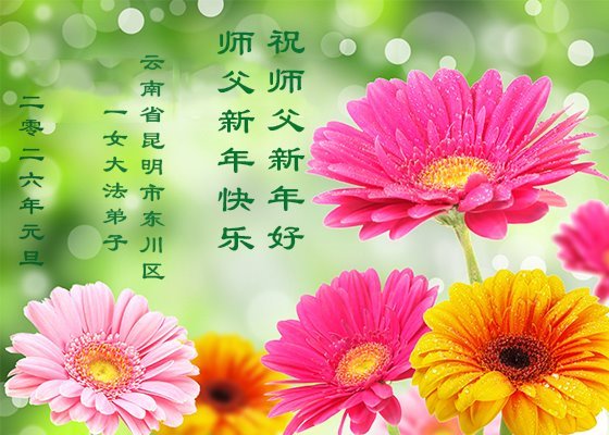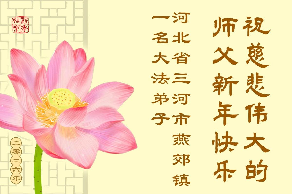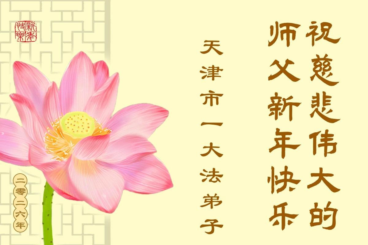 以下是部份来自中国各省、市、地区的学法炼功小组、讲真相小组、资料点大法弟子们敬致师尊的新年贺词贺卡: