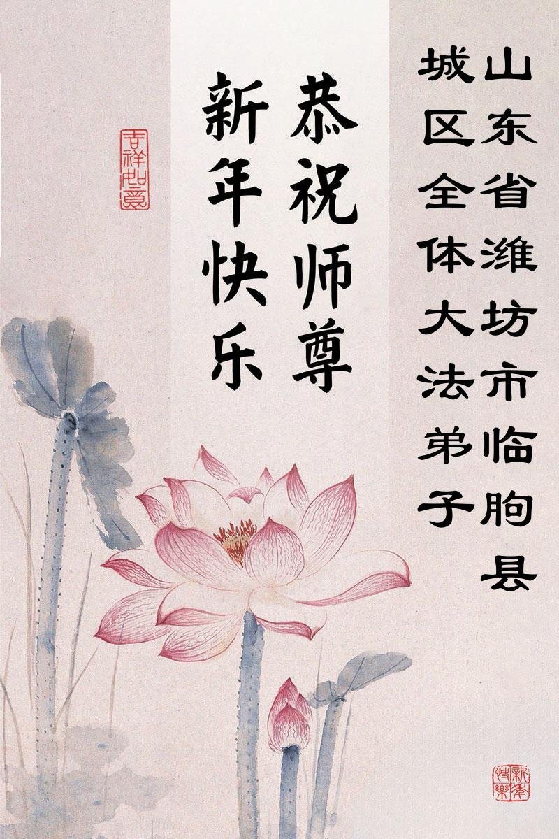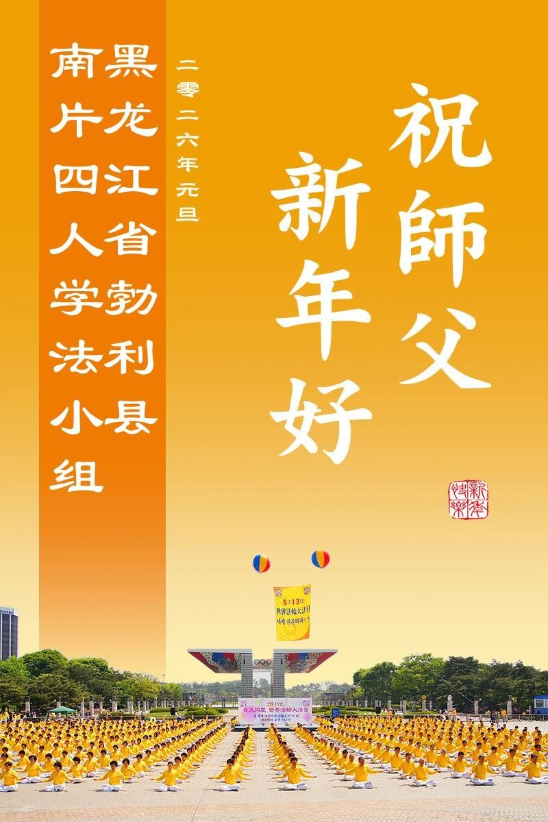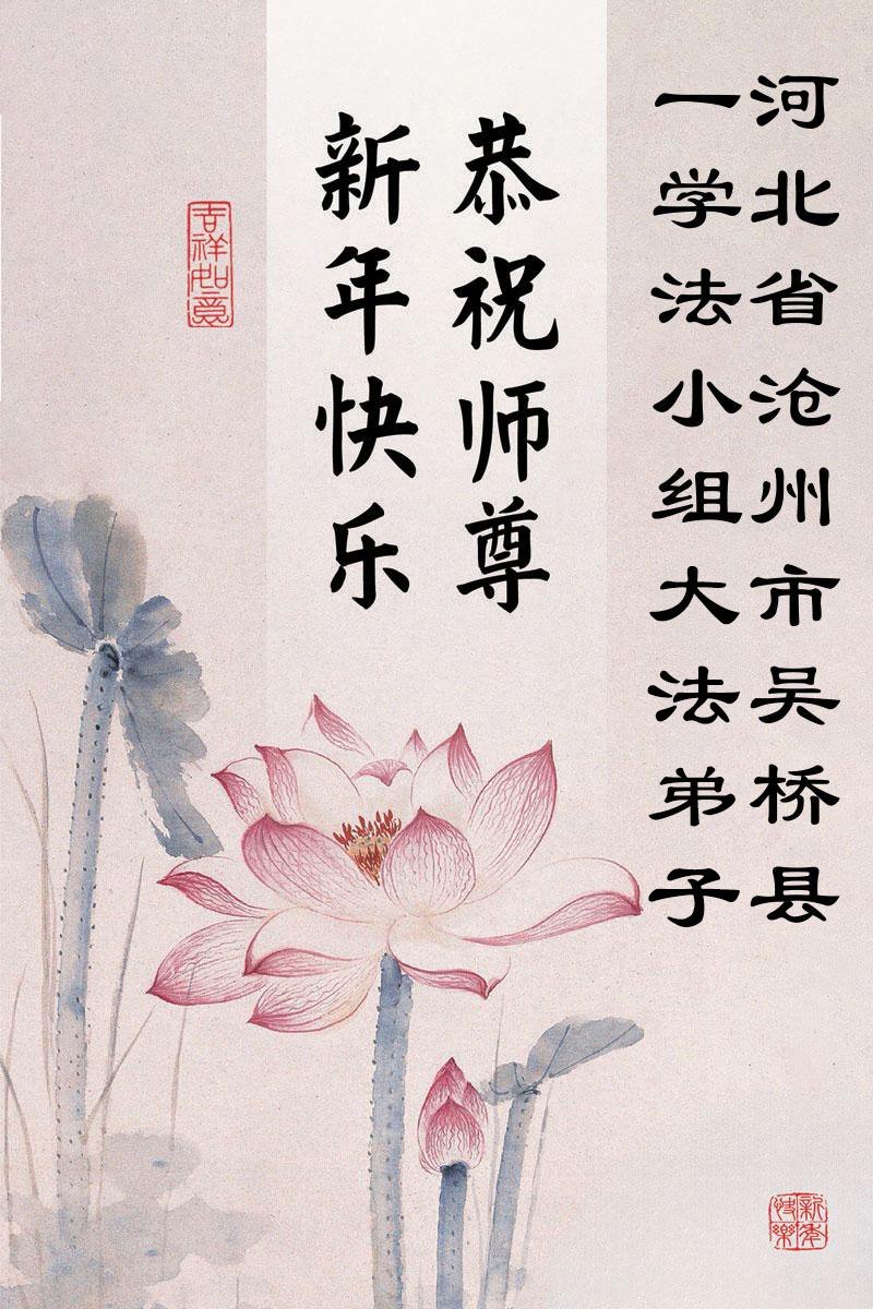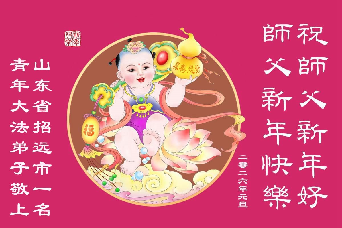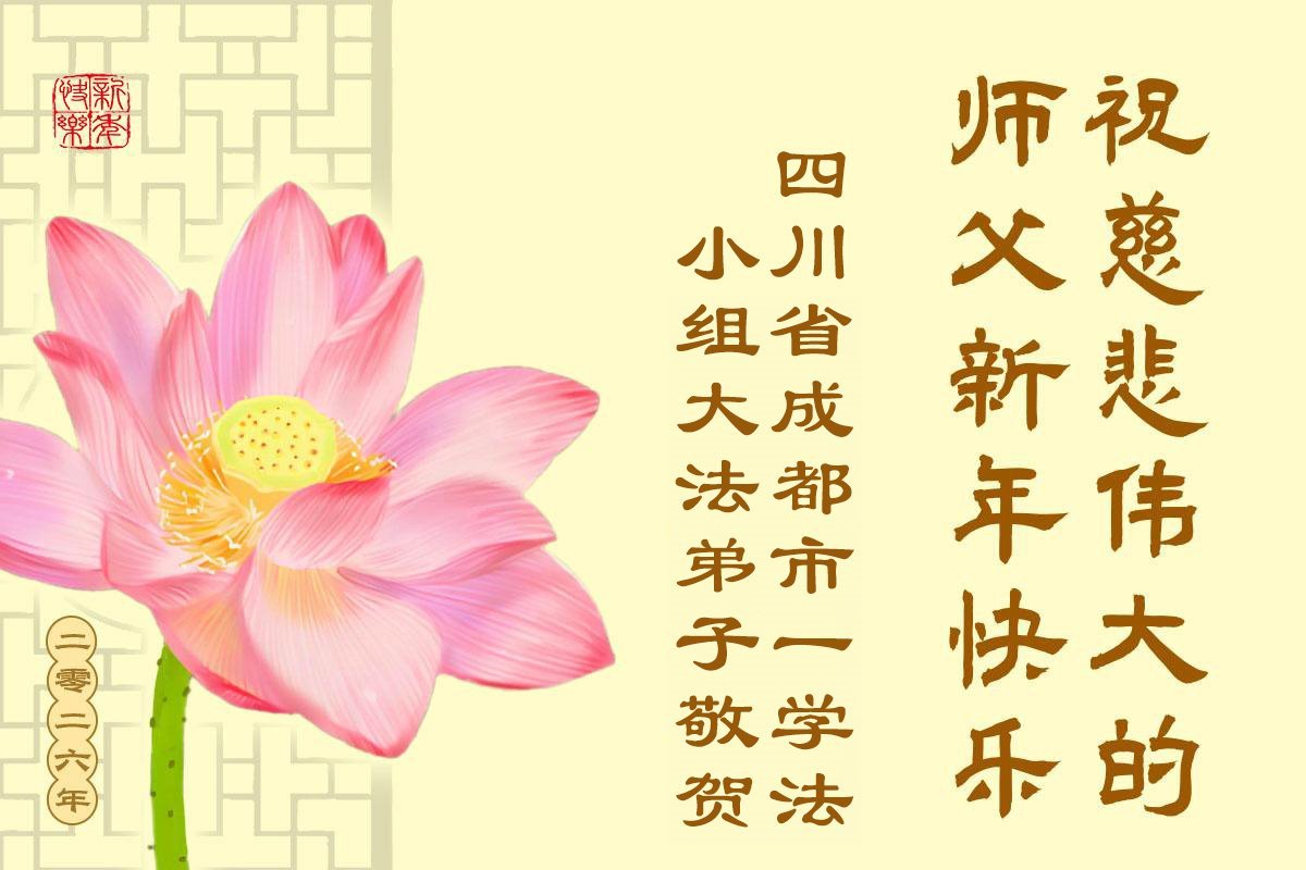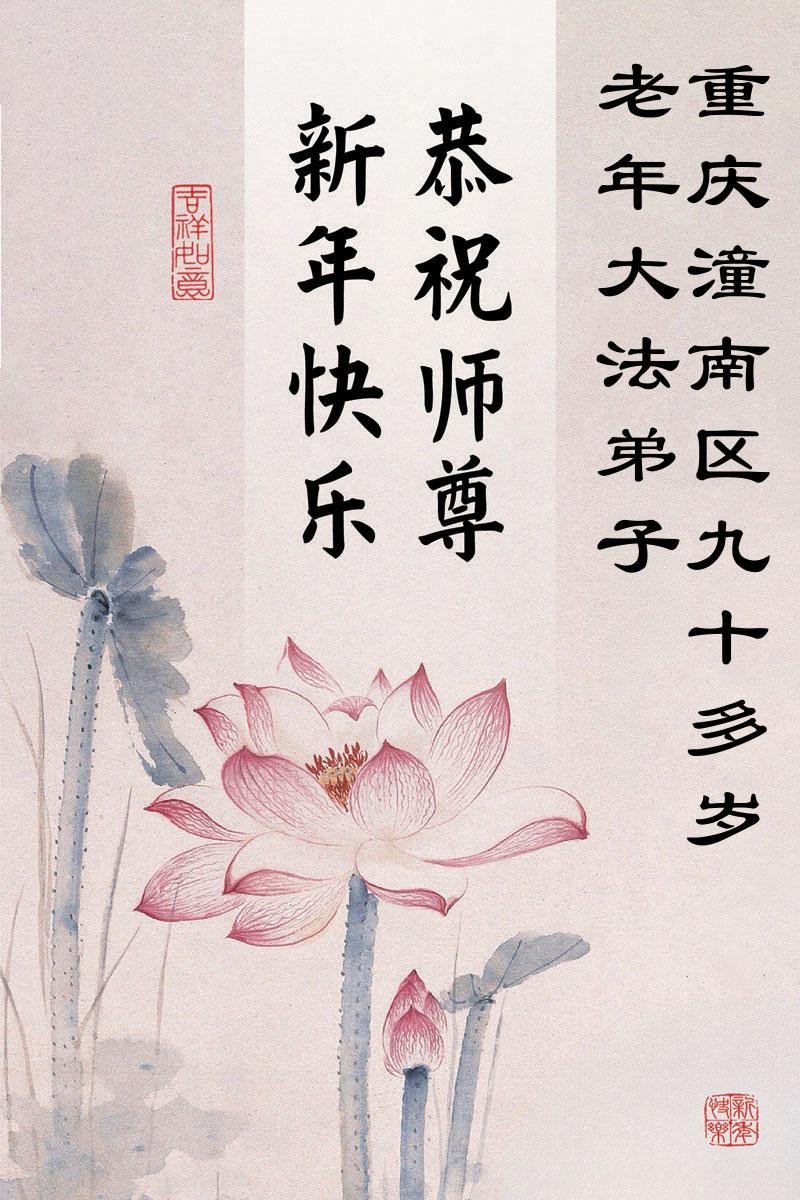 以下是部份来自中国各省、市、地区的学法炼功小组、讲真相小组、资料点大法弟子们敬致师尊的新年贺词贺卡: