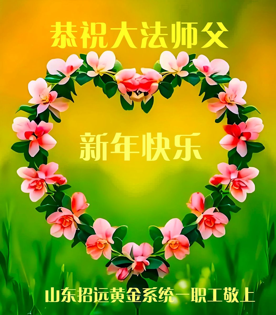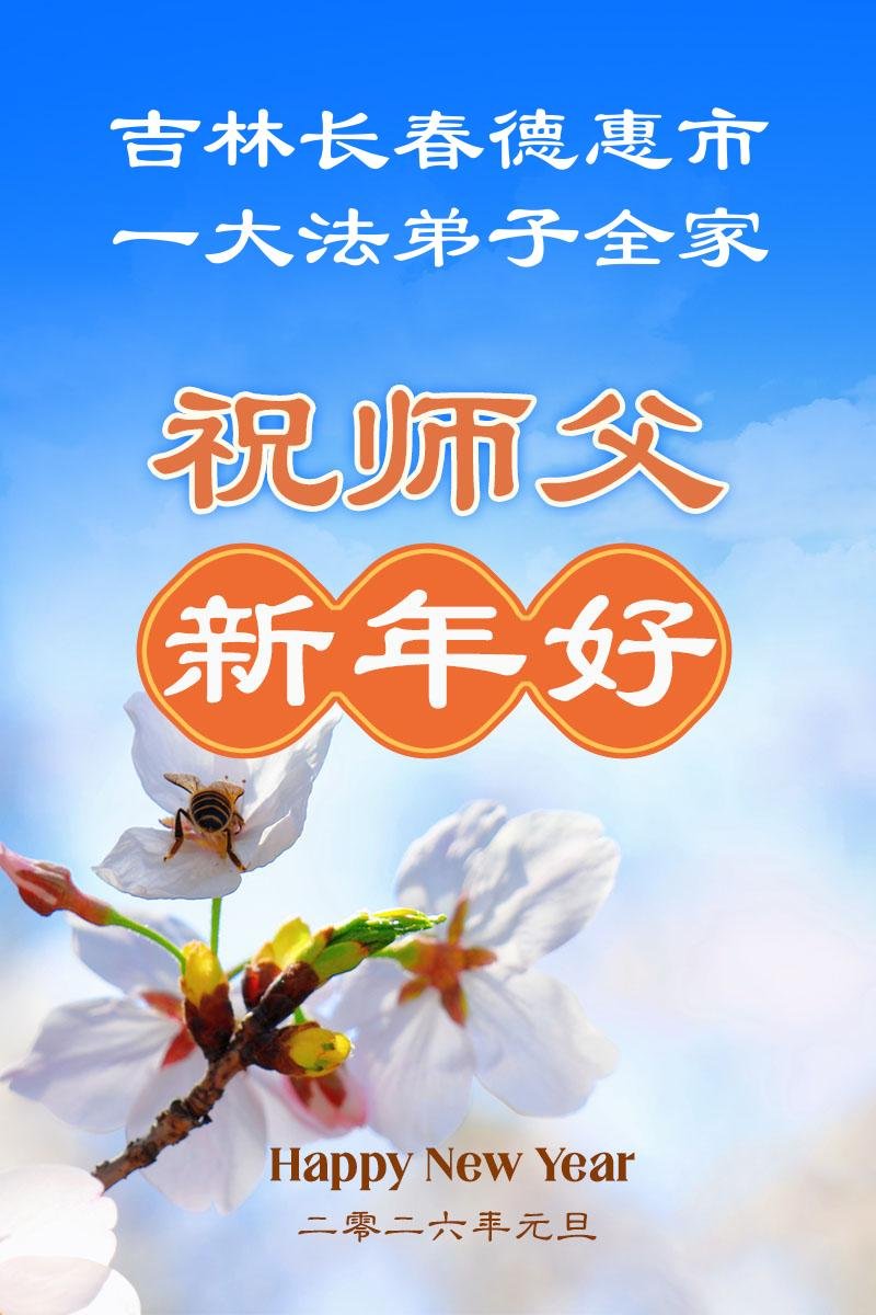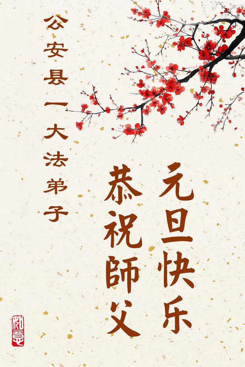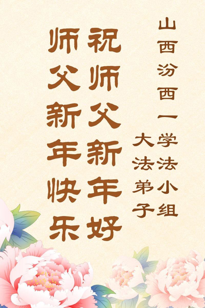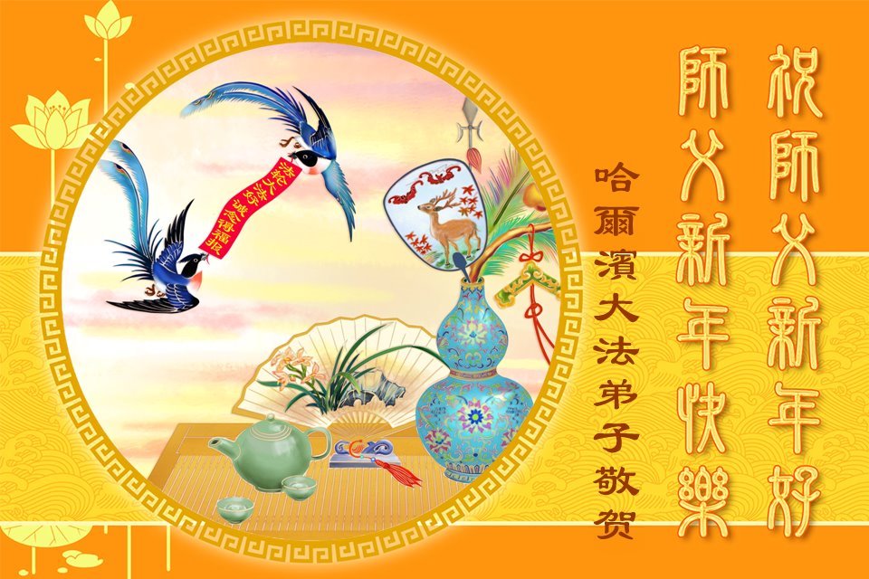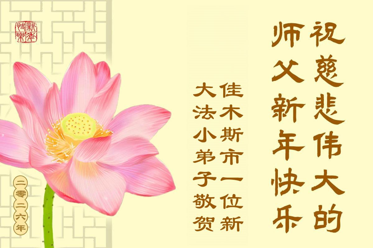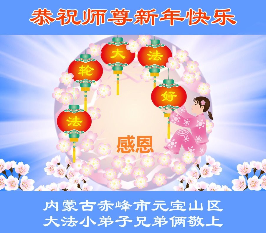 以下是部份来自中国各省、市、地区的学法炼功小组、讲真相小组、资料点大法弟子们敬致师尊的新年贺词贺卡: