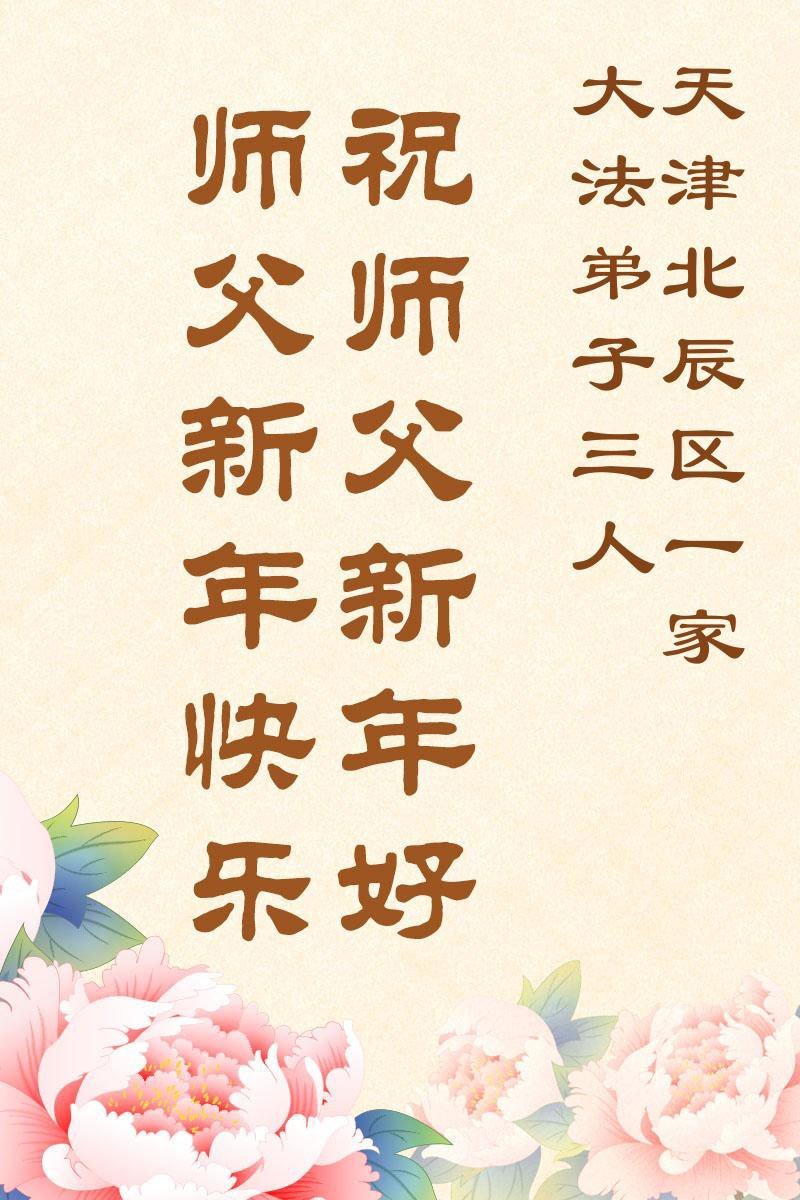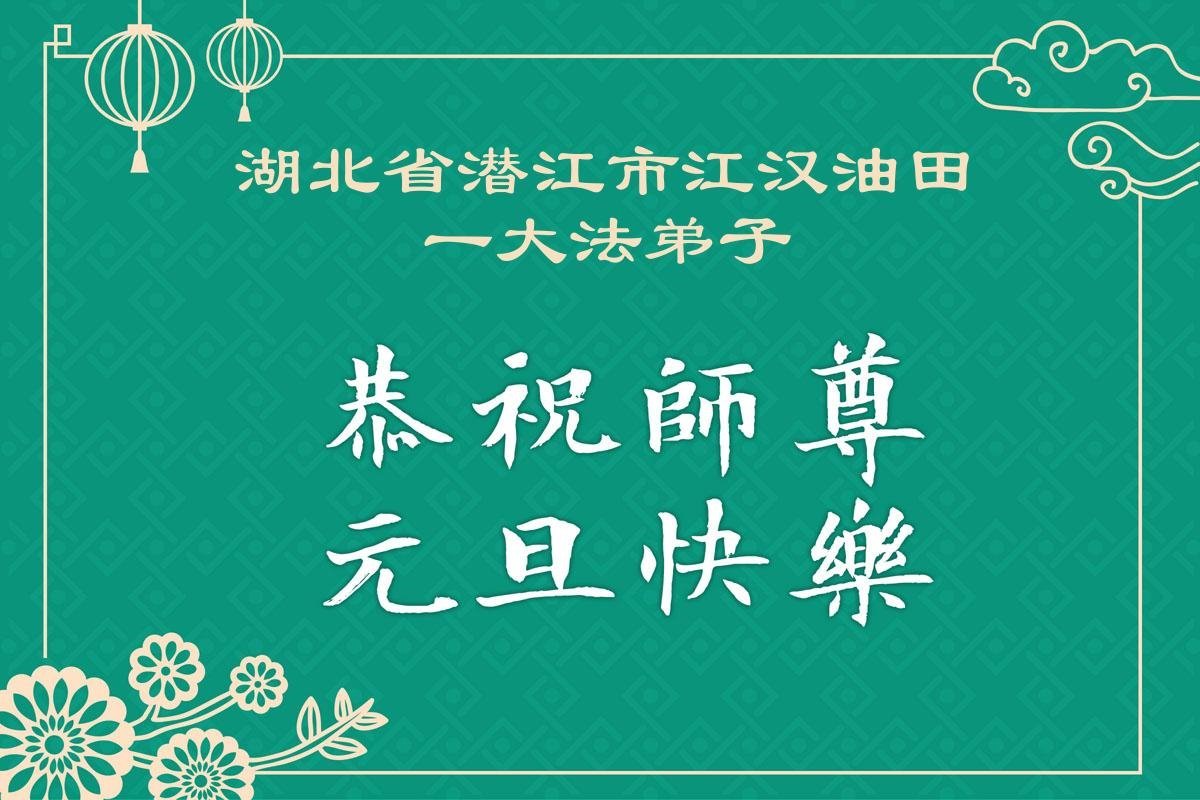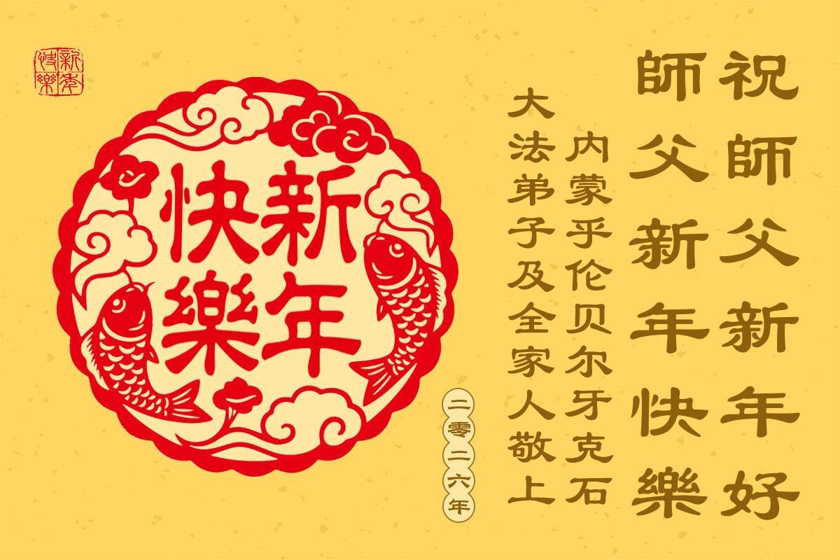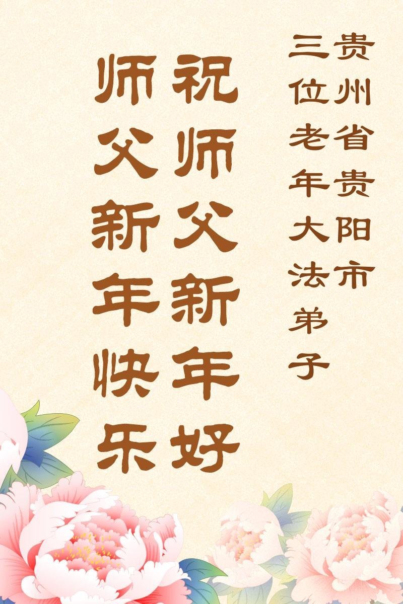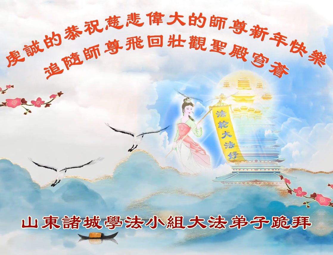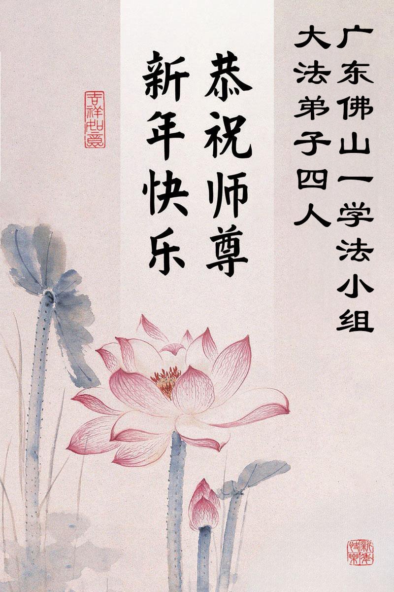 以下是部份来自中国各省、市、地区的学法炼功小组、讲真相小组、资料点大法弟子们敬致师尊的新年贺词贺卡: