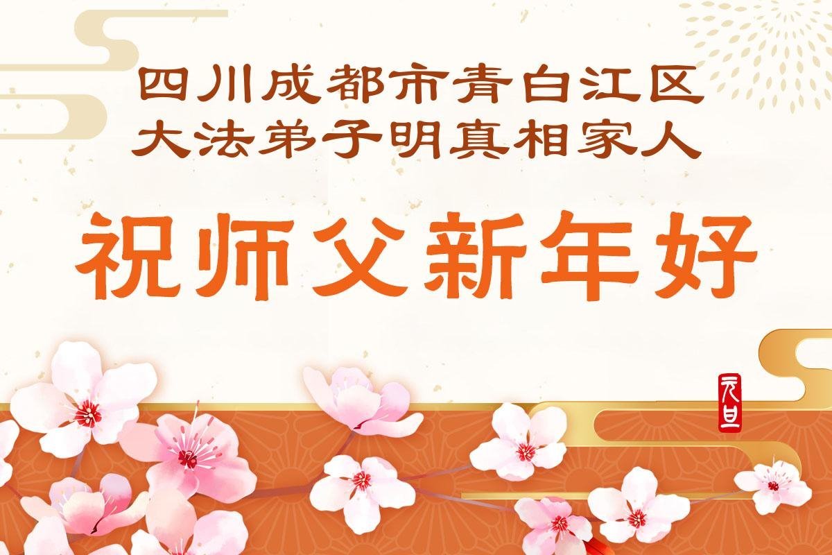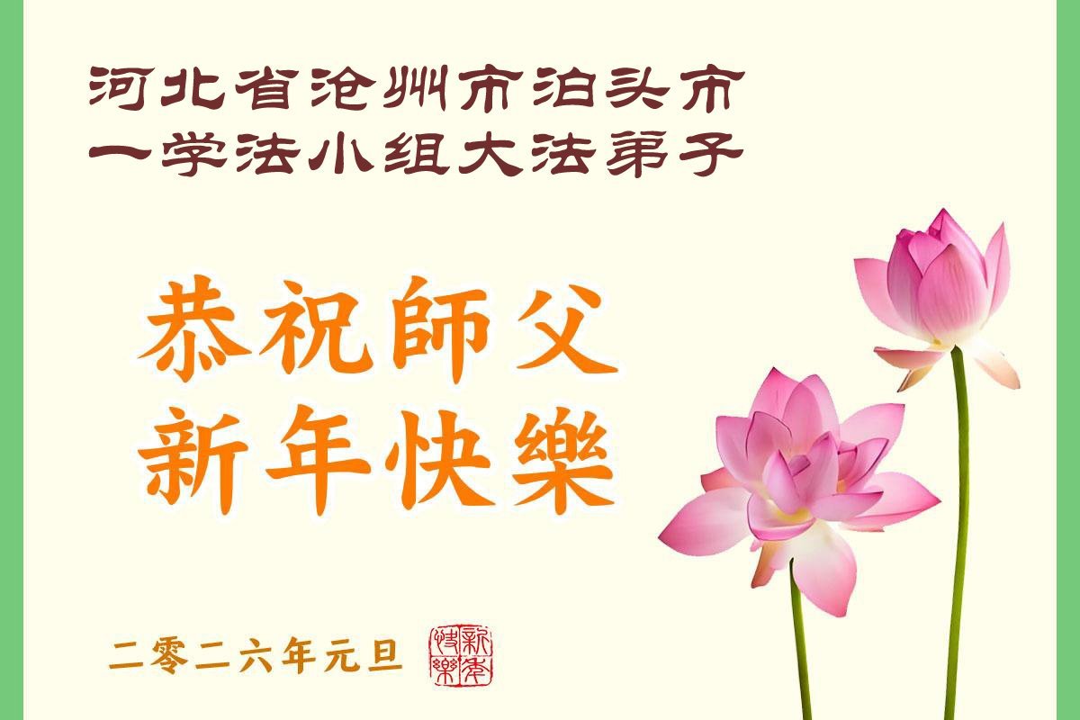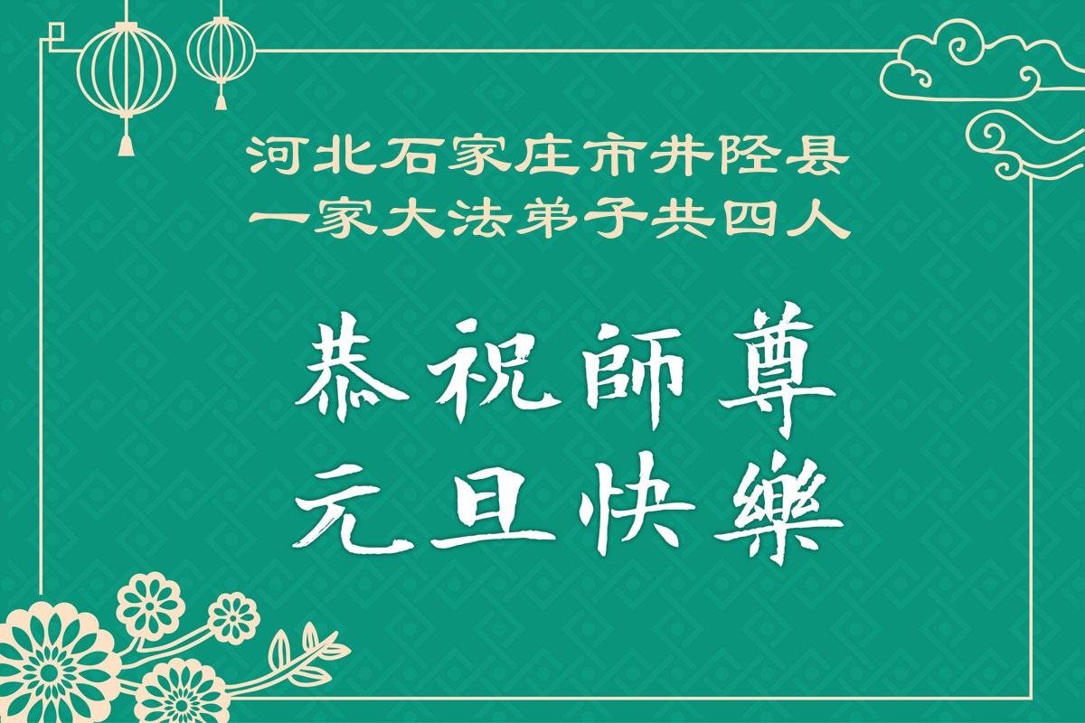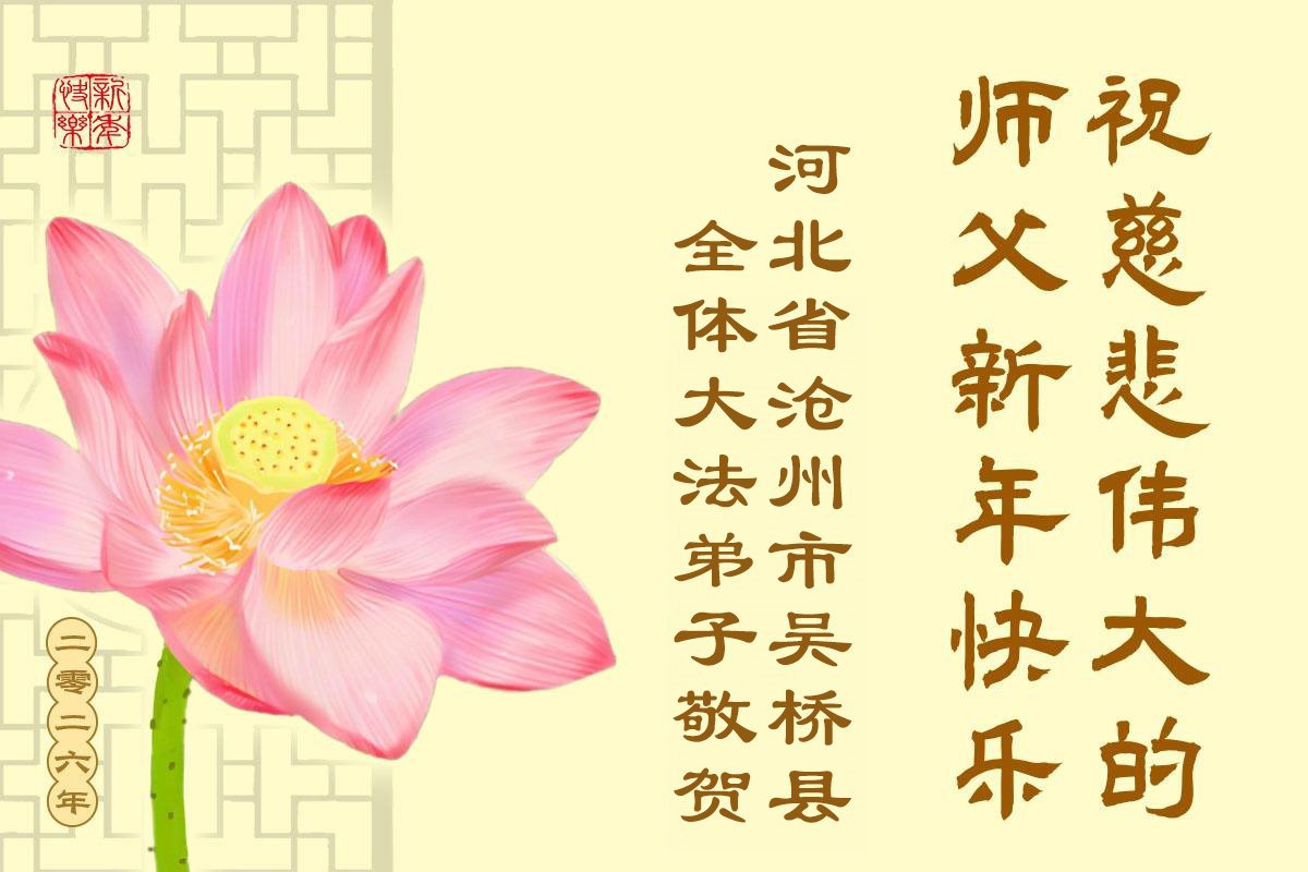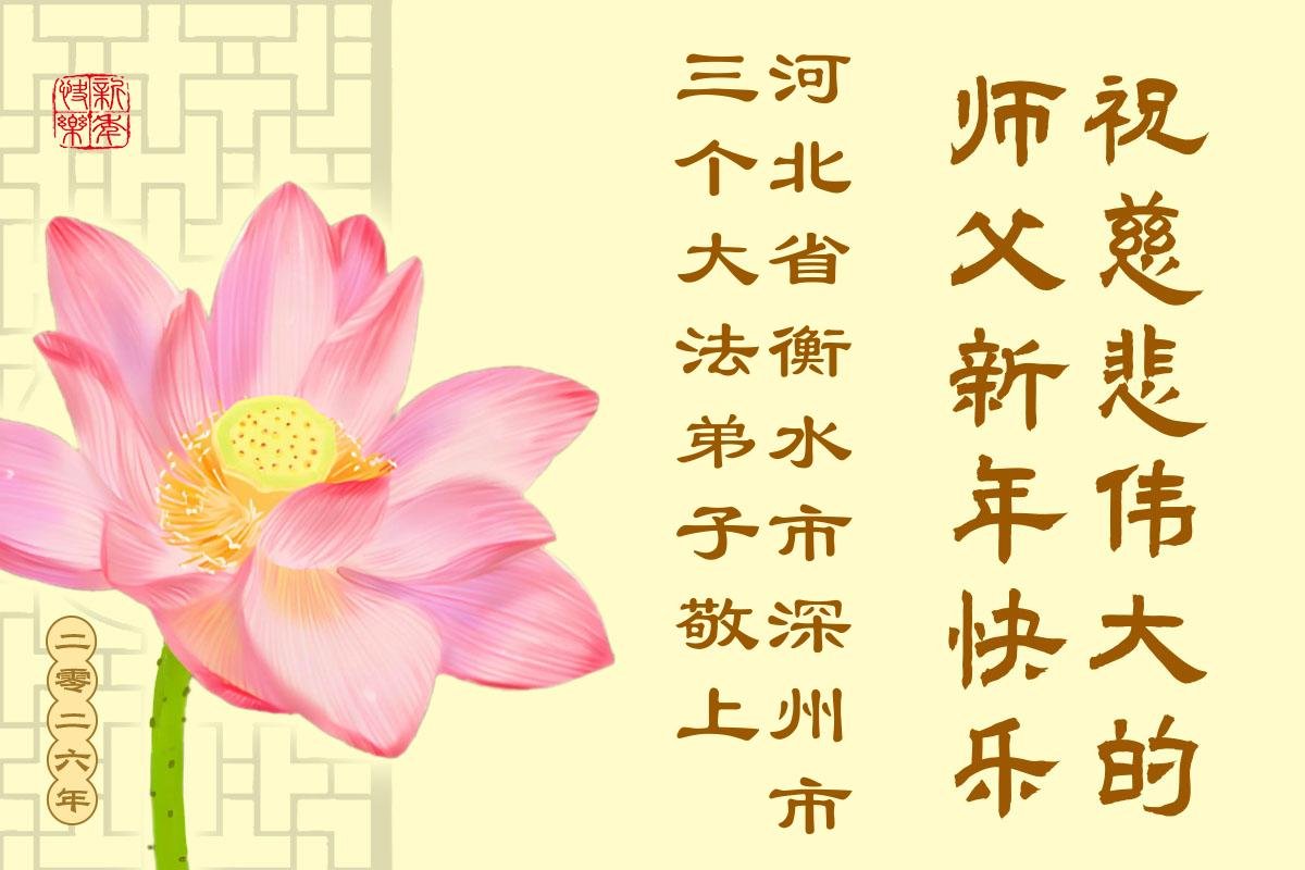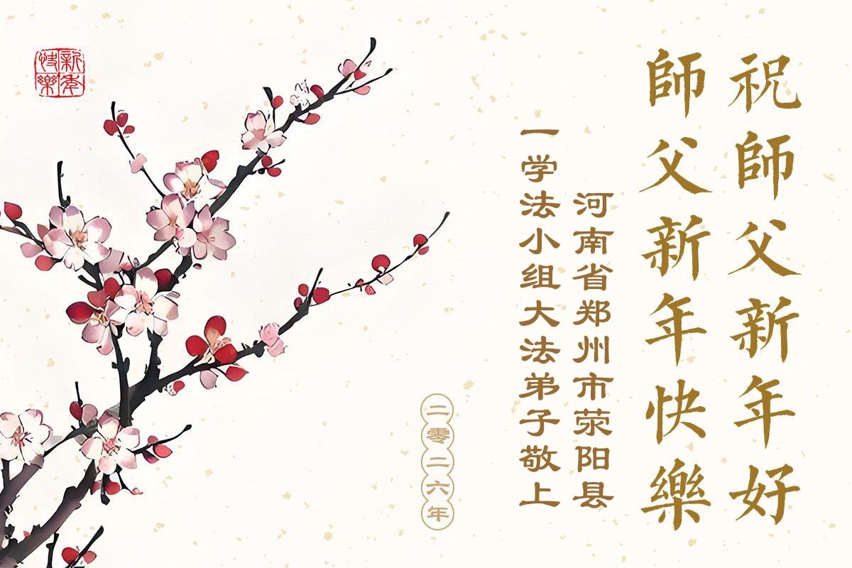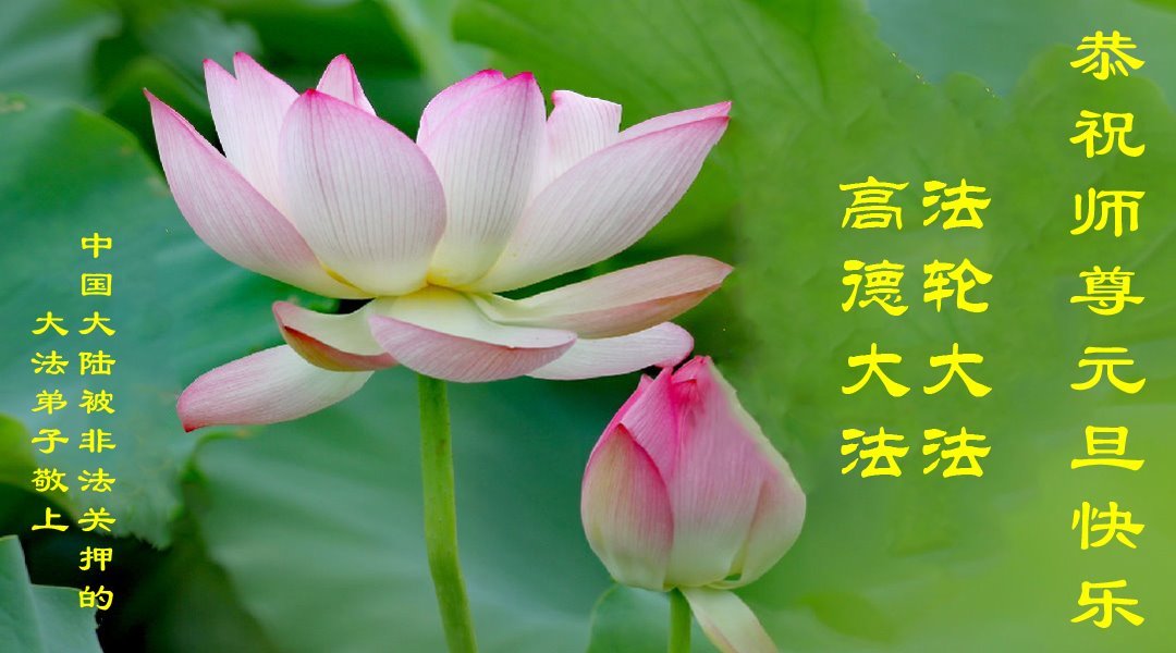 以下是部份来自中国各省、市、地区的学法炼功小组、讲真相小组、资料点大法弟子们敬致师尊的新年贺词贺卡: