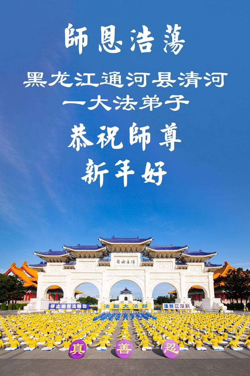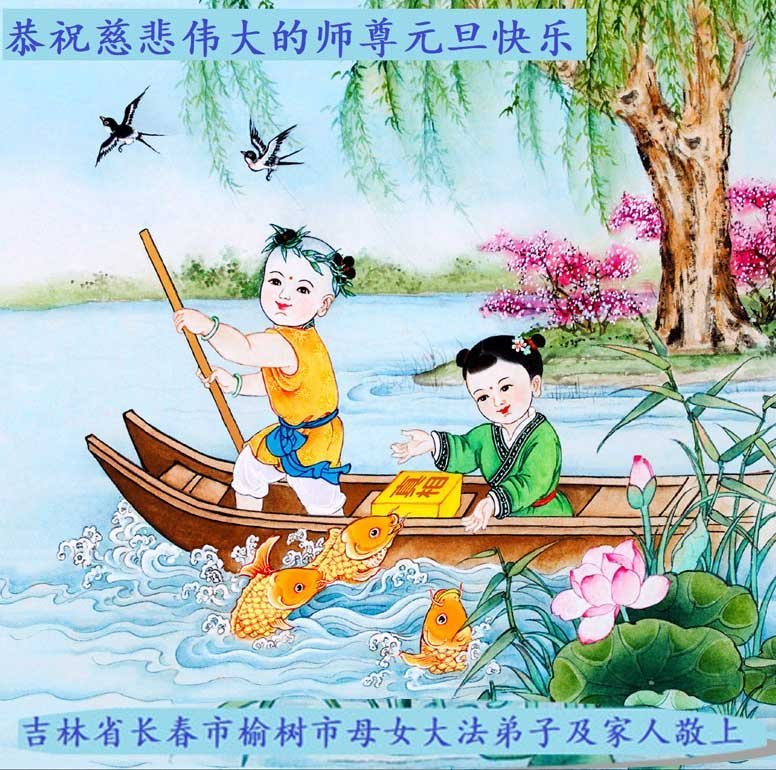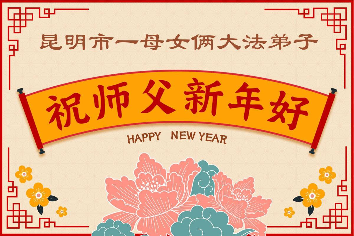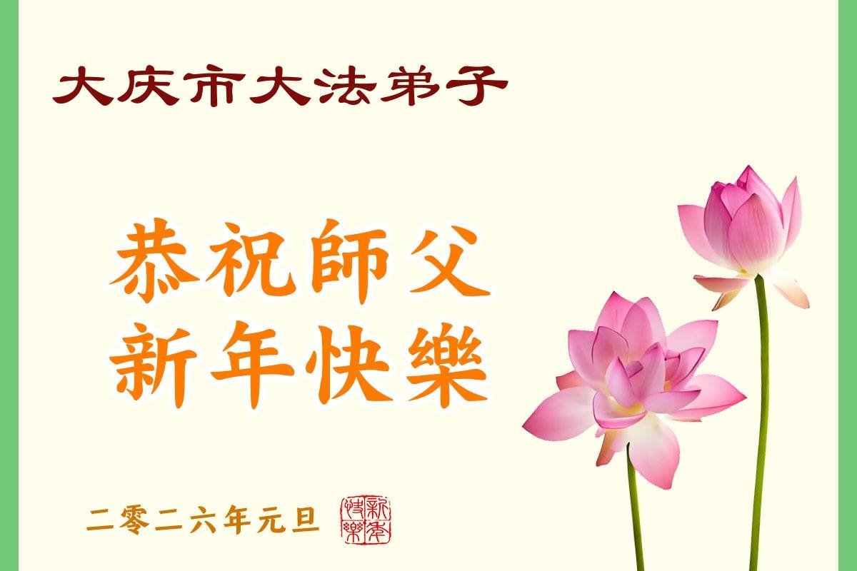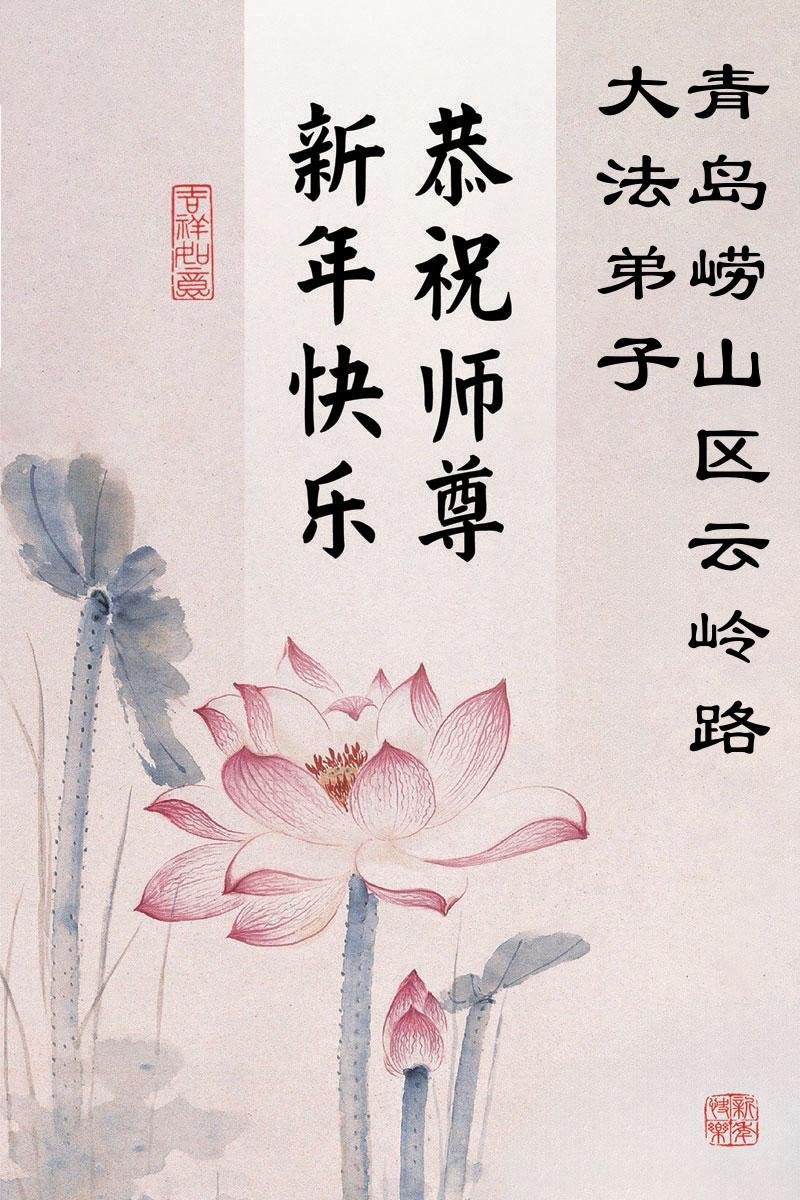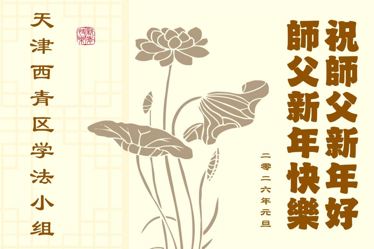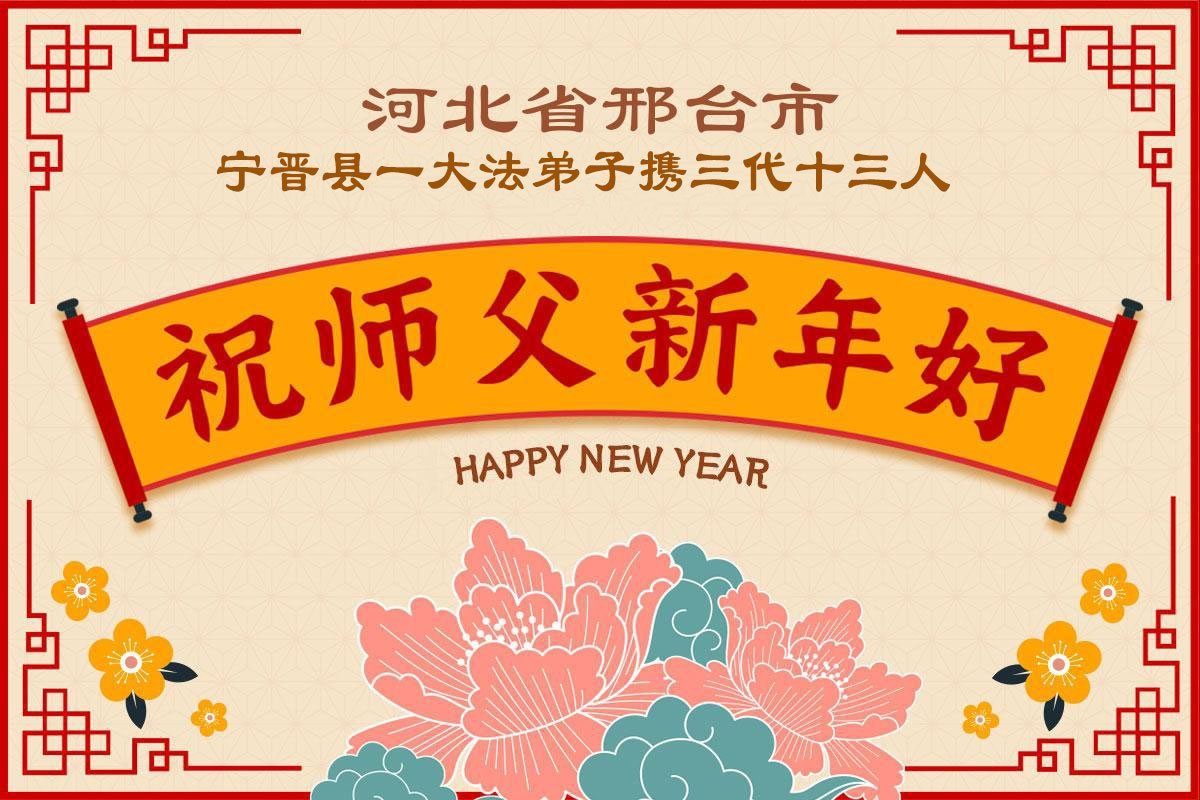 以下是部份来自中国各省、市、地区的学法炼功小组、讲真相小组、资料点大法弟子们敬致师尊的新年贺词贺卡: