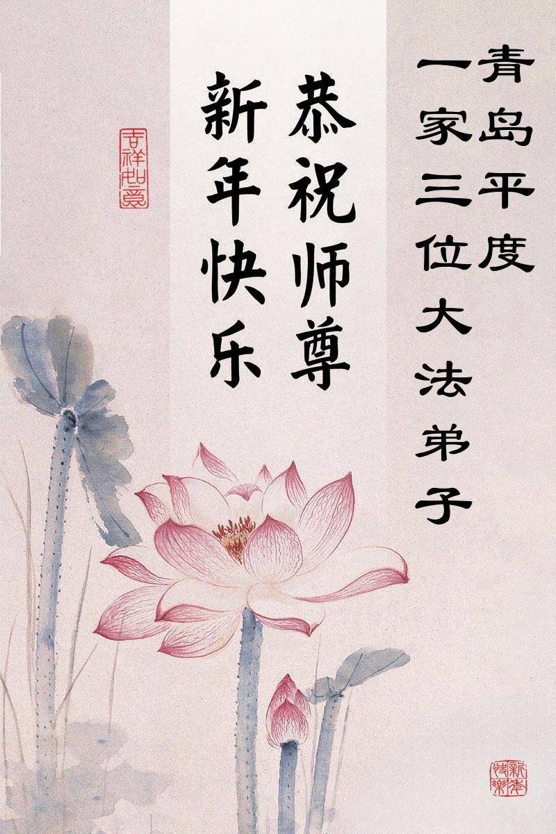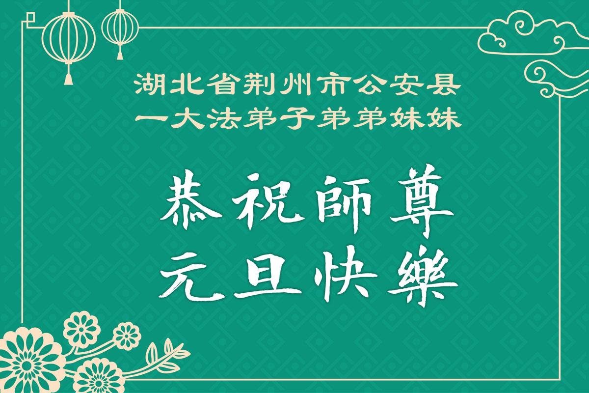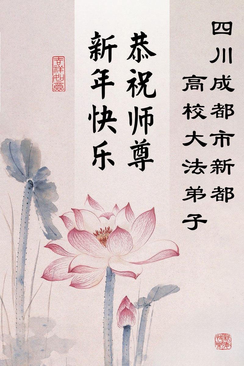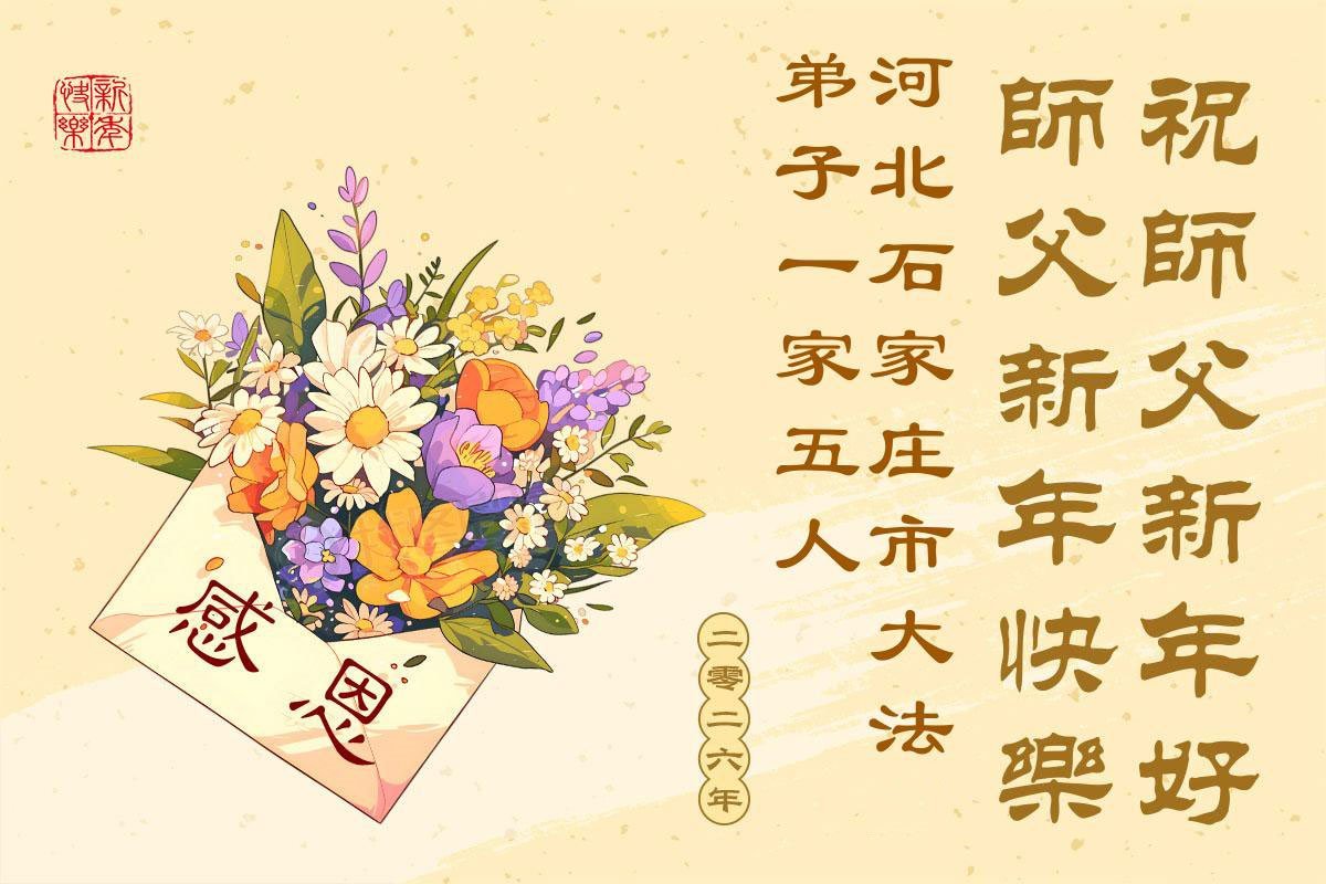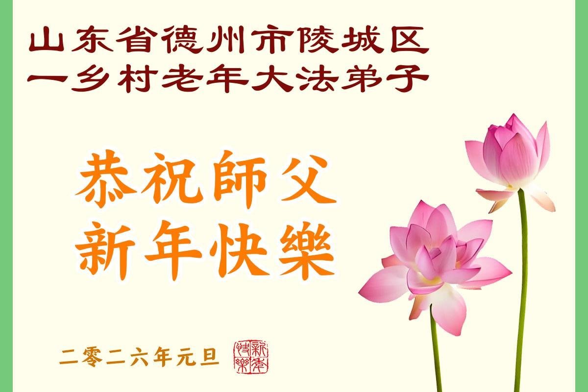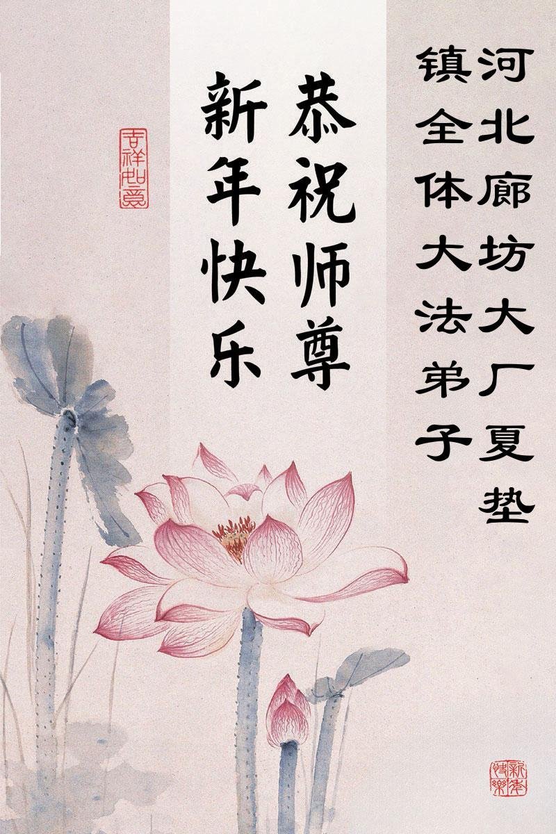 以下是部份来自中国各省、市、地区的学法炼功小组、讲真相小组、资料点大法弟子们敬致师尊的新年贺词贺卡: