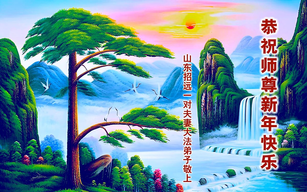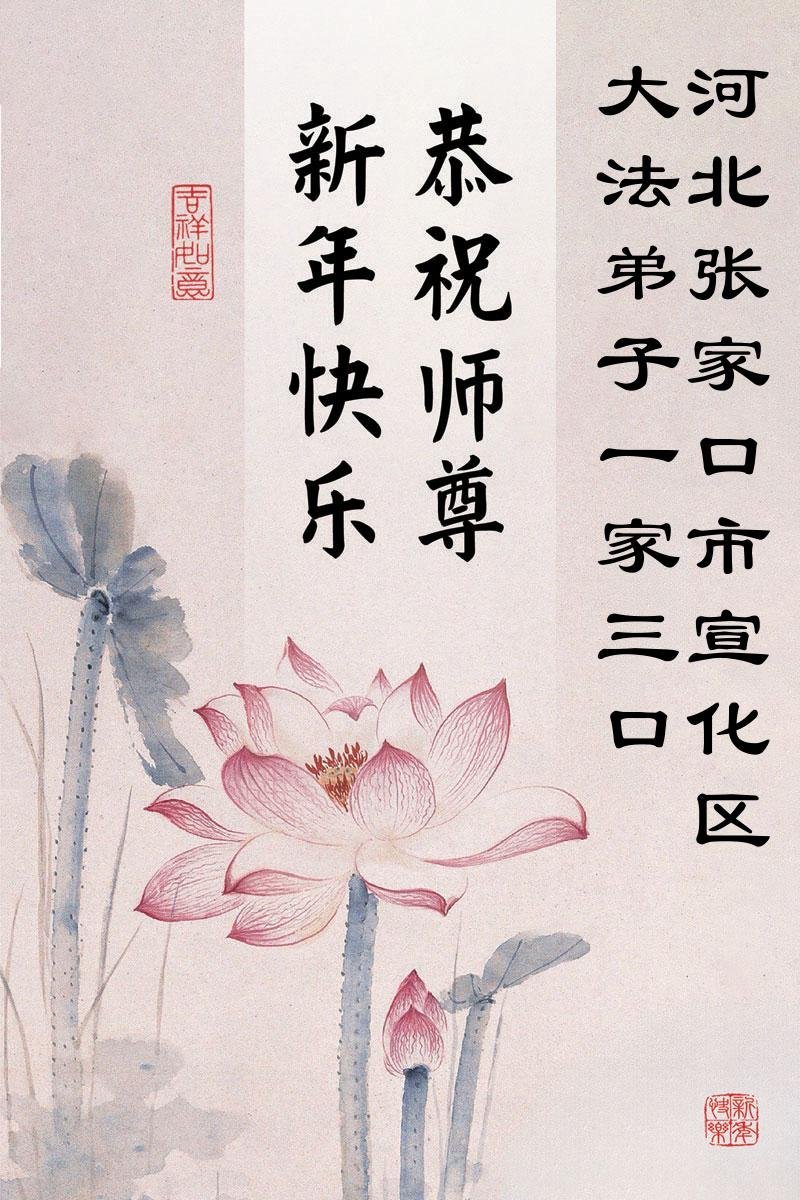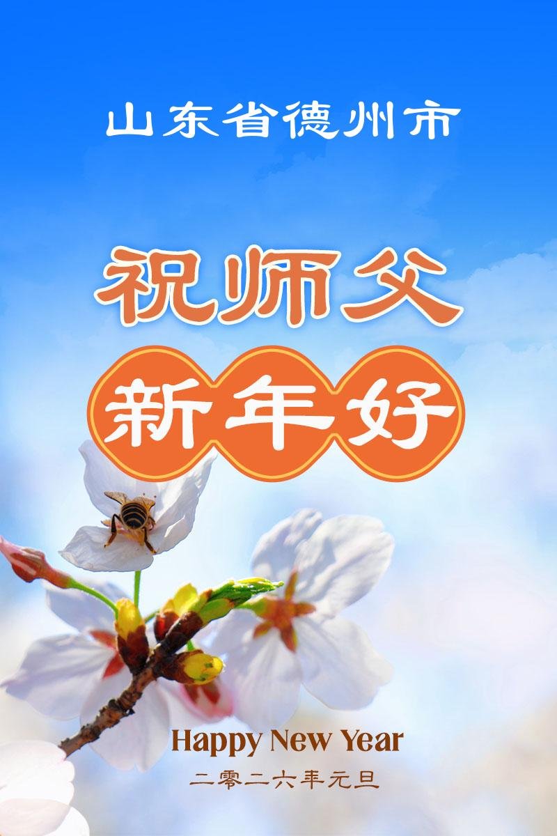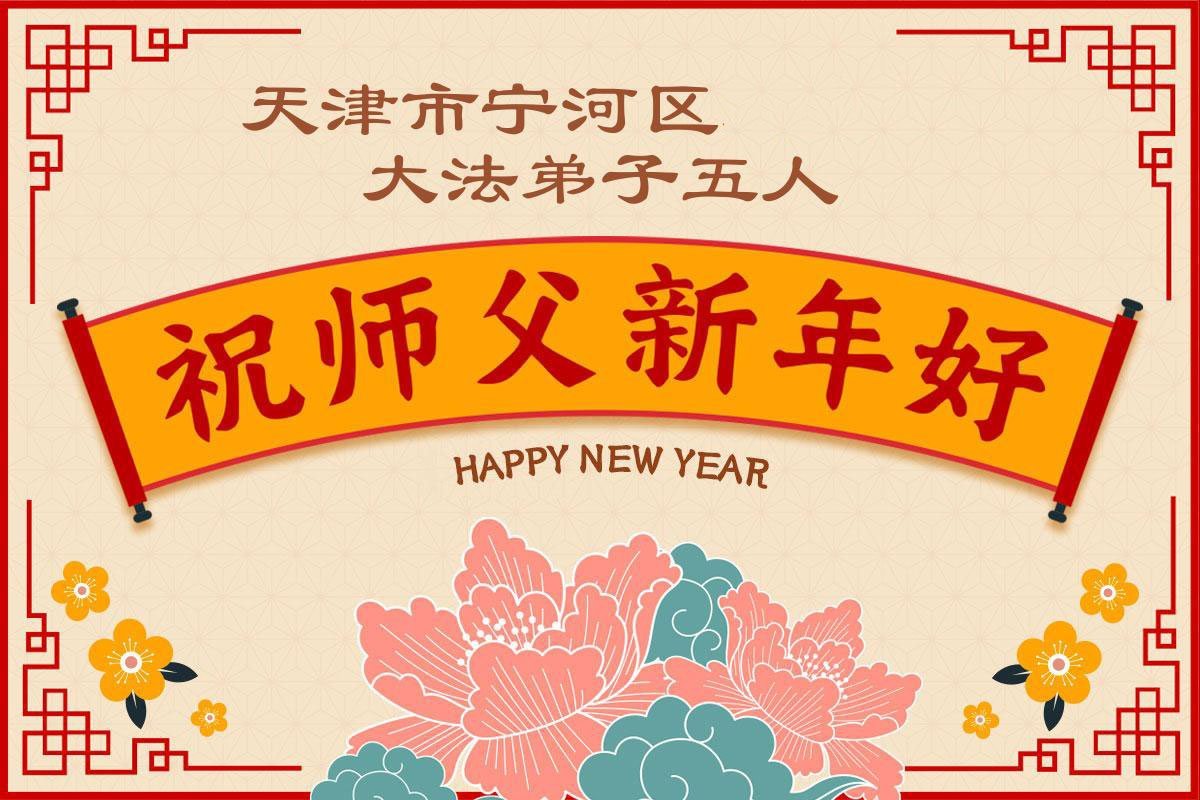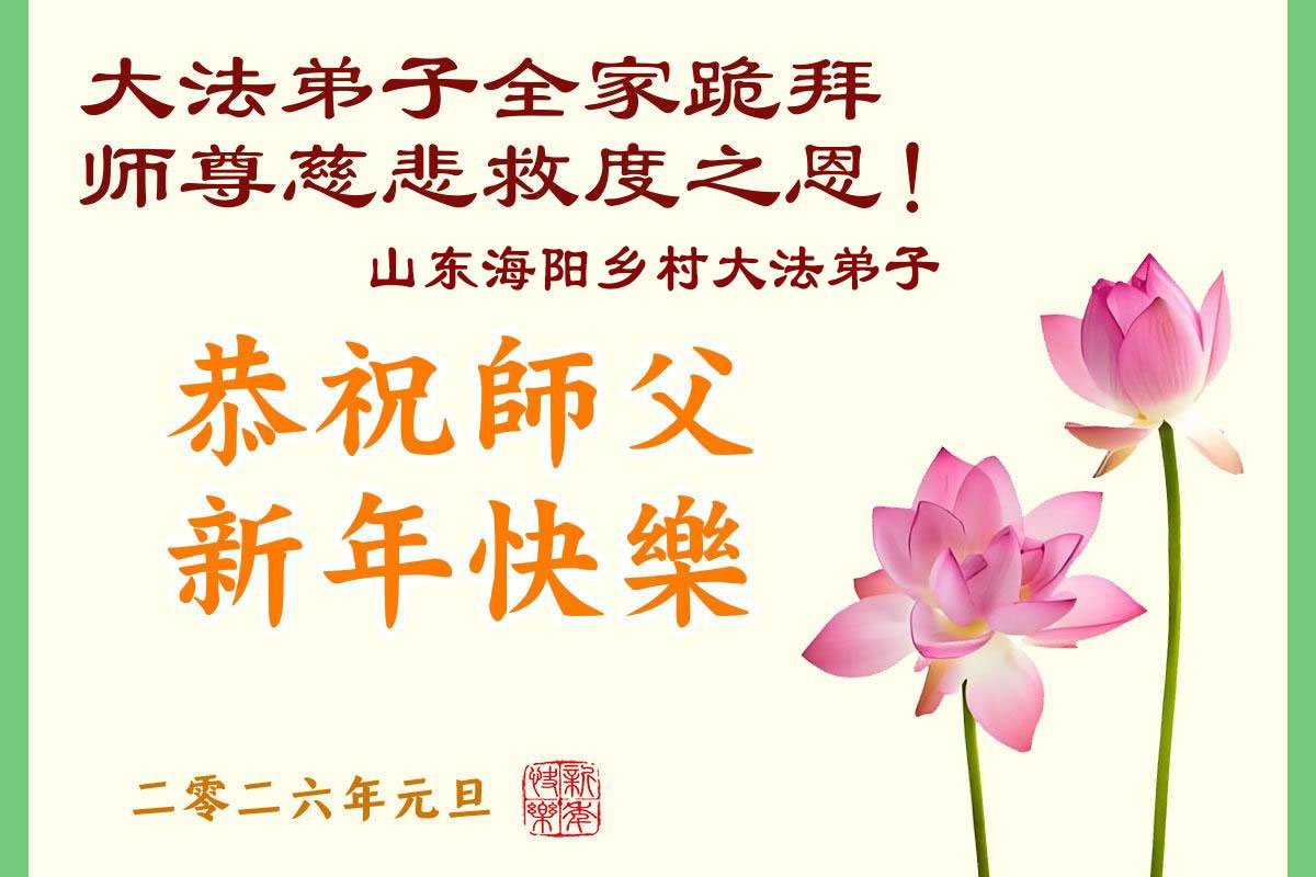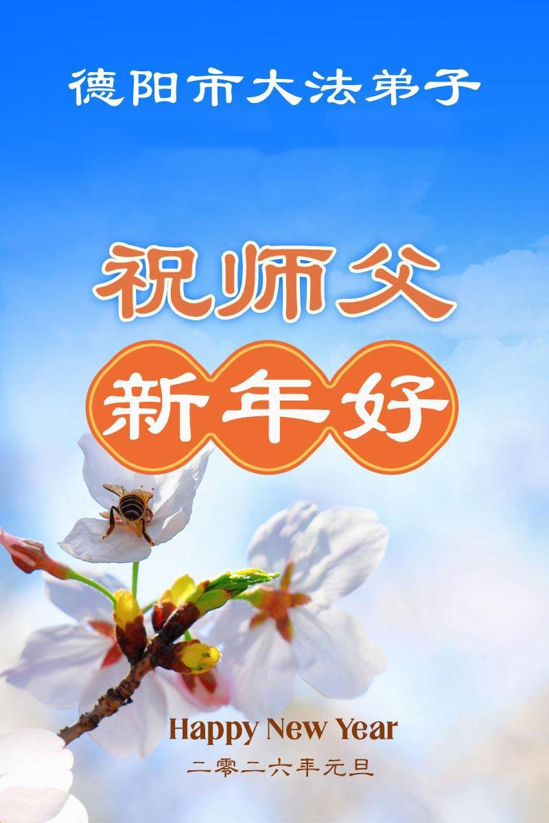 以下是部份来自中国各省、市、地区的学法炼功小组、讲真相小组、资料点大法弟子们敬致师尊的新年贺词贺卡: