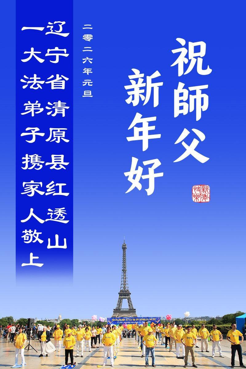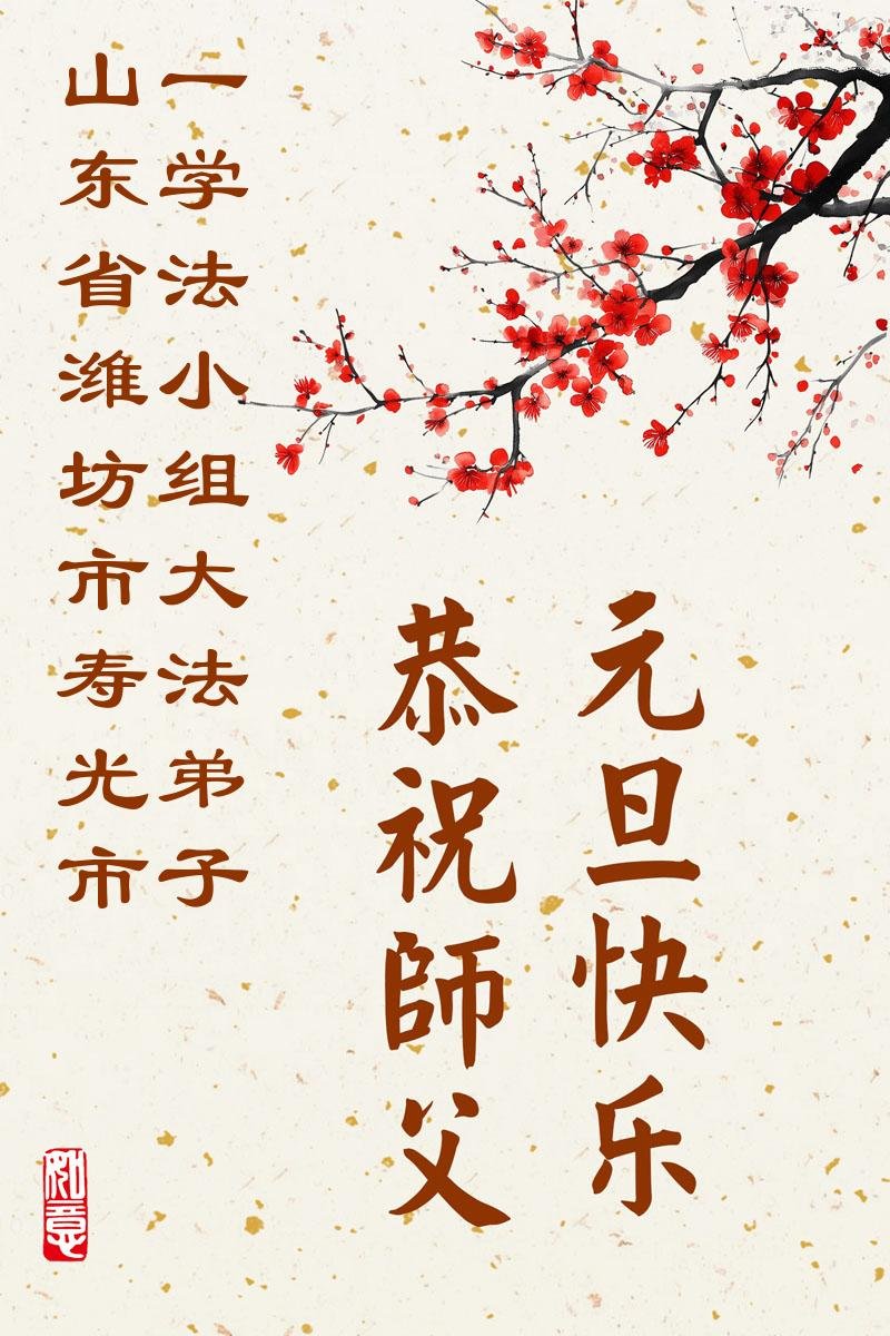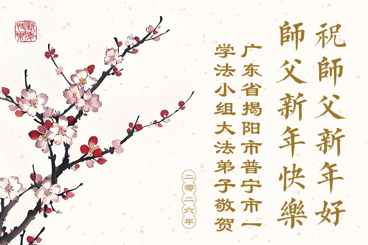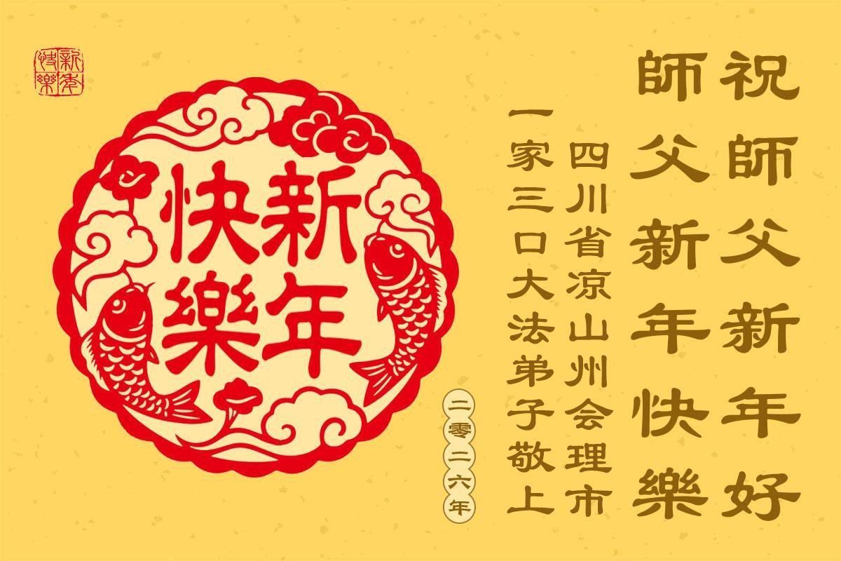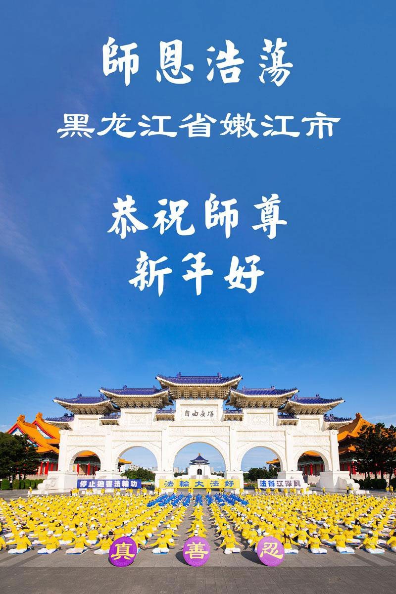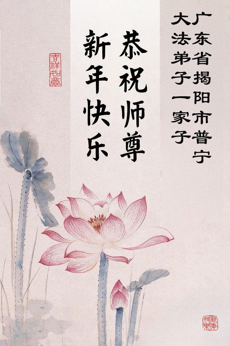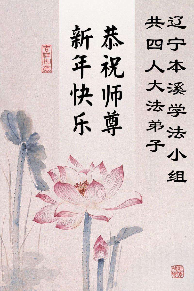 以下是部份来自中国各省、市、地区的学法炼功小组、讲真相小组、资料点大法弟子们敬致师尊的新年贺词贺卡: