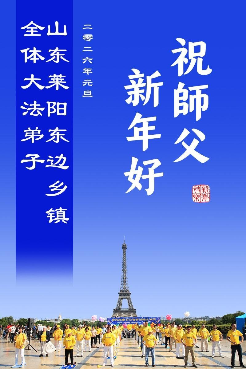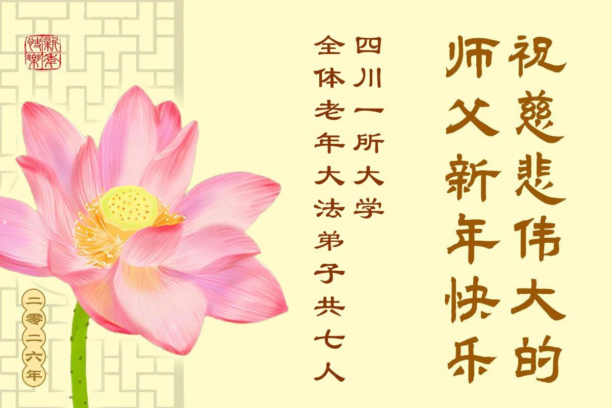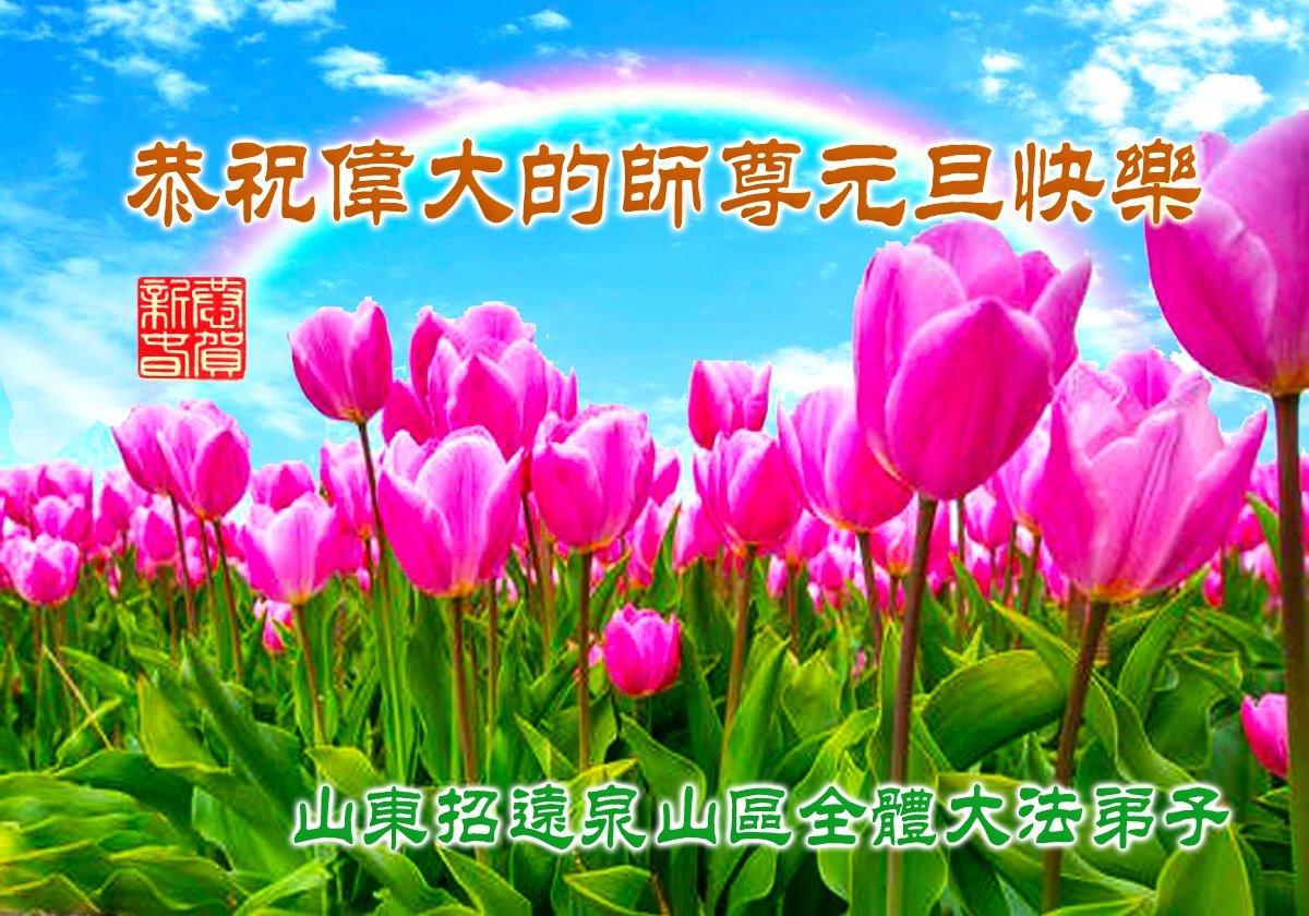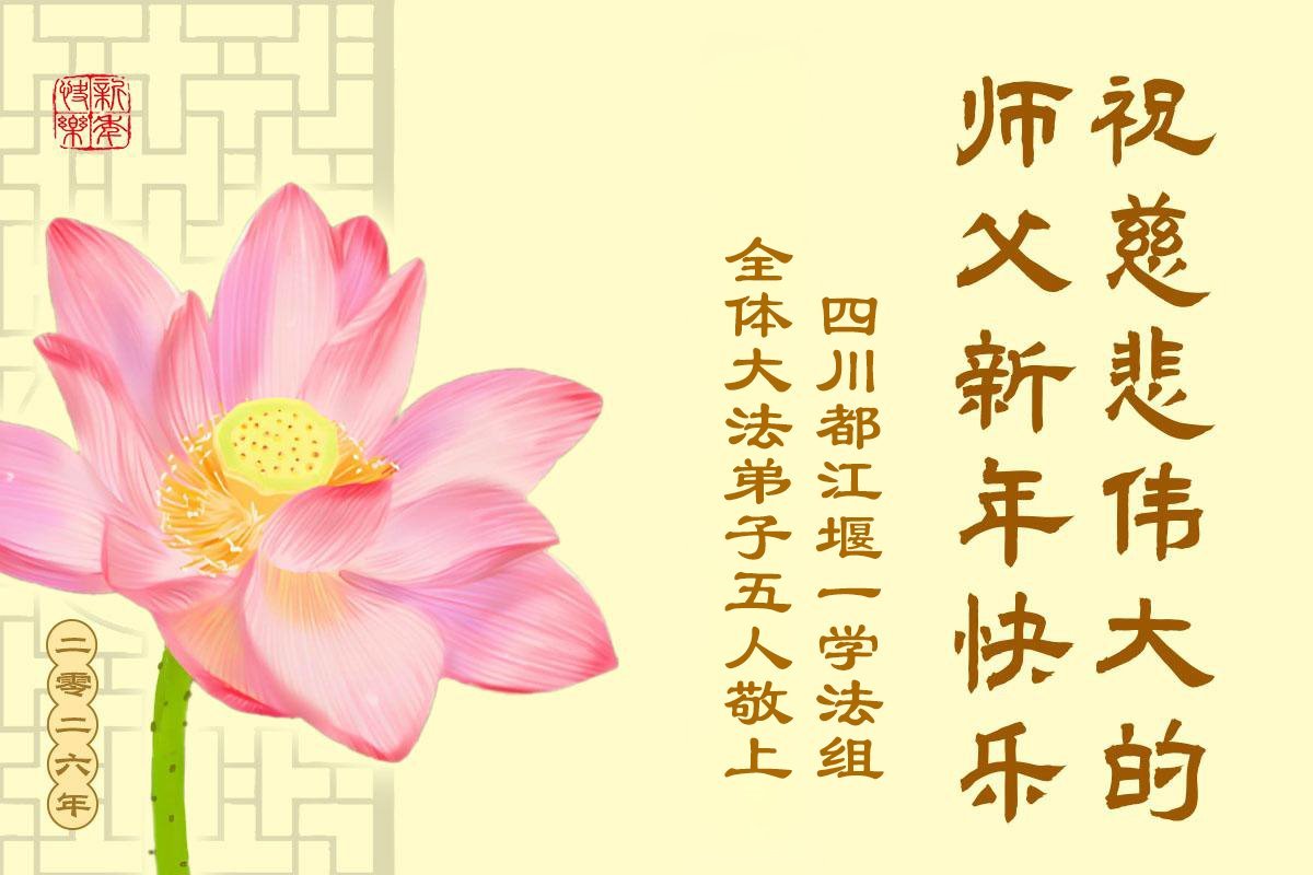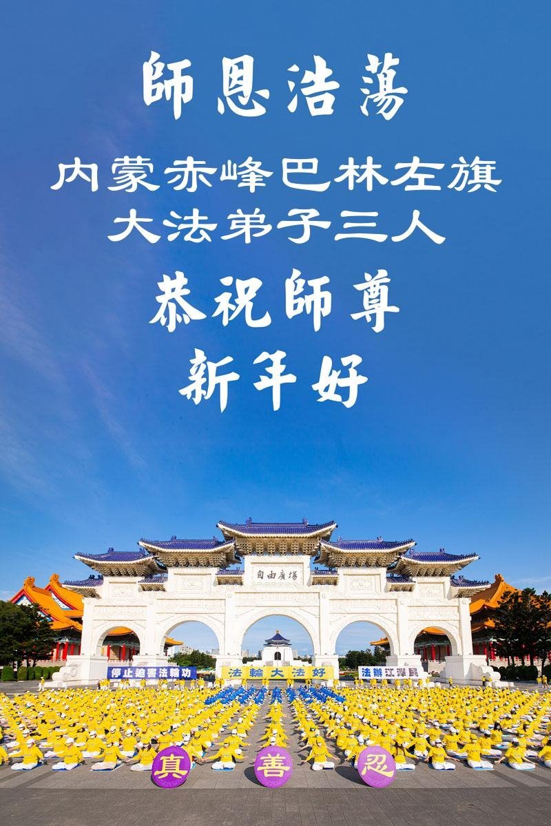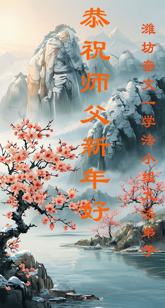 以下是部份来自中国各省、市、地区的学法炼功小组、讲真相小组、资料点大法弟子们敬致师尊的新年贺词贺卡: