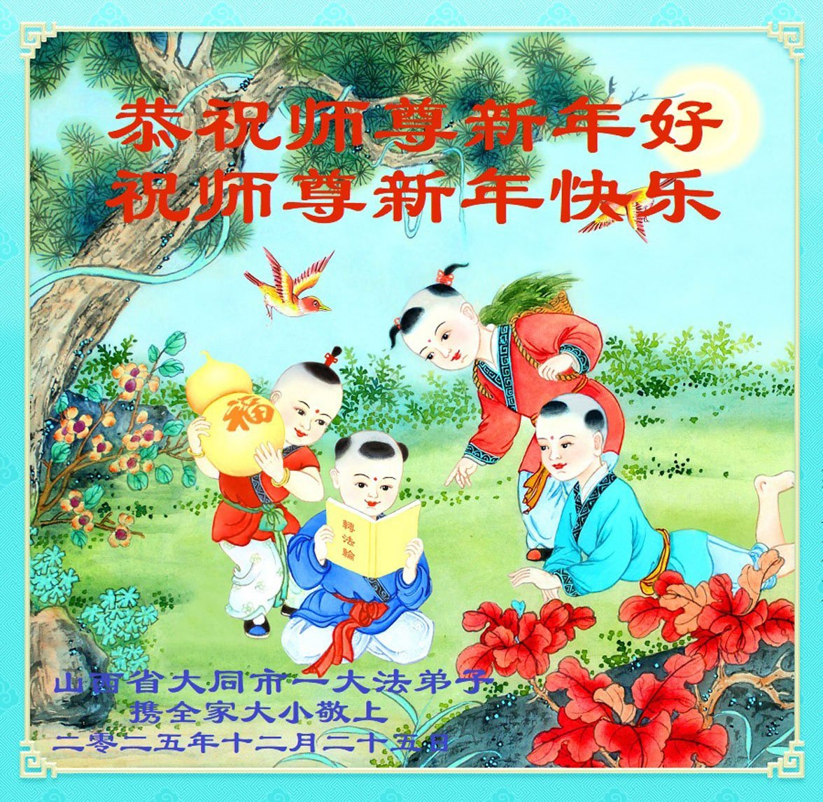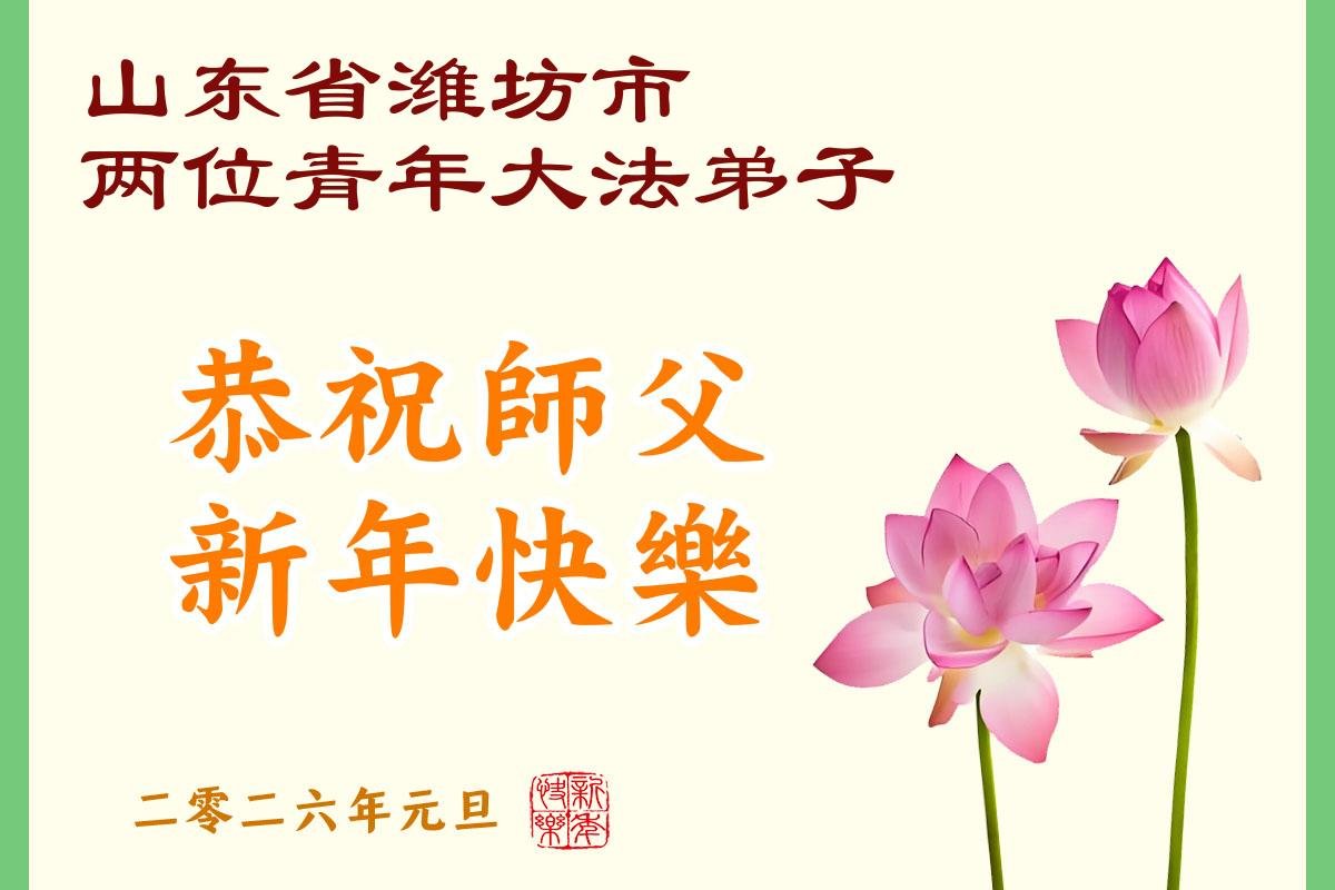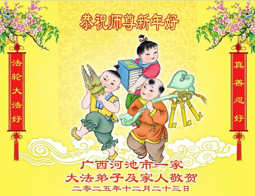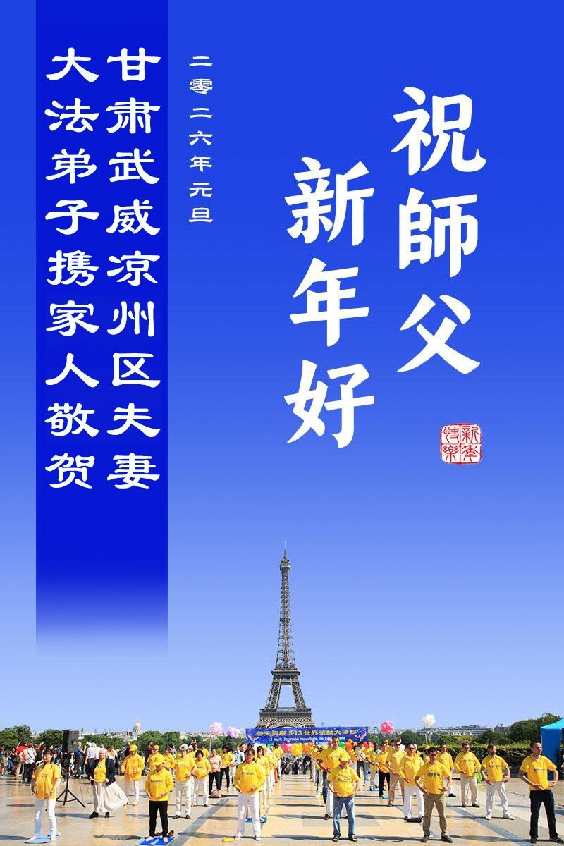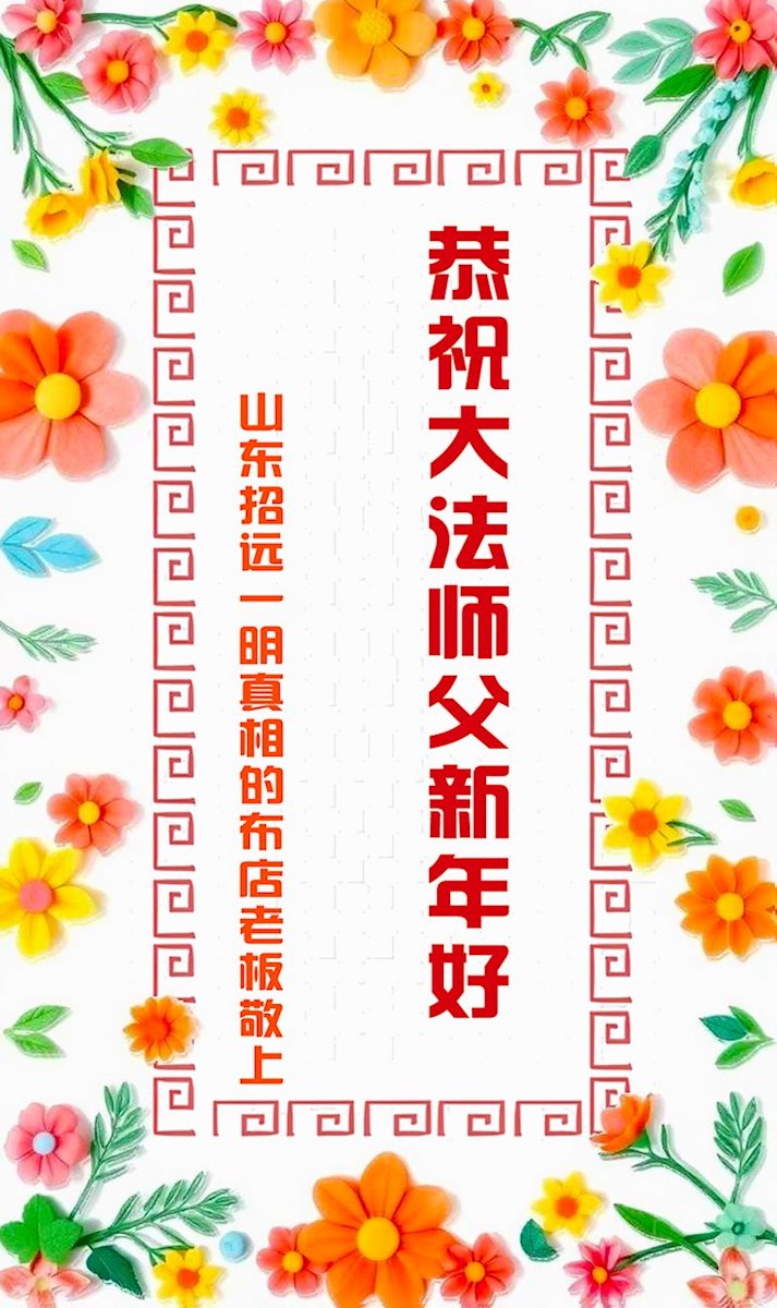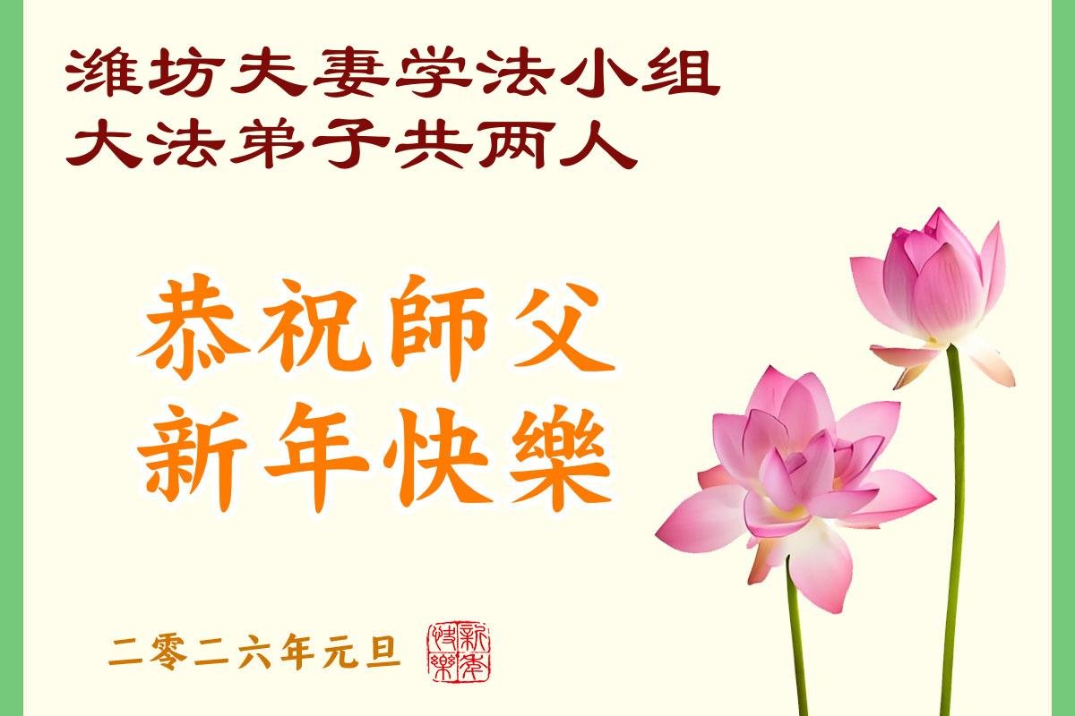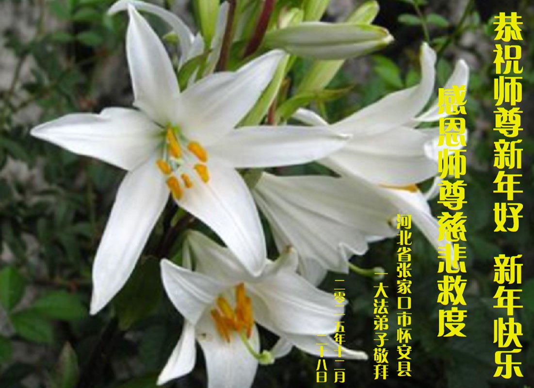 以下是部份来自中国各省、市、地区的学法炼功小组、讲真相小组、资料点大法弟子们敬致师尊的新年贺词贺卡:
