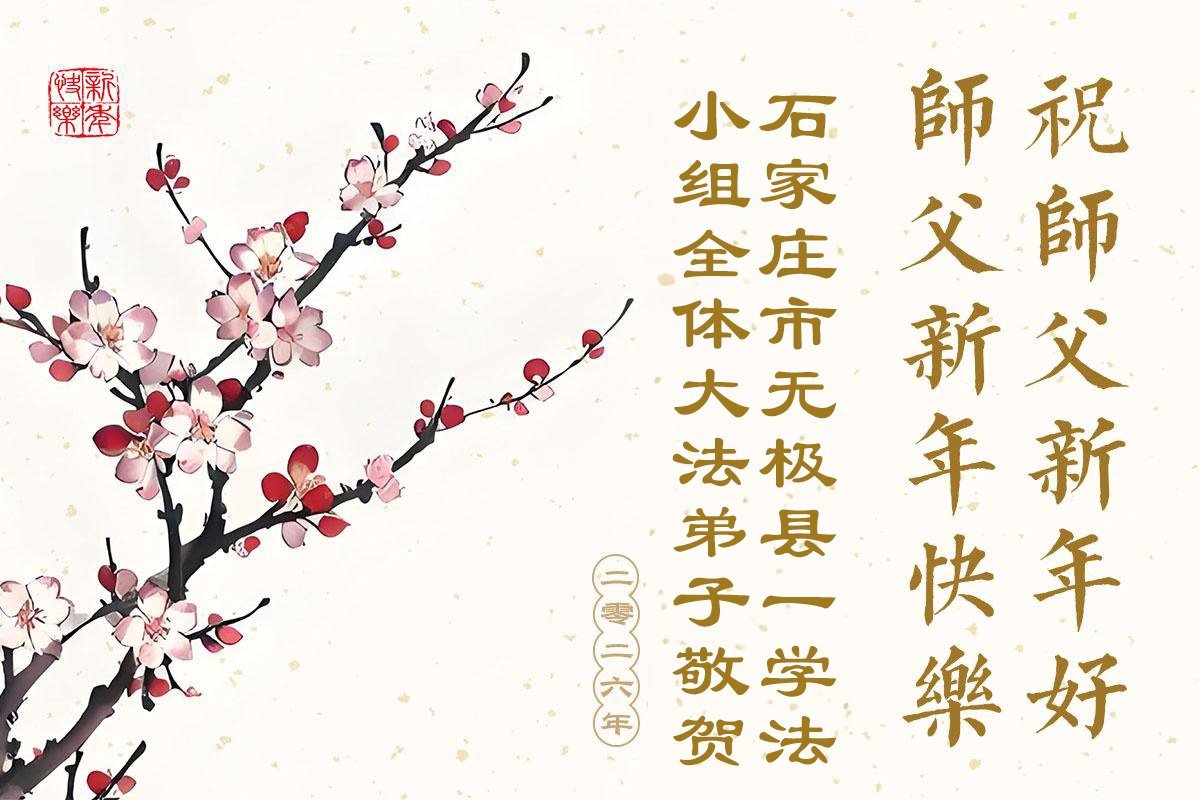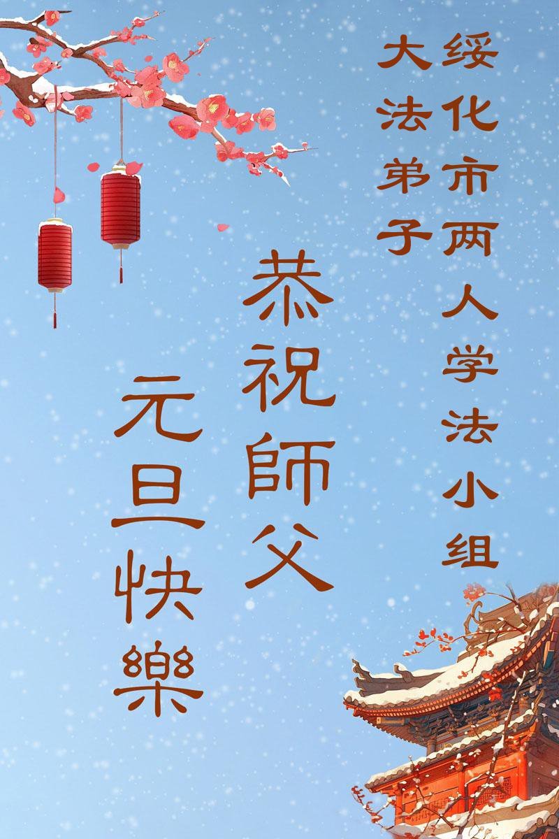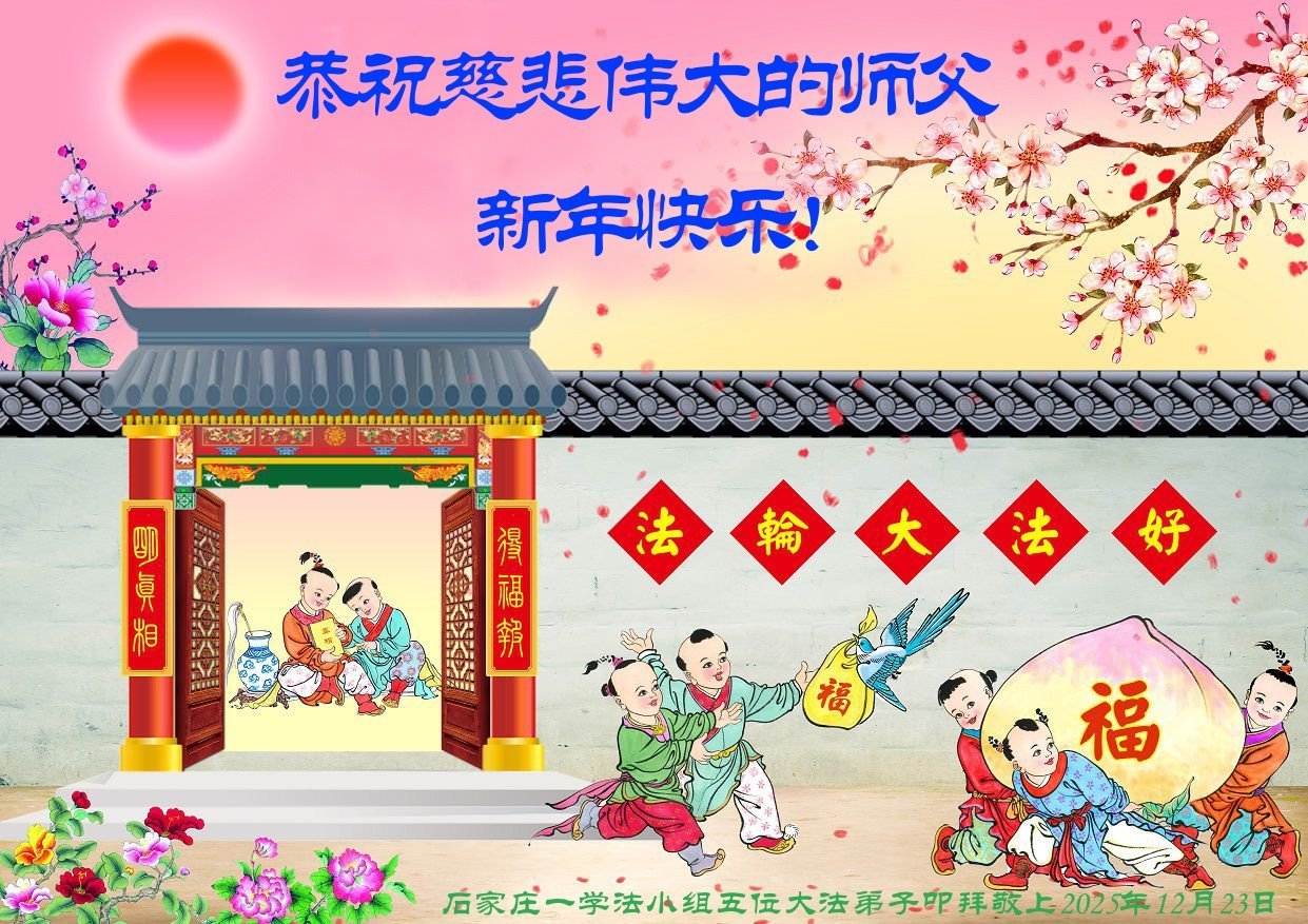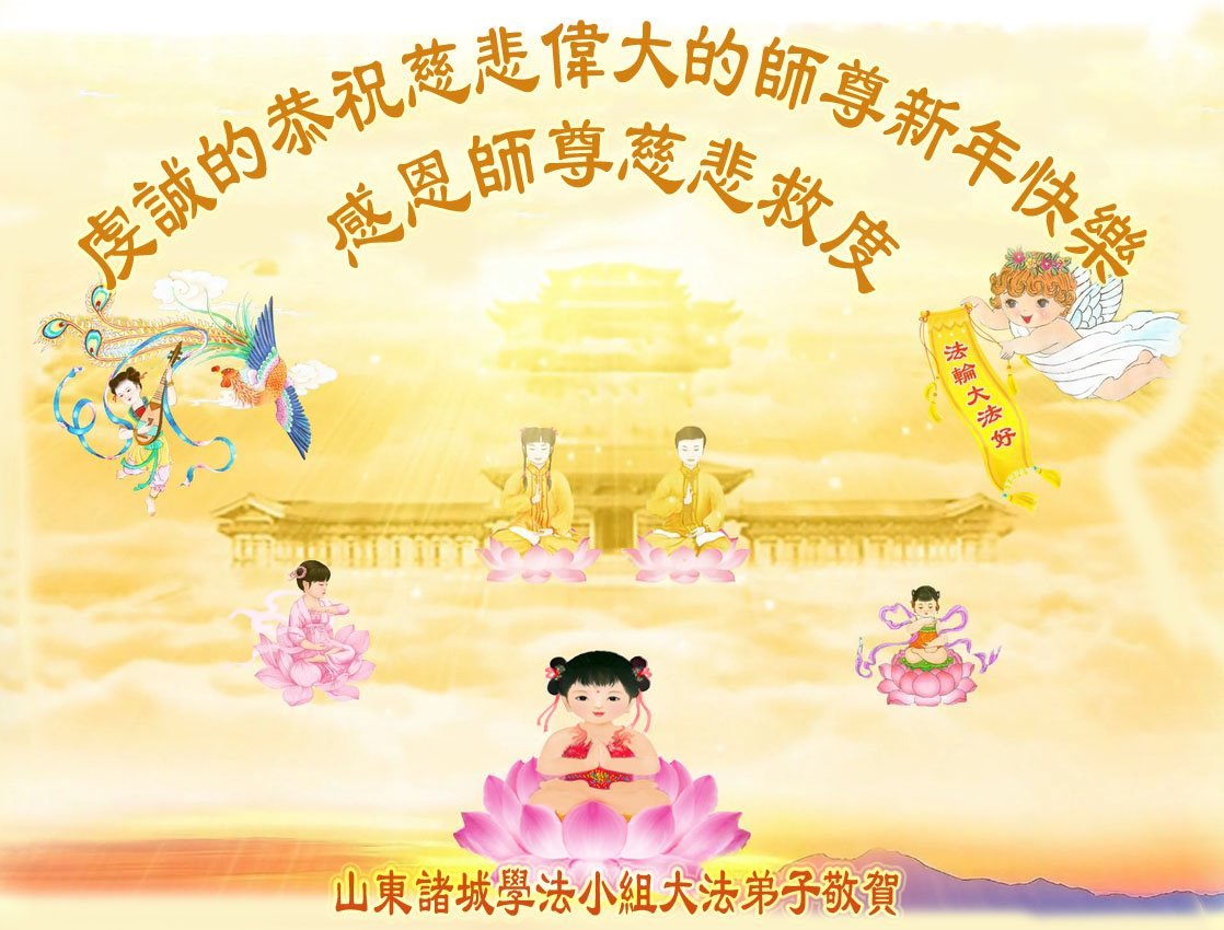 慈悲伟大的师尊您好,您辛苦啦!新年到来之际,我们十个学法小组的弟子们合十恭祝师尊新年好!新年快乐!弟子感恩师尊慈悲普度!我们每天三三两两的一起出去面对面讲真相救人,一起学法,相互提醒,共同升华,做好三件事圆容师尊要的。感恩师尊对弟子的一路加持看护!