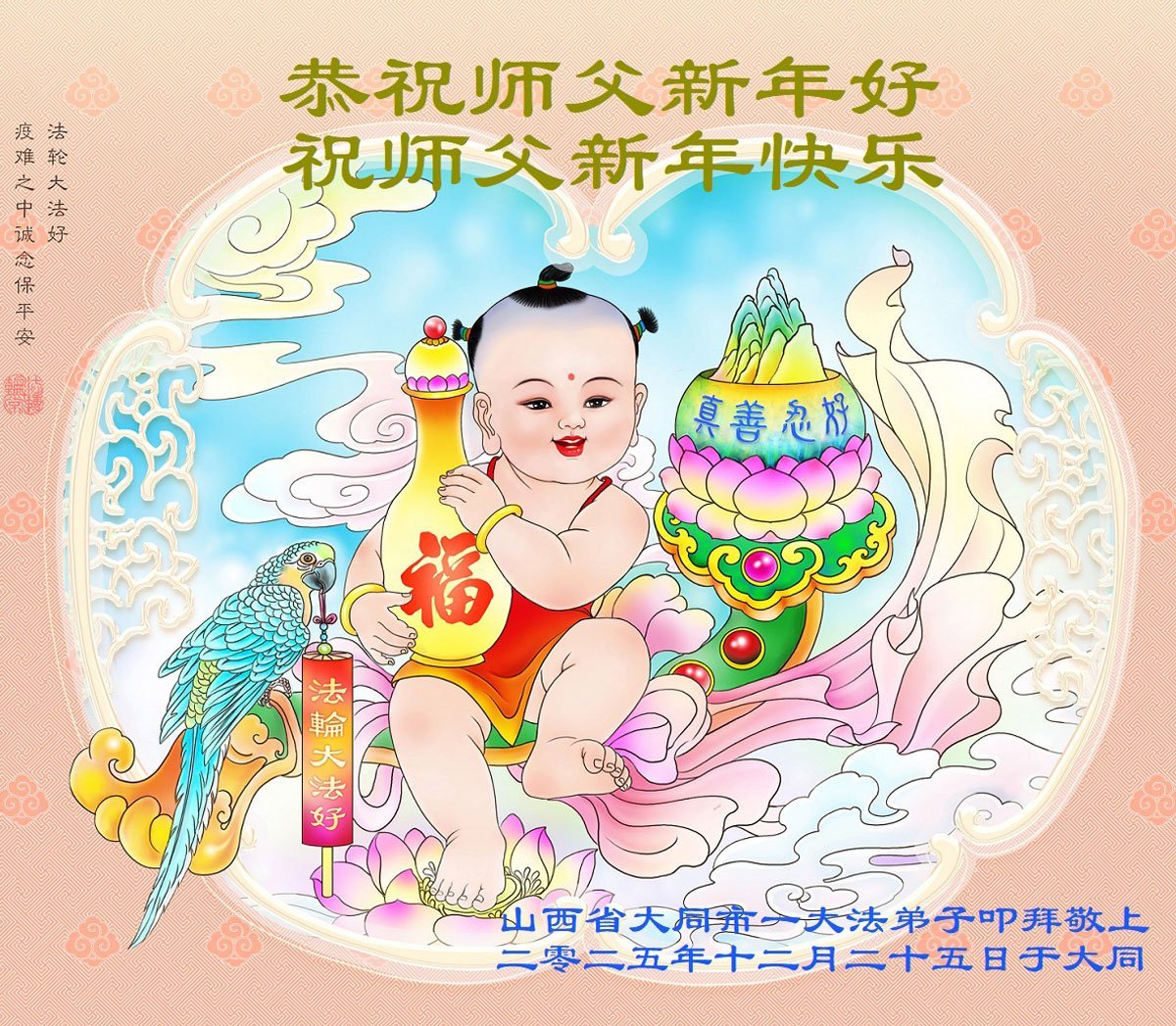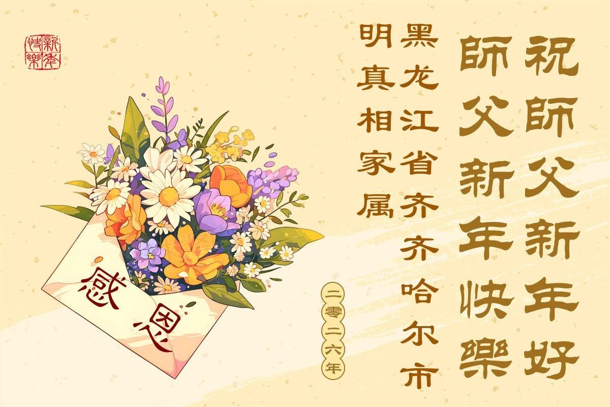 【明慧网二零二五年十二月三十一日】二零二六年新年钟声敲响之际,中国大陆30省、直辖市、自治区大法弟子同拜师尊,恭祝慈悲伟大的师尊新年好!