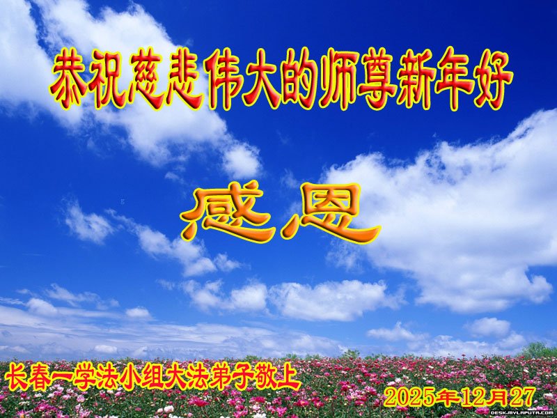 弟子得法近十年,修炼路并不平坦,但是身心灵获救后的轻松和愉悦,用任何语言都无法表述对师父的感恩!新的一年又将来临,弟子知道是师父巨大的承受给我们又延续来了一个新年,弟子深知只有更加努力精進,做好三件事,多多救人,兑现好史前大愿,才是对师父最好的报答。感恩师父!