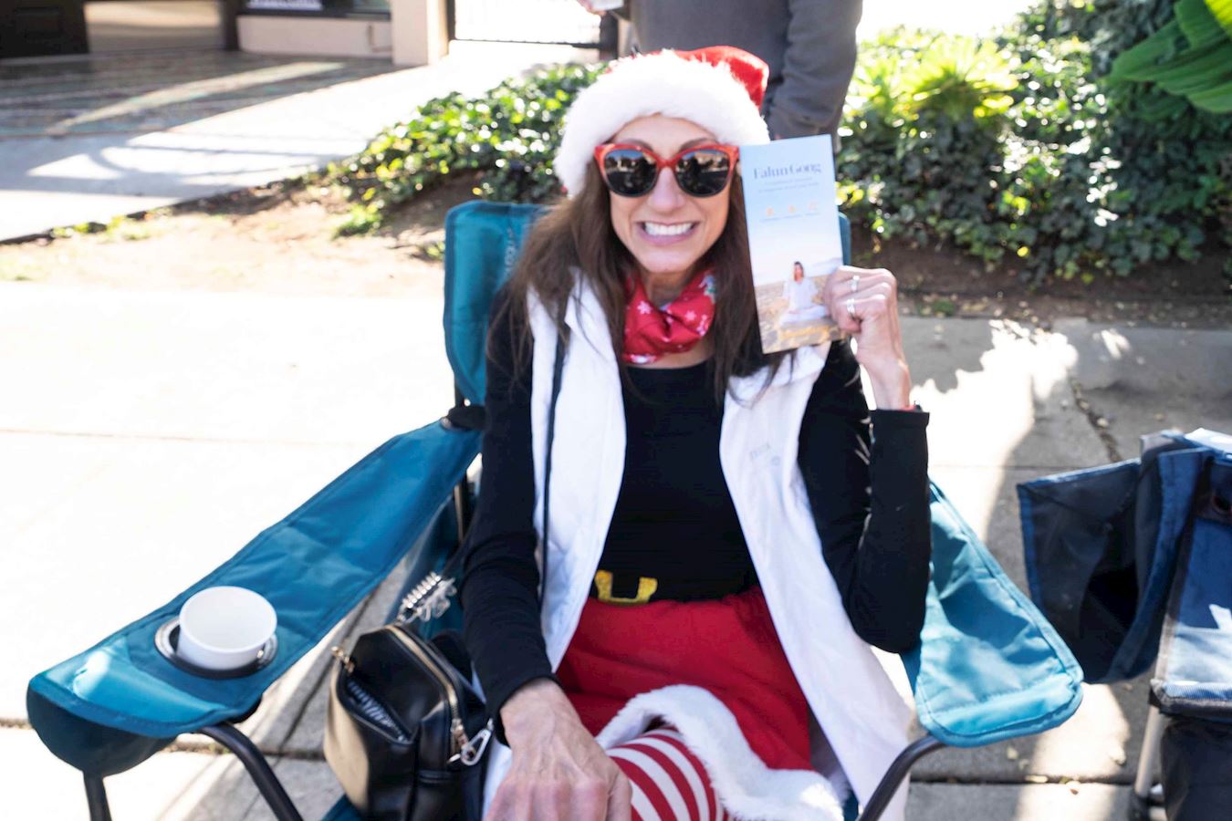 卡罗尔(Carol)是一名亚积士镇的房地产从业者,她跟随自己的团队参加了亚积士圣诞游行。在游行开始前,她看到部份天国乐团学员在集体炼功,学员给她介绍了法轮功原则后,她请学员教她动作。