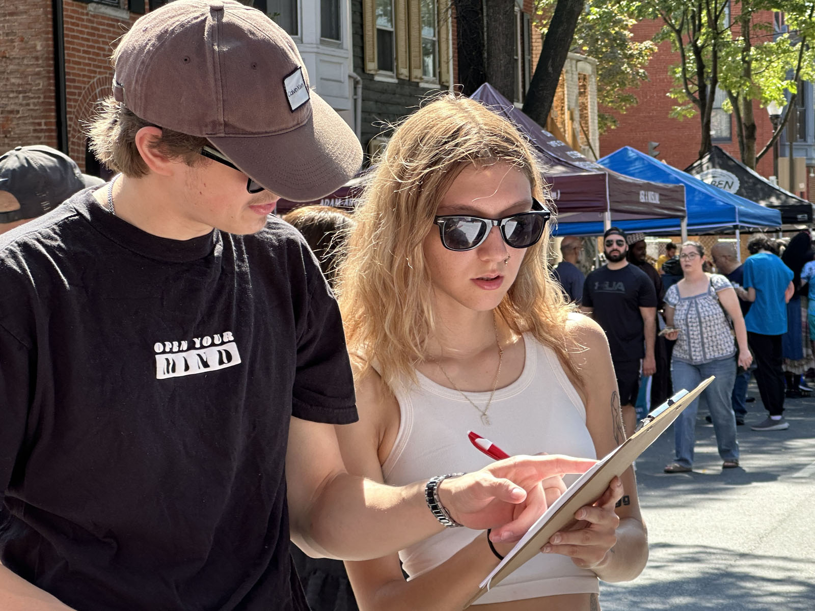 ![]() 图5~6: 二零二五年九月十三日,美国马里兰州部分法轮功学员在弗雷德里克市的街头节庆上摆设展位,了解了真相的民众在呼吁制止中共迫害的征签表上签名。 |