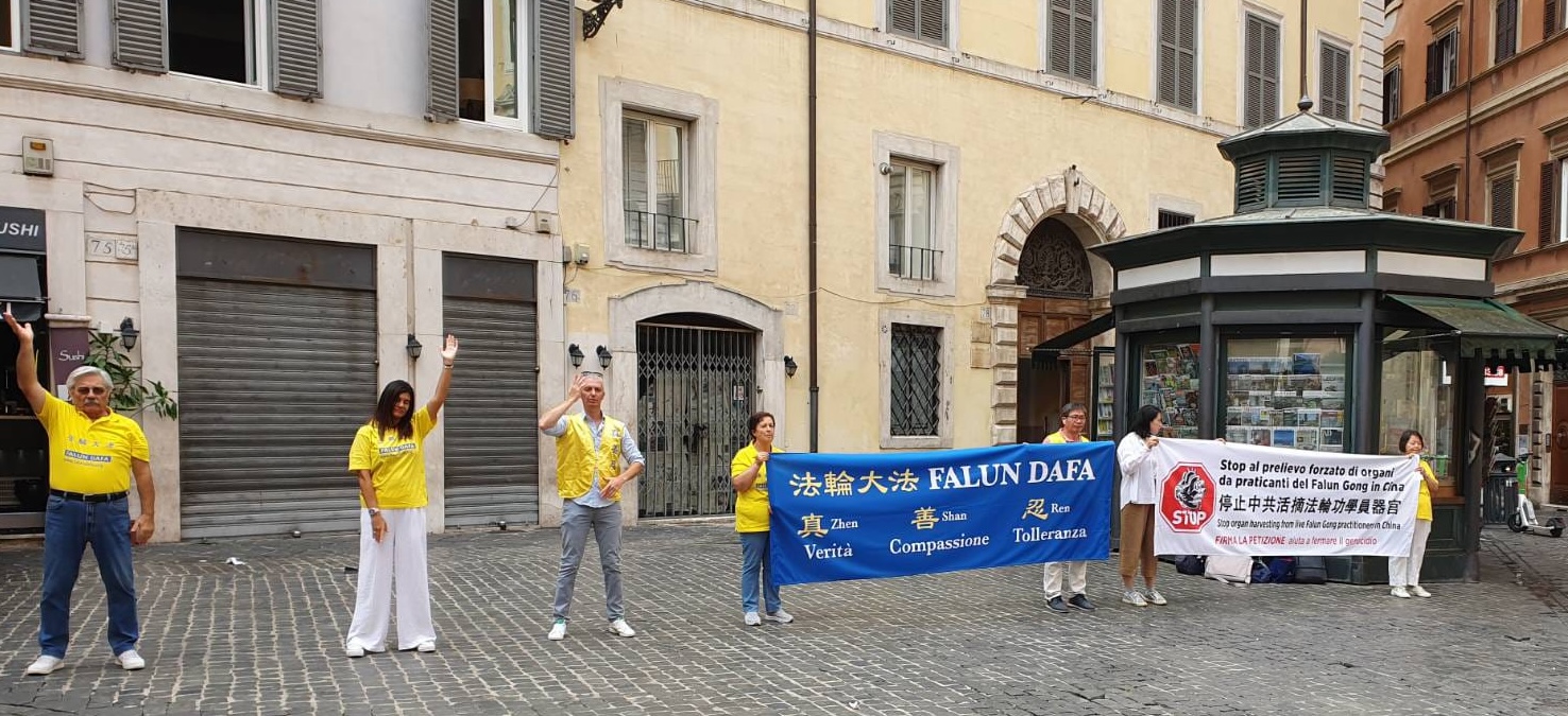 【明慧网二零二五年九月十六日】二零二五年九月三日和十一日两天,意大利法轮功学员在首都罗马意大利国会附近的卡普拉尼卡广场(Piazza Capranica)上举行讲真相活动,抗议中共对法轮功修炼者长达二十六年的残酷迫害,揭露对法轮功学员的活摘罪行。期间有意大利多位议员来到集会现场表示支持。