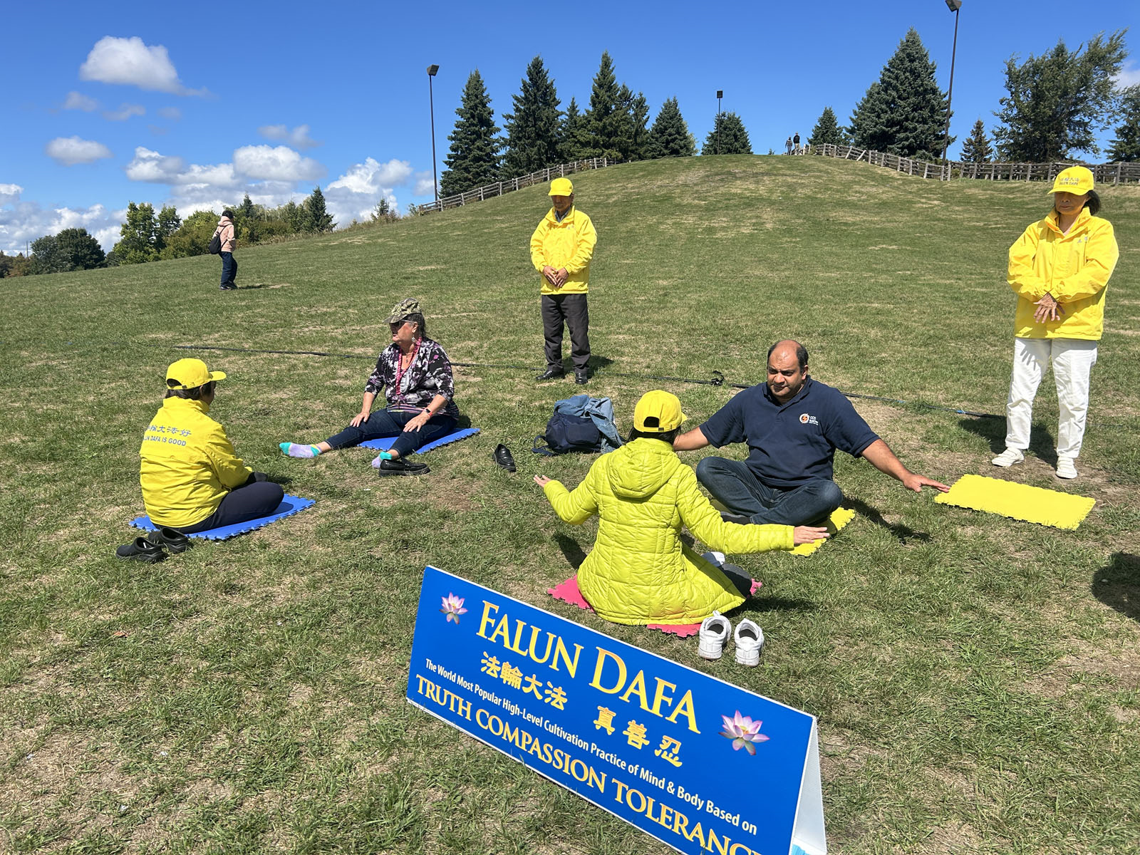 九月七日,在渥太华西部卡纳塔(Kanata)社区举办的文化节上,法轮功学员同样受到居民欢迎。电力工人兼企业主赫贾齐(Ali Hejazi)首次学功后表示,打坐让他感受到身体与心灵的变化,并激发了深入修炼的渴望。