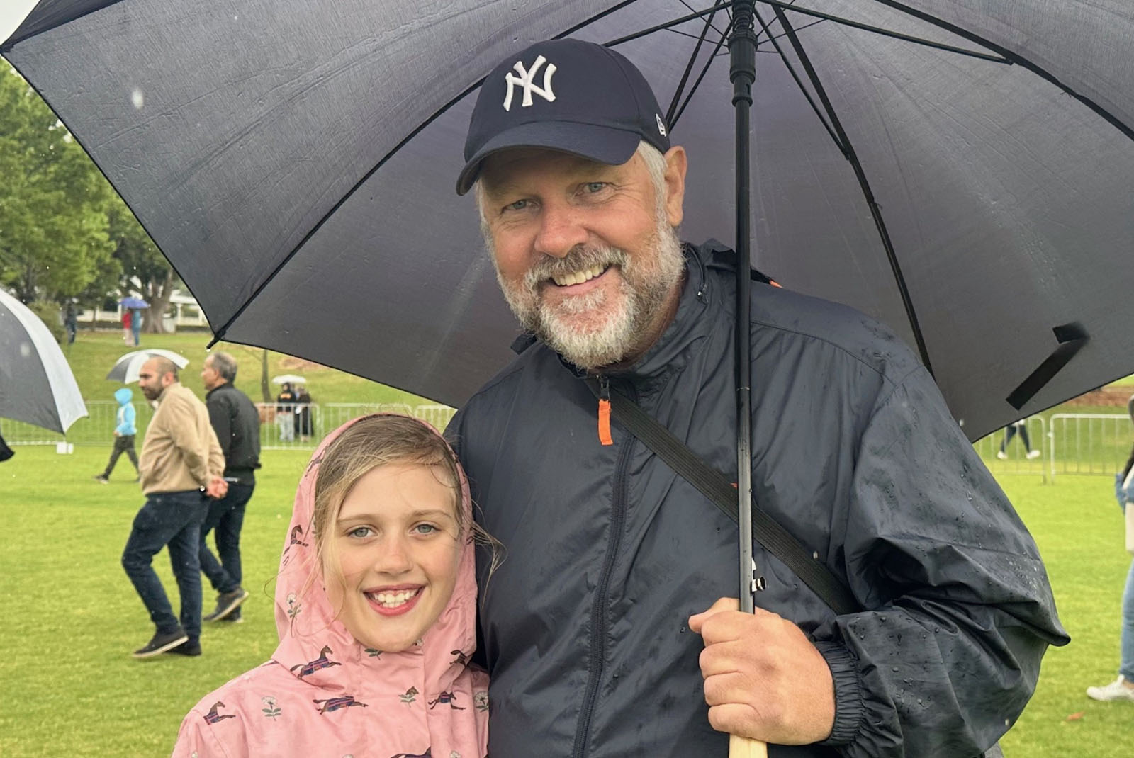 贝瑞(Barry)是图文巴一名小学教师,他带着小女儿露西(Lucy)一起来观看游行。