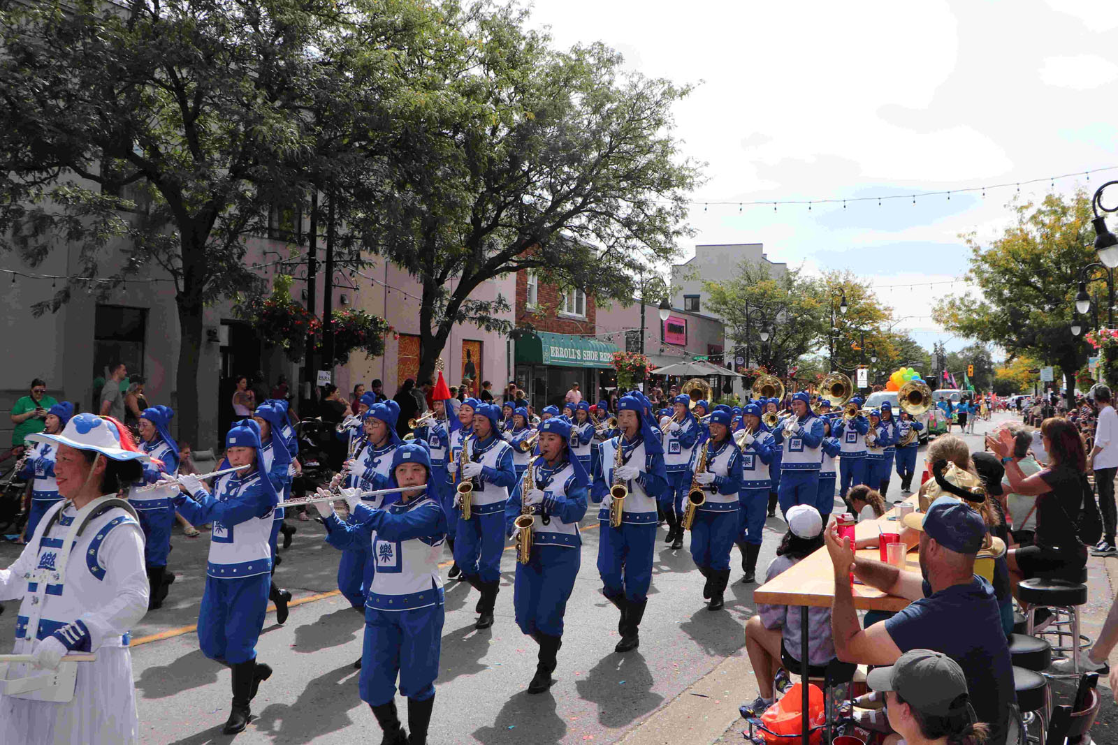 由法轮功学员组成的天国乐团和腰鼓队再次受邀参加游行,作为游行队伍中为数不多的华人团体,他们的出现格外引人注目,不仅赢得观众热烈掌声,更在观众自发组织的评分中获得满分好评。