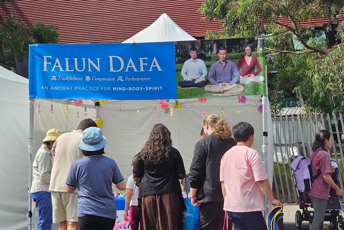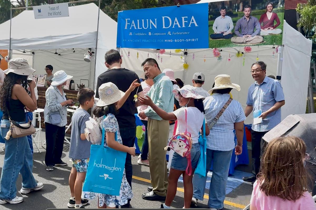 ![]() 图1~2:二零二六年三月二十二日,克雷顿社区节庆(Clayton Festival)期间,法轮功展位吸引民众驻足。 |