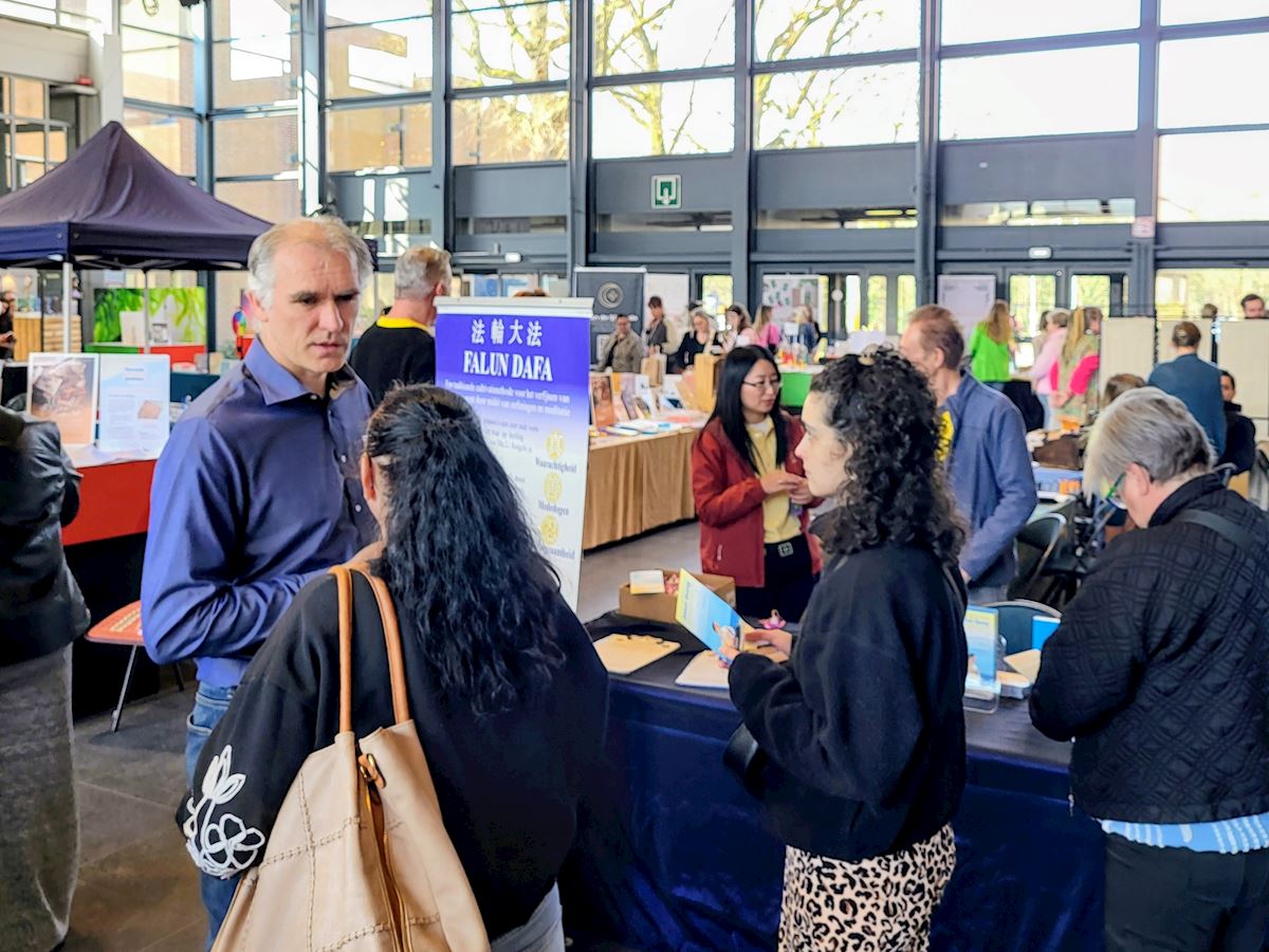 看着现场讲真相的西人学员,这位男青年惊奇不已,向学员确认后才知道,原来法轮功在国外这么受欢迎。