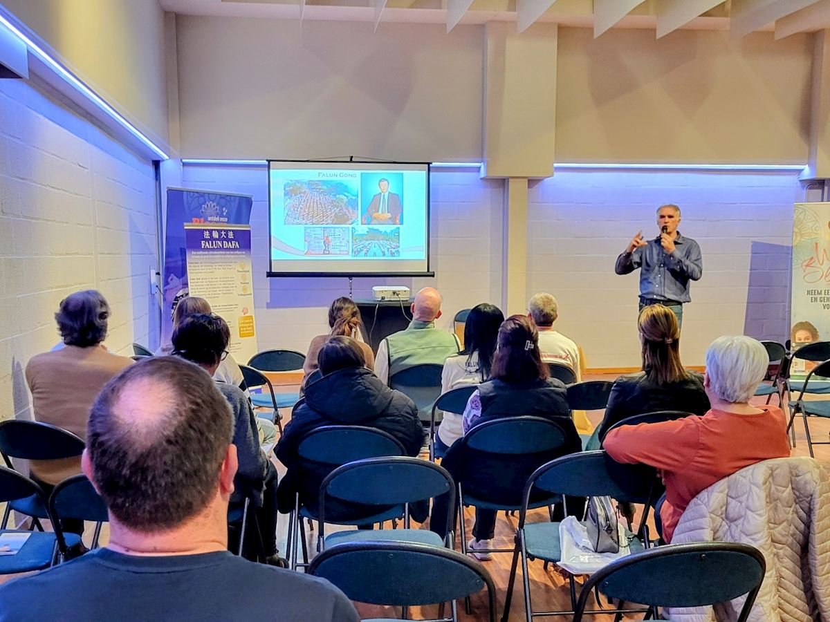 听学员介绍法轮功信仰真、善、忍,小伙子笑着接口说,“我知道,法轮功是长春传出来的,长春有个李大师嘛。”